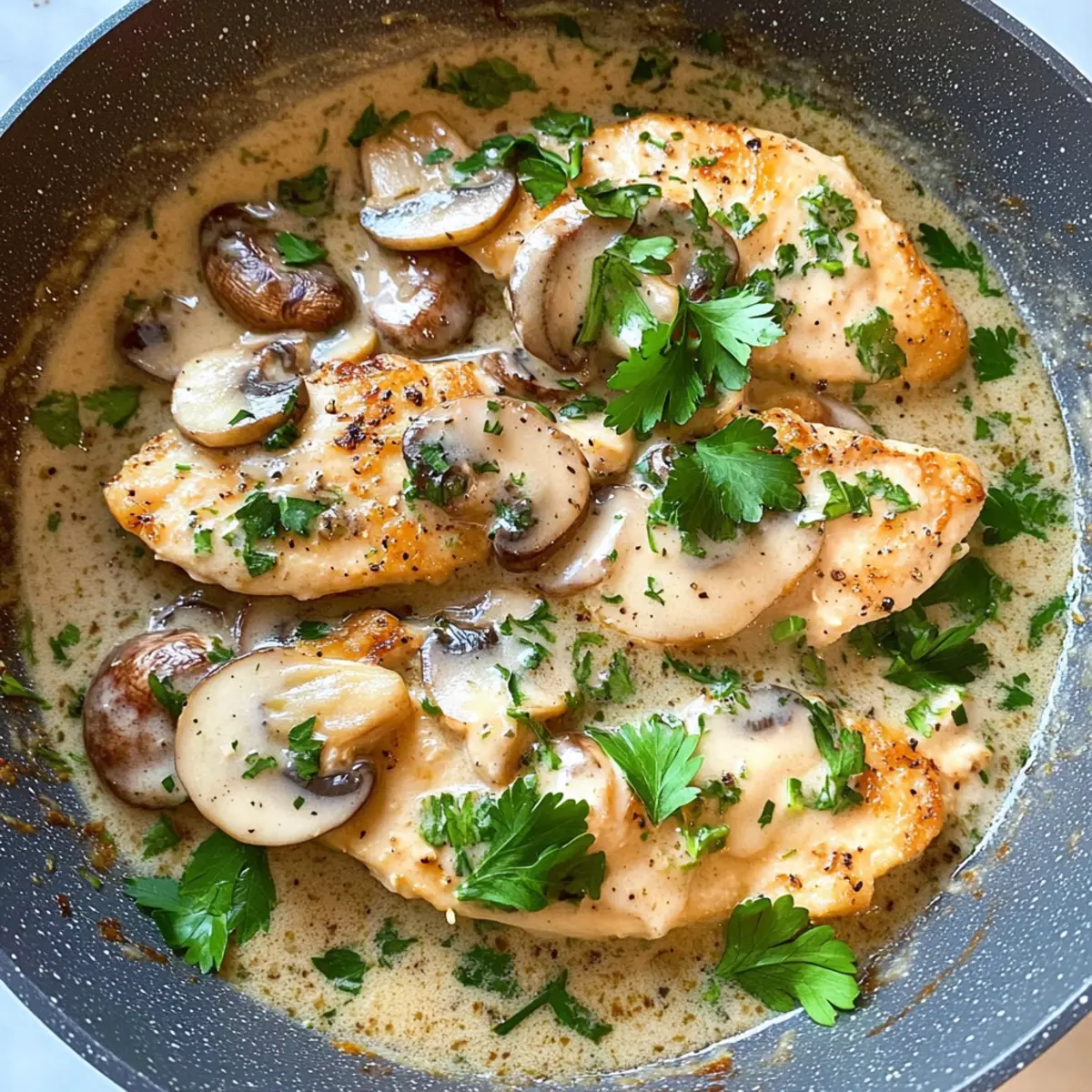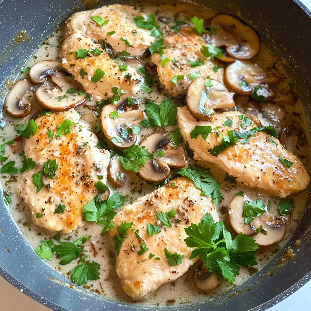 Jump to Recipe Print RecipeAs I stirred the pot, the warm aroma of sautéing garlic and mushrooms filled my kitchen—a comforting reminder of home. This Creamy Mushroom Chicken is my go-to weeknight meal when I crave something cozy yet quick. With its dairy-free, gluten-free sauce, it brings a delightful spin to traditional comfort food without any fuss. In just 30 minutes, you can savor tender chicken enveloped in a silky, umami-rich sauce, perfect for those busy evenings when fast food no longer cuts it. Plus, it’s a delightful way to sneak in some extra veggies if you choose! Ready to dive into a taste of comfort? Let’s get cooking! Why is Creamy Mushroom Chicken a Must-Try? Quick and Easy: In just 30 minutes, you can create a delightful dinner that feels gourmet. Perfect for those busy weeknights! Dairy and Gluten-Free: Enjoy the creamy richness without dairy or gluten. This recipe caters to dietary needs while not compromising on flavor. Flavor Explosion: The umami-rich mushrooms combined with fragrant herbs create a luxurious taste that satisfies cravings for comfort food. Versatile Meal: Pair it with rice, quinoa, or even mashed potatoes for a customizable side, making it suitable for any night of the week! Healthy Twist: The use of coconut milk brings a nutritious element, ensuring you’re indulging while still being mindful of your health. Add some veggies to make it even more wholesome! Want more delicious chicken recipes? Check out these tasty Chicken Noodle Soup and Chicken Stuffed Mushrooms. Creamy Mushroom Chicken Ingredients For the Sauce Olive Oil – Adds fat for cooking and flavor; substitute with avocado oil for a higher smoke point. Tapioca Flour – A gluten-free thickener providing a light coating; can be swapped with arrowroot flour or cornstarch for similar results. Yellow Onion – Adds sweetness and depth; shallots make for a delightful substitute if you prefer a milder flavor. Garlic – Provides aromatic savoriness; in a pinch, use garlic powder (1/4 tsp = 1 clove). White Mushrooms – Earthy flavor that enhances the sauce; should you wish, cremini or shiitake mushrooms can also be used. Dried Thyme – Infuses warmth and an aromatic quality; fresh thyme can be used (3x the amount needed) or Italian seasoning as an alternative. Oregano – Brings herbaceous notes; marjoram can be used if desired. For the Chicken Chicken Breast – Primary protein, sliced thin for quick cooking; chicken thighs provide a juicier texture if you prefer. Kosher Salt – Balances flavor; feel free to use sea salt or table salt, adjusting to your taste. Black Pepper – Adds warmth and depth; swap for white pepper for a milder flavor. For the Creamy Base Low-Sodium Chicken Broth – Serves as the liquid base for the sauce; vegetable broth is an excellent option for a vegetarian version. Full-Fat Coconut Milk – Supplies creaminess without dairy; cashew cream is another fantastic alternative if you want a different twist. Fresh Parsley (optional) – Offers a touch of freshness and color for garnishing your dish. Dive into the cozy and comforting world of Creamy Mushroom Chicken and enjoy a delightful dinner that’s as delicious as it is simple! Step‑by‑Step Instructions for Creamy Mushroom Chicken Step 1: Heat the Oil Begin by heating a large skillet over medium heat and adding 2 tablespoons of olive oil. Allow the oil to shimmer, which indicates it’s hot enough for cooking. This step creates a perfect base for your Creamy Mushroom Chicken, ensuring the chicken browns beautifully while cooking. Step 2: Brown the Chicken Coat your sliced chicken breast in tapioca flour for a light, gluten-free crust. Carefully add the chicken to the hot skillet, ensuring not to overcrowd the pan. Sauté for about 5-7 minutes, or until the chicken turns golden brown and reaches a temperature of 165°F. Remove the chicken from the skillet and set it aside on a plate. Step 3: Sauté the Aromatics In the same skillet, add sliced yellow onion and minced garlic, stirring frequently. Cook for about 2-3 minutes, or until the onions become translucent and fragrant. This aromatic mixture adds depth to your Comforting Creamy Mushroom Chicken sauce and sets the stage for the next layers of flavor. Step 4: Cook the Mushrooms Next, add the sliced white mushrooms, along with kosher salt, black pepper, dried thyme, and oregano. Stir everything together and let the mushrooms cook for about 5 minutes, until they are soft and browned. This step enhances the earthy flavors essential to your Creamy Mushroom Chicken. Step 5: Build the Sauce Pour in 1 cup of low-sodium chicken broth and 1 can of full-fat coconut milk into the skillet, stirring to combine. Allow the mixture to simmer for 2-3 minutes, letting the sauce thicken and meld together beautifully. The coconut milk adds that creamy richness we love in our Creamy Mushroom Chicken. Step 6: Combine and Heat Return the browned chicken to the skillet and gently stir to coat the pieces in the luscious sauce. Cook for an additional 3-4 minutes, ensuring the chicken is heated through and well-integrated into the creamy mixture. At this point, the dish should look inviting and aromatic, perfect for serving. Step 7: Garnish and Serve Finally, if desired, chop some fresh parsley and sprinkle it over the dish for a pop of color and freshness. Serve your Creamy Mushroom Chicken immediately over rice, quinoa, or mashed potatoes, enjoying the warmth and satisfaction of this comforting meal any night of the week. Make Ahead Options These Creamy Mushroom Chicken preparations are perfect for busy home cooks looking to save time! You can slice the chicken breasts and toss them in tapioca flour up to 24 hours in advance, allowing for quicker cooking when you’re ready to tackle dinner. Additionally, you can chop your onions, garlic, and mushrooms ahead of time—simply refrigerate them in airtight containers. When you’re ready to cook, just follow the instructions as us