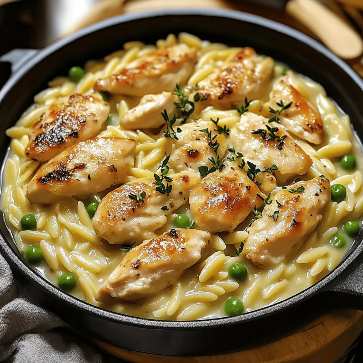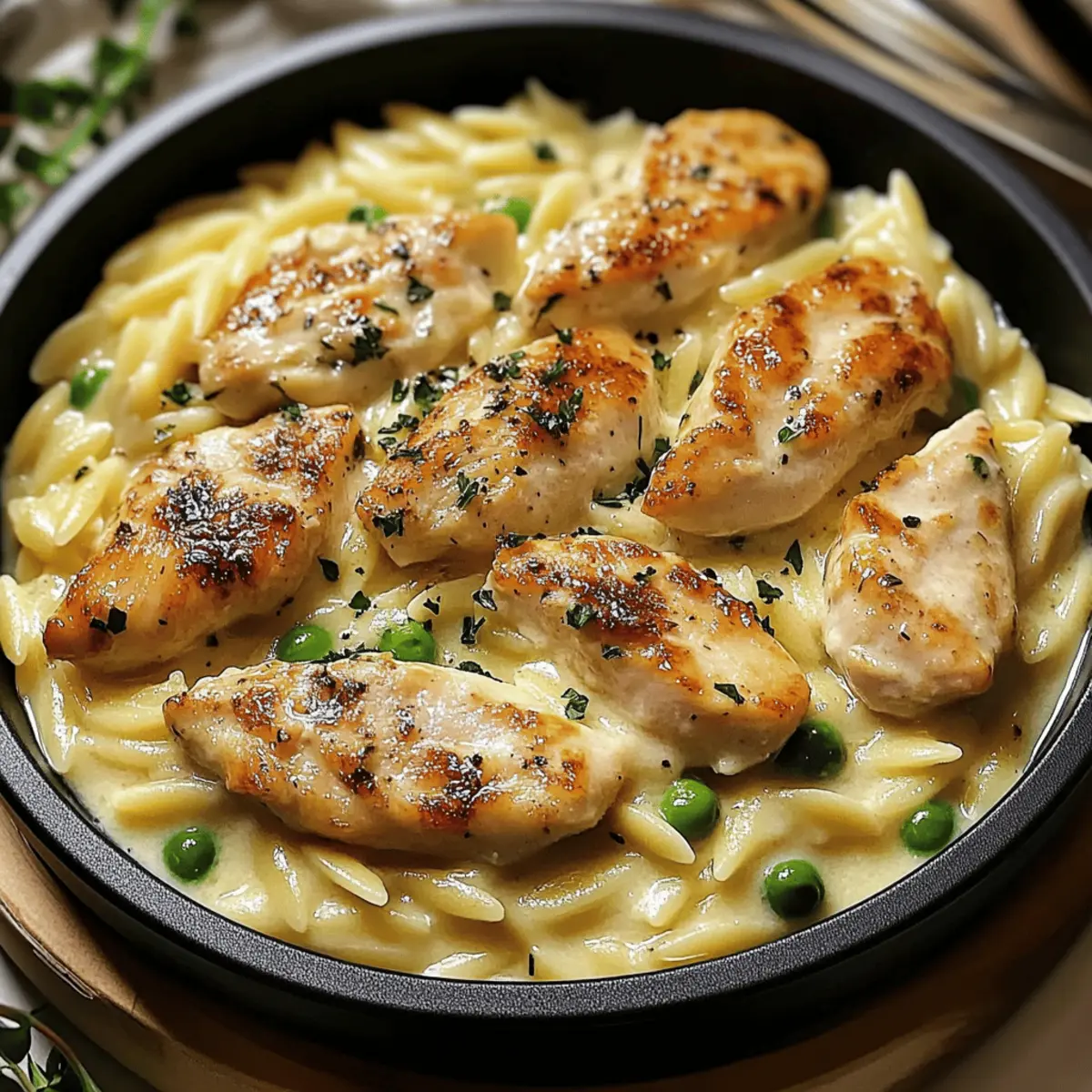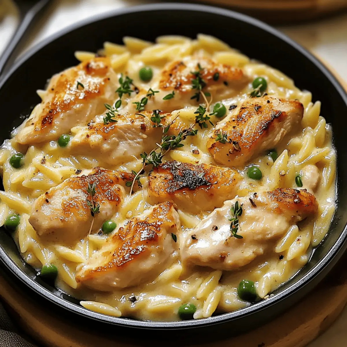 Creamy Orzo With Chicken is a quick one-pot meal that delights families with its savory flavors and comforting texture.