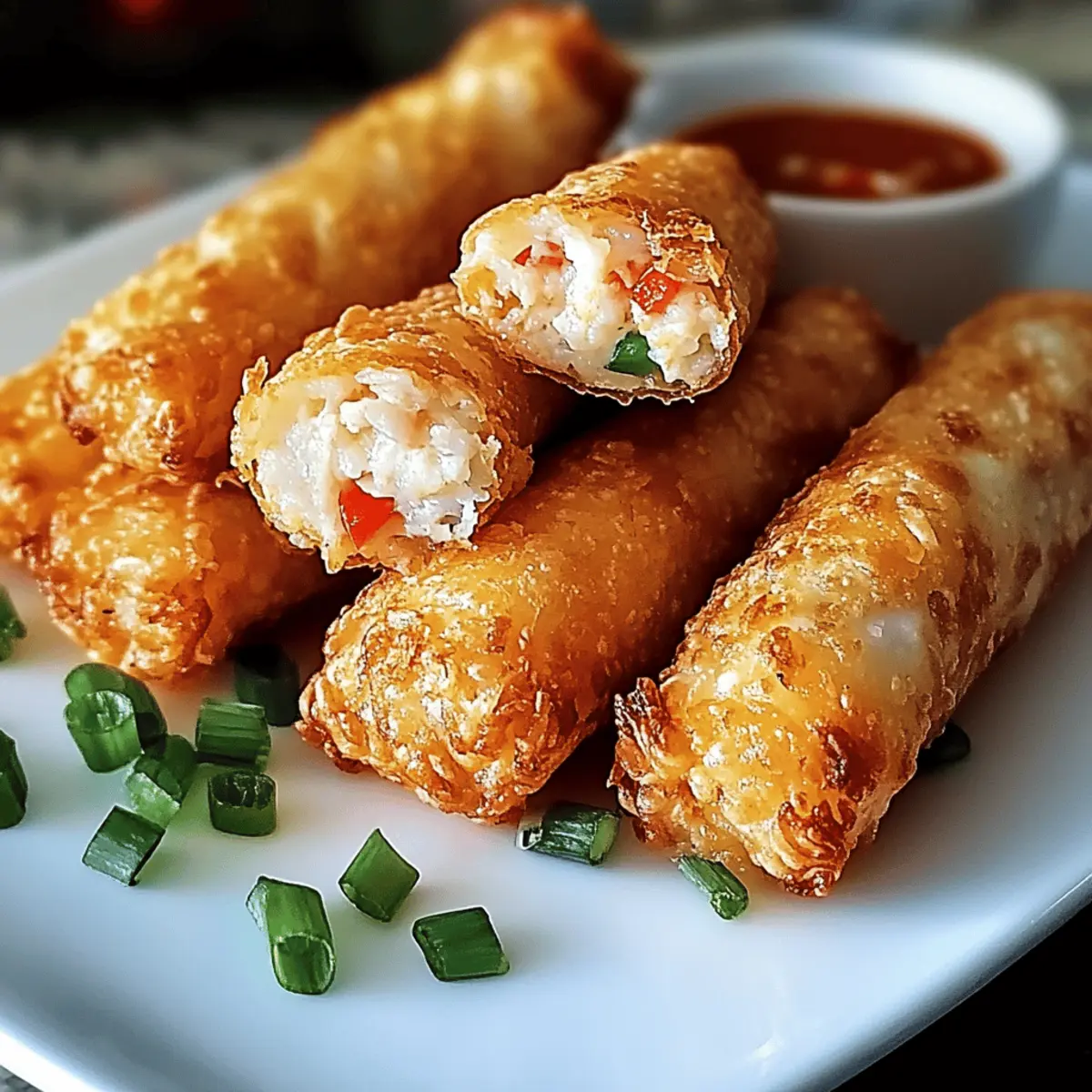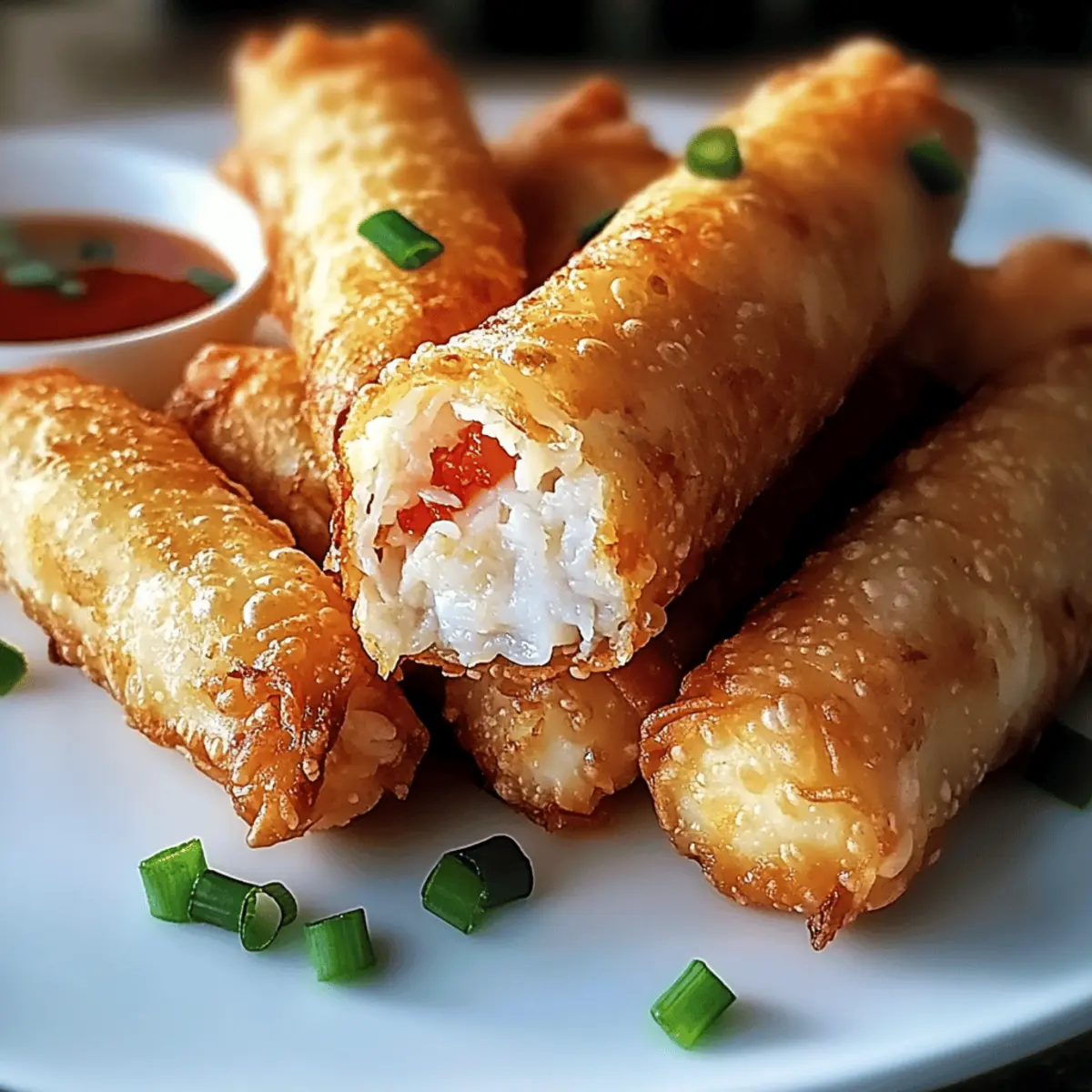 Jump to Recipe Print RecipeThe moment I took a bite of these Crispy Crab Cake Egg Rolls, I knew I had stumbled upon something special. Imagine the satisfying crunch of the golden, crispy wrappers giving way to a beautifully seasoned crab filling, perfectly complemented by a hint of tangy lemon and Old Bay seasoning. These delightful bites are not just eye-catching appetizers; they’re adaptable crowd-pleasers that can accommodate various dietary preferences. Quick to prepare and easy to enjoy at any gathering—from cozy get-togethers to festive celebrations—these egg rolls elevate everyday moments into something truly memorable. Whether you’re a seasoned home chef or just looking for a fun dish to impress your friends, you’ll love creating these savory snacks. Are you ready to roll into a delicious culinary adventure? Why Are These Egg Rolls So Irresistible? Crispy Wonder: The golden outer layer provides a satisfying crunch that instantly elevates your snacking experience. Savory Delight: Each bite is packed with tender crab meat, complemented by flavors of lemon and Old Bay seasoning that dance on your palate. Crowd-Pleasing Appeal: Perfect for gatherings, these egg rolls adapt well to various dietary needs—offering options like shrimp or veggie fillings for everyone to enjoy! Quick and Easy: With straightforward steps, you can whip up a batch in no time. Whether served as an appetizer or a snack, they’re sure to impress! Perfect Pairings: Enjoy them with an array of dipping sauces or alongside a refreshing side salad for a complete meal experience! Crispy Crab Cake Egg Rolls Ingredients For the Filling • Lump Crab Meat – The star of the dish; provides tender, sweet flavor. Ensure it’s well-drained to avoid sogginess. • Mayonnaise – Adds creaminess and binds the filling. Substitute with Greek yogurt for a lighter option. • Dijon Mustard – Introduces tangy flavor that complements the crab. • Worcestershire Sauce – Provides umami depth to the filling. • Egg (beaten) – Acts as a binder for the filling, ensuring it holds together during cooking. • Breadcrumbs – Adds structure and slight crunch, prevents excess moisture. • Green Onions (finely chopped) – Enhances freshness and mild onion flavor. • Red Bell Pepper (finely chopped) – Adds sweetness, color, and crunch. • Lemon Juice – Provides citrusy brightness, balancing the richness of the filling. • Old Bay Seasoning – Classic seafood seasoning enhances the crab’s natural sweetness. • Salt and Pepper – Essential for seasoning; ensure flavors are well balanced. For the Wrapping • Egg Roll Wrappers – Create the crispy exterior; found in grocery stores. • Vegetable Oil for Frying – Necessary for achieving a crispy, golden texture; heat to 350°F/175°C. Step‑by‑Step Instructions for Crispy Crab Cake Egg Rolls Step 1: Prepare the Crab Cake Filling In a large mixing bowl, gently combine 1 cup of well-drained lump crab meat, ¼ cup mayonnaise, 1 tablespoon Dijon mustard, and 1 teaspoon Worcestershire sauce. Add 1 beaten egg, ½ cup breadcrumbs, 2 finely chopped green onions, and ¼ cup diced red bell pepper. Squeeze in the juice of 1 lemon, then season with 1 tablespoon Old Bay seasoning, salt, and pepper. Mix until everything is just combined. Step 2: Assemble the Egg Rolls Lay an egg roll wrapper on a clean, flat surface with one corner facing you, creating a diamond shape. Spoon about 2 tablespoons of the crab cake filling near the corner. Fold that corner over the filling, then fold in the sides securely and roll tightly away from you, sealing the edges with a little water. Repeat this process until all filling is used, ensuring each Crispy Crab Cake Egg Roll is securely wrapped. Step 3: Heat Oil and Fry In a large skillet, heat ½ inch of vegetable oil over medium heat until it reaches 350°F (175°C). Carefully add a few egg rolls to the hot oil, frying them in batches to avoid overcrowding. Fry for about 3-4 minutes on each side, or until they turn a beautiful golden brown and crisp. Use tongs to gently turn them, ensuring even cooking, and drain cooked egg rolls on paper towels to absorb excess oil. Step 4: Serve and Enjoy Once all Crispy Crab Cake Egg Rolls are fried, arrange them on a serving platter. Consider pairing them with dipping sauces like tartar sauce, spicy aioli, or a zesty lemon wedge for an extra flavor kick. These egg rolls make a delightful appetizer or satisfying snack, ready to impress your guests at any gathering. Make Ahead Options These Crispy Crab Cake Egg Rolls are perfect for meal prep enthusiasts looking to save time during busy weeks! You can prepare the crab cake filling up to 24 hours in advance and store it in an airtight container in the refrigerator. To assemble, simply fill and wrap the egg rolls right before frying, ensuring they’re fresh and crispy. Additionally, you can fully assemble the egg rolls and refrigerate them for up to 3 days—just keep them covered to prevent drying out. When it’s time to enjoy, heat the oil and fry them to perfection—this way, you’ll have delicious, crowd-pleasing snacks ready with minimal effort! Crispy Crab Cake Egg Rolls Variations Feel free to explore these mouthwatering twists that allow you to personalize your Crispy Crab Cake Egg Rolls to suit your taste. Shrimp Substitute: Swap out crab for chopped shrimp for a delightful sea-inspired variation. Enjoy the slightly sweeter taste of shrimp with the same savory filling! Vegetable Delight: For a vegetarian take, replace crab with a medley of bell peppers, corn, and black beans. It’s a colorful filling that’s packed with flavor and nutrients. Gluten-Free Option: Use rice paper wrappers instead of traditional egg roll wrappers for a gluten-free alternative. These will give you a unique texture and are just as fun to fry! Spicy Kick: Add diced jalapeños or a dash of cayenne pepper to your filling for a spicy twist. The heat beautifully bal