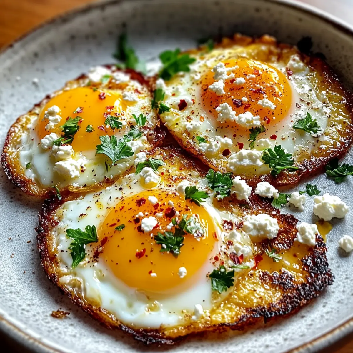 Jump to Recipe Print RecipeThe aroma of sizzling cheese filled the air as a perfect morning began—a little like a Mediterranean escape right in my kitchen. Crispy Feta Fried Eggs are my go-to breakfast when I want something quick yet impressive. The creamy yolks mingling with the crispy, golden feta create a delightful contrast that transforms my mornings from mundane to magnificent. This easy recipe not only whips up in under ten minutes but also brings a touch of gourmet flair to both hectic weekdays and laid-back brunches. Plus, if you’re looking to break free from the fast-food routine with a tasty homemade option, this dish fits the bill. Are you ready to dive into this deliciously simple experience and elevate your breakfast game? Why Try Crispy Feta Fried Eggs? Quick and Easy: This recipe takes under ten minutes, making it perfect for busy mornings! Mediterranean Delight: Experience the vibrant flavors of the Mediterranean in every bite, elevating your breakfast from ordinary to extraordinary. Crowd-Pleaser: Impress family and guests alike with this simple yet gourmet dish ideal for brunch gatherings or cozy weekday breakfasts. Versatile Options: Customize the dish with your favorite toppings or pair it with fresh bread and a salad to transform it into a complete meal. Unique Flavor Profile: The delightful contrast of creamy yolks and crispy feta creates a satisfying texture and rich taste that will keep you coming back for more. Whether you’re tired of fast food or just seeking a quick, tasty recipe to shake up your mornings, these Crispy Feta Fried Eggs are your new favorite breakfast treat! Crispy Feta Fried Eggs Ingredients For the Eggs • Large Eggs – Provide rich, creamy yolks and tender whites. Note: For firmer yolks, cook a bit longer. For the Feta • Crumbled Feta Cheese – Adds tanginess and transforms into crispy bits when cooked. Substitution: Goat cheese or ricotta can be used, but flavors will vary. For Cooking • Olive Oil – Essential for frying, imparting a fruity flavor and helping the feta crisp up. Note: A good-quality olive oil enhances the dish’s taste. For Seasoning • Salt and Black Pepper – Flavor enhancers that balance the dish. Note: Adjust to taste. For Garnish (optional) • Chopped Fresh Parsley – Adds freshness and visual appeal. Optional: Can be omitted for a simpler dish. • Red Pepper Flakes – Provides a gentle heat to elevate flavors. Note: Adjust based on personal spice preference. Step‑by‑Step Instructions for Crispy Feta Fried Eggs Step 1: Heat the Olive Oil In a non-stick skillet, pour a generous amount of olive oil and place it over medium-high heat. Allow the oil to heat until it shimmers, which usually takes about 2 minutes. This step is crucial for achieving crispy feta, so keep an eye on it to prevent the oil from smoking. Step 2: Cook the Feta Cheese Once the oil is hot, evenly sprinkle crumbled feta cheese across the skillet to form a single layer. Let it cook for 1–2 minutes without stirring, until the feta turns golden brown and starts to melt slightly. This creates the crunchy texture that complements the eggs perfectly. Step 3: Add the Eggs Carefully crack the large eggs over the crispy feta, spacing them out to ensure even cooking. It’s best to do this gently to avoid breaking the yolks. Lower the heat slightly to medium, and let the eggs sit undisturbed for a moment to allow the whites to begin setting. Step 4: Season the Eggs Sprinkle the eggs with a pinch of salt and freshly cracked black pepper. This seasoning not only enhances the flavors but also balances the tanginess of the feta. As the eggs cook, watch for the whites to become opaque while the yolks remain runny. Step 5: Cook to Desired Doneness Let the eggs cook without stirring for about 3–4 minutes, or until the whites are set but the yolks are still soft. If you prefer firmer yolks, you can gently cover the skillet for an additional minute or two. Keep an eye on them to achieve your ideal doneness with the Crispy Feta Fried Eggs. Step 6: Garnish and Serve If desired, sprinkle chopped fresh parsley and a pinch of red pepper flakes over the top for added flavor and color. Carefully slide the crispy feta and eggs onto a plate, letting any excess oil drip off. Serve immediately while everything is warm and delicious. Storage Tips for Crispy Feta Fried Eggs Fridge: Store any leftovers in an airtight container for up to 2 days. This will help maintain taste and freshness. Reheating: Reheat in the oven at 350°F (175°C) to keep the feta crispy. Avoid microwaving, as it can make the feta soggy. Serving Fresh: For the best experience, enjoy your Crispy Feta Fried Eggs immediately after cooking. The texture of the yolks and feta is most delightful when fresh! Expert Tips for Crispy Feta Fried Eggs • Use Quality Ingredients: Start with fresh, high-quality eggs and feta for the best flavor and texture in your Crispy Feta Fried Eggs. • Mind the Heat: Keep the skillet at medium-high heat; too high might burn the feta while leaving the eggs undercooked. • Don’t Rush: Let the feta crisp without stirring it. This creates a delicious base for your eggs and enhances their texture. • Customize Doneness: Adjust cooking time based on your yolk preference—3-4 minutes for runny yolks, longer for firm ones. • Garnish Wisely: Fresh herbs and red pepper flakes play a huge role in flavor—don’t skip them for that Mediterranean touch! • Serve Immediately: Enjoy your Crispy Feta Fried Eggs right away to keep the creamy, runny yolks and the crunchy feta at their best. Crispy Feta Fried Eggs Variations Feel free to get creative and put your unique spin on these gorgeous Crispy Feta Fried Eggs—the result will still be delicious! Cheese Swap: Use goat cheese for a tangy twist, or try ricotta for a creamier texture and milder taste. Both create a delightful spin! Veggie Boost: Toss in some spinach or cherry tomatoes before cracking the eggs for add