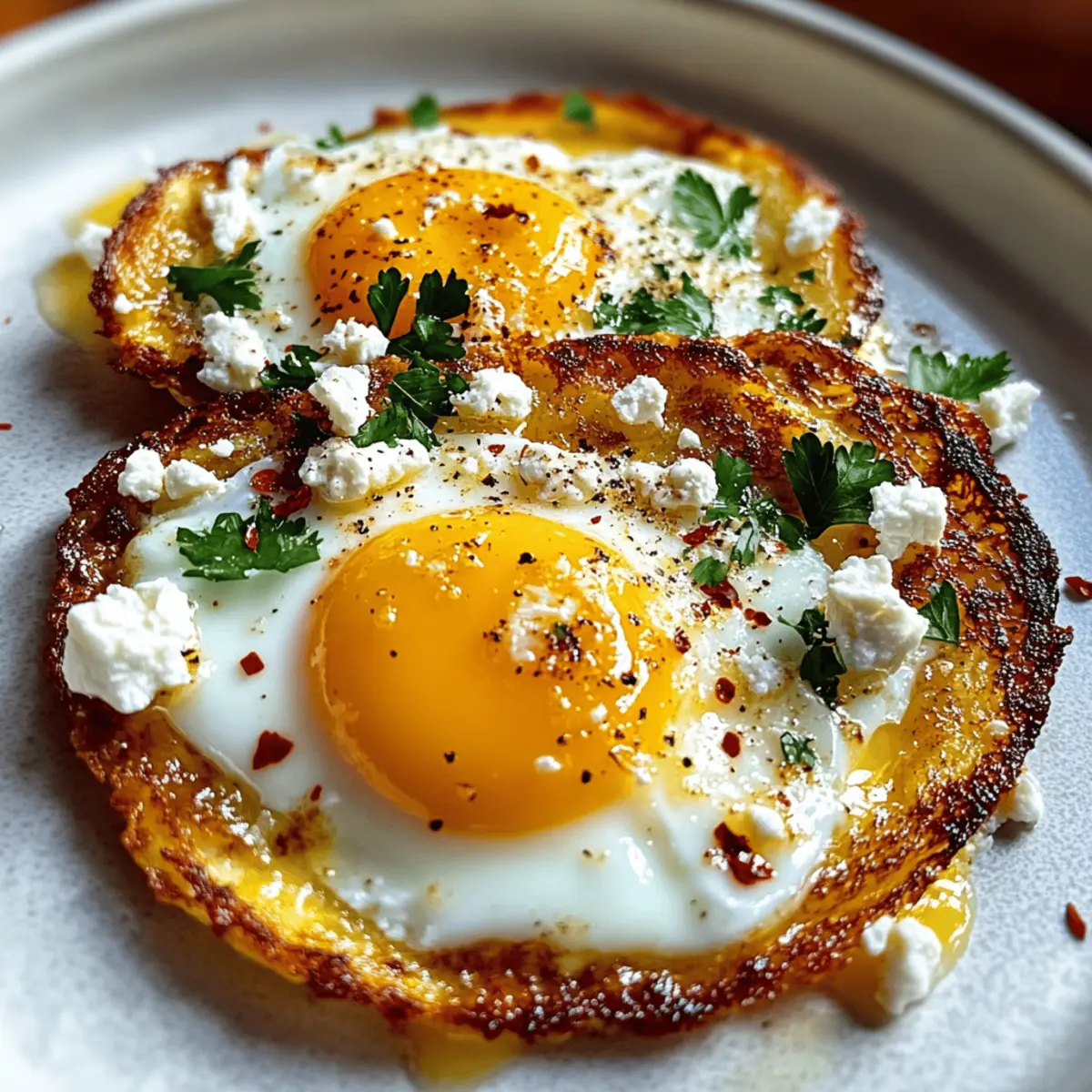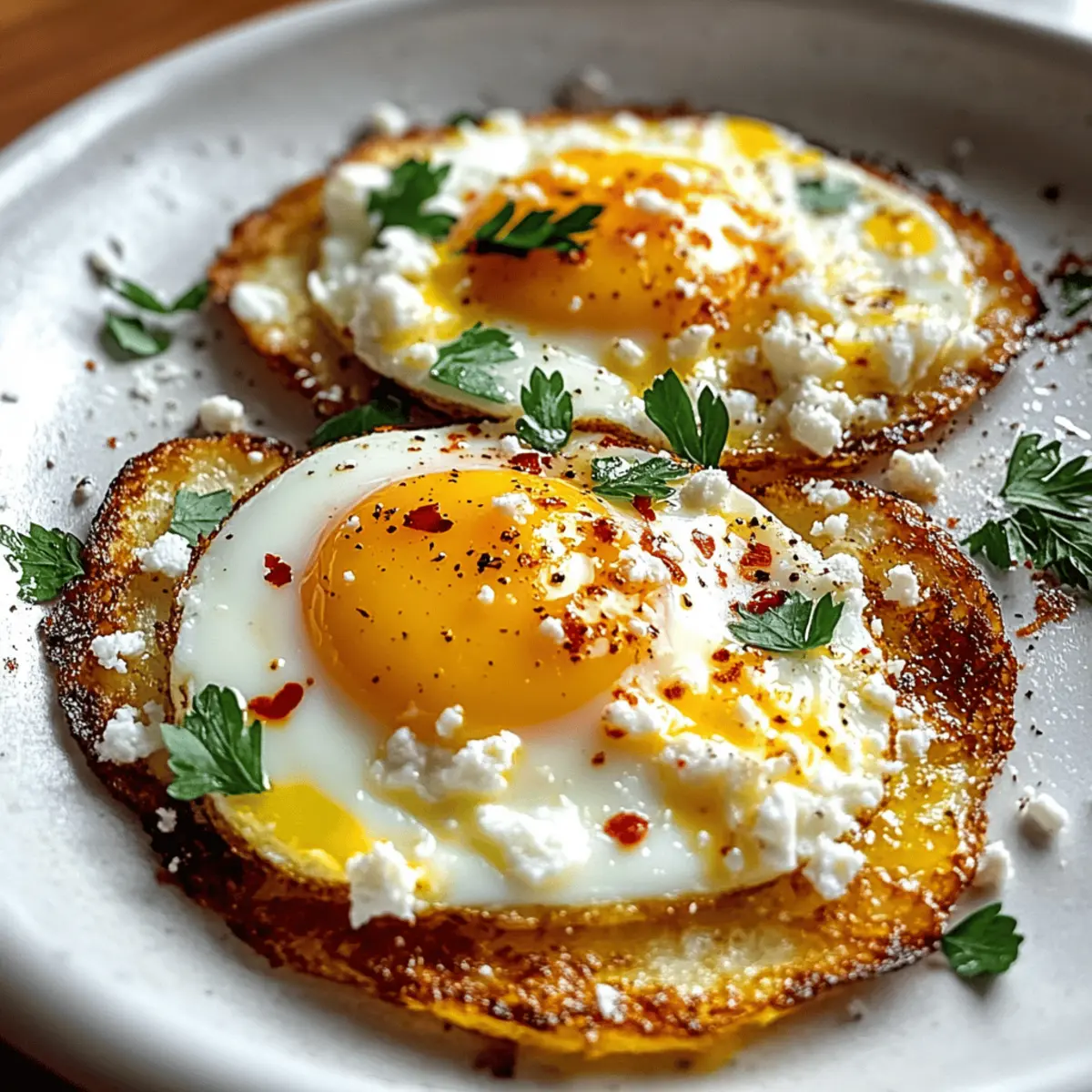 Jump to Recipe Print RecipeAs I sipped my morning coffee, I couldn’t help but overhear a conversation about how breakfast often falls into the same boring routine. Well, say goodbye to bland and hello to a Mediterranean sensation with my Crispy Feta Fried Eggs! This dish transforms everyday ingredients into a gourmet experience that’s not just easy to whip up but absolutely packed with flavor. In just under 12 minutes, you can create a meal that’s perfect for a hectic weekday breakfast or a leisurely weekend brunch. The combination of crispy feta and silky eggs brings a delightful crunch and creaminess that will have everyone raving. Ready to elevate your morning routine? Let’s dive into this vibrant recipe! Why are Crispy Feta Fried Eggs a must-try? Simplicity at Its Best: This dish comes together in under 12 minutes, making it ideal for busy mornings when you crave something special without the fuss. Rich Mediterranean Flavors: The synergy between creamy feta and luscious eggs transports your taste buds straight to the Mediterranean coast. Versatile Ingredients: Customize the base with variations, like adding red pepper flakes or fresh herbs, allowing for endless creativity and flavor exploration. Healthful and Filling: At around 350 calories per serving, these eggs provide a nutritious start to your day that keeps you satisfied longer. Crowd-Pleaser Appeal: Impress family and friends with this gourmet breakfast that’s as stunning as it is delicious. Serve with crusty bread or a light salad for an unforgettable brunch experience! Elevate your breakfast game and explore other delicious recipes like Southern Fried Shrimp or even enjoy a sweet treat with Fried Strawberry Cheesecake. Crispy Feta Fried Eggs Ingredients For the Eggs • Large Eggs – Use large eggs for optimal results, ensuring a rich and creamy texture. For the Feta • Crumbled Feta Cheese – Adds a tangy and salty flavor that crisps beautifully; goat cheese or ricotta can be substituted if desired, but feta truly shines in this dish. For Cooking • Olive Oil – Essential for frying; high-quality extra virgin olive oil is preferred to infuse the eggs with delicious flavor while crisping the feta. • Salt and Black Pepper – Enhance the flavors of the eggs and feta; adjust to personal preference to suit your taste. For Garnishing (Optional) • Fresh Parsley – Provides a burst of color and freshness; any preferred fresh herb can be used as an alternative. • Red Pepper Flakes – Offers a delightful kick of heat, enriching the flavor profile of your Crispy Feta Fried Eggs. Step‑by‑Step Instructions for Crispy Feta Fried Eggs Step 1: Heat the Olive Oil Begin by heating 2 tablespoons of high-quality extra virgin olive oil in a non-stick skillet over medium-high heat. Allow the oil to shimmer, indicating it’s hot enough for frying, which should take about 1-2 minutes. The right temperature ensures the feta crisps beautifully without burning. Step 2: Add the Feta Once the oil is shimmering, evenly sprinkle approximately ½ cup of crumbled feta cheese into the skillet to form a single layer. Let the feta cook undisturbed for 1-2 minutes, watching for the edges to turn golden brown and crispy. This step is crucial as it creates a delightful contrast in texture for the Crispy Feta Fried Eggs. Step 3: Crack the Eggs Carefully crack 2 large eggs over the cooked feta, spacing them out to avoid overlap. The eggs should nest in the melted cheese, ensuring even cooking. Allow the eggs to settle in for a moment; this helps the whites firm up while keeping the yolks runny for that perfect Mediterranean touch. Step 4: Season the Eggs Sprinkle the eggs generously with salt and black pepper, enhancing the flavors of the dish. The seasoning is essential and can be adjusted to taste. Make sure the seasoning lands directly on the egg whites and yolks to ensure an even flavor throughout the Crispy Feta Fried Eggs. Step 5: Cook the Eggs Allow the eggs to cook undisturbed for about 3-4 minutes. Keep an eye on them—the egg whites should set while the yolks remain runny. For firmer yolks, cover the skillet for a minute or two to trap in heat and ensure thorough cooking. Visual cues will help you determine when they’re done to your liking. Step 6: Garnish and Serve If desired, sprinkle fresh parsley and a pinch of red pepper flakes over the eggs, adding a burst of color and spice. Carefully slide the crispy feta and eggs out of the skillet onto a plate. Serve immediately, relishing the beautifully contrasting textures and vibrant flavors of your Crispy Feta Fried Eggs. Expert Tips for Crispy Feta Fried Eggs Non-Stick Necessity: A non-stick skillet is your best friend here; it prevents sticking and makes flipping easier, ensuring a perfect presentation of your Crispy Feta Fried Eggs. Watch the Feta: Keep a close eye on the feta while it cooks; it should turn golden, not dark brown. Burning can create a bitter taste, ruining that delightful crunch. Custom Yolk Perfection: If you prefer firmer yolks, simply cover the skillet after adding the eggs. This traps heat and helps cook the yolks without overcooking the whites. Add Flavorful Twists: Don’t hesitate to experiment with vegetable additions like spinach or tomatoes. These not only enhance nutrition but also add more vibrant flavors to your Crispy Feta Fried Eggs. Fresh Herbs Matter: Fresh parsley or other herbs serve more than just looks; they add a brightness that lifts the dish. Use them to create layers of flavor and freshness. Make Ahead Options Crispy Feta Fried Eggs are an ideal meal prep dish that can save you precious time on busy mornings! You can prepare the crumbled feta cheese up to 3 days in advance, storing it in an airtight container to maintain its freshness. For the eggs, you can also crack them into a bowl, cover, and refrigerate for up to 24 hours. When you’re ready to cook, simply heat the oil, add the feta, and crack the eggs directly over it. Thi