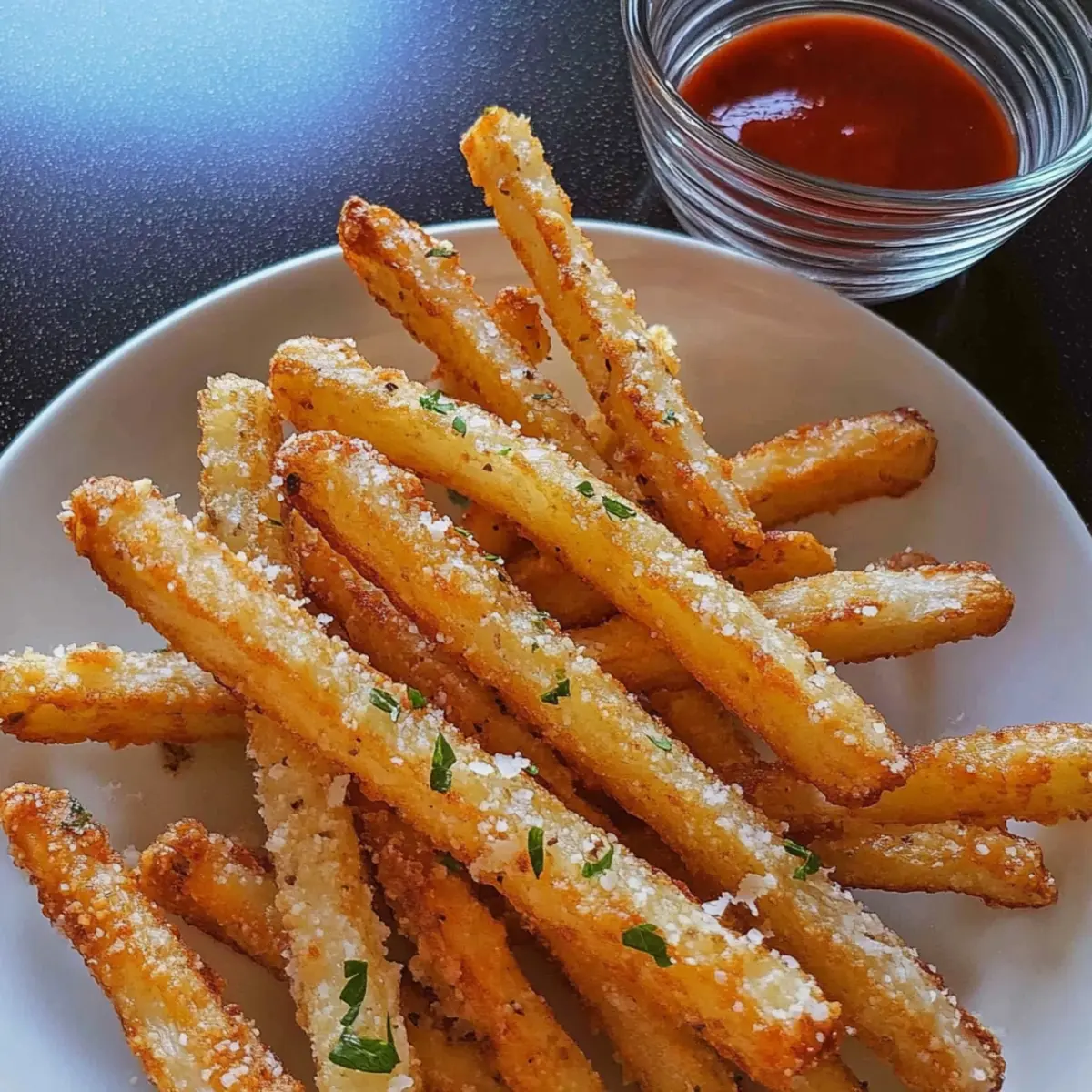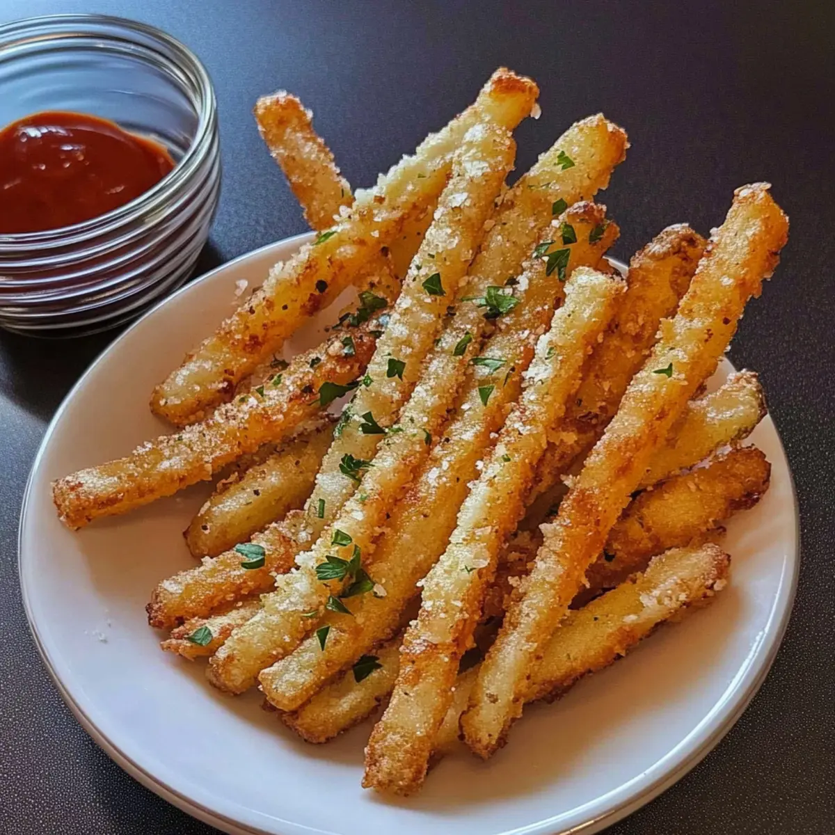 Jump to Recipe Print Recipe“Why not transform your leftovers into something spectacular?” I thought to myself, staring at a bowl of mashed potatoes from last night’s dinner. The solution? Crispy Mashed Potato Fries! Your mouth will water at the thought of golden-brown fries, boasting a crispy exterior and fluffy interior. This irresistible snack is perfect for those lazy afternoons or as a delightful side dish. What I love most about this recipe is its versatility; you can whip it up in no time, whether you’re frying, baking, or air-frying. Plus, it’s a fantastic way to utilize any leftover mashed potatoes, ensuring nothing goes to waste. Who knew that homemade comfort could be this easy? So, are you ready to take your cooking game to the next level with these crunchy delights? Let’s dive in! Why not turn leftovers into fries? Versatile Cooking: You can whip these up by frying, baking, or air-frying, giving you multiple options to suit your mood. Waste Not, Want Not: Transform those leftover mashed potatoes into a delicious new dish, ensuring nothing goes to waste. Crisp and Crunchy: Enjoy the delightful contrast of a crunchy exterior and a fluffy interior that rivals traditional fries. Family-Friendly Appeal: These fries are sure to please everyone at the table—perfect for kids and adults alike! For more engaging sides, check out my Kielbasa Potato Soup or Sausage and Sweet Potatoes for a hearty meal. Quick Prep: With simple ingredients and easy steps, you can have these golden fries ready in no time! Crispy Mashed Potato Fries Ingredients • Get ready to create a delightful treat! For the Fries • Potatoes – 500 grams or 1 lb, peeled and cubed; any variety of good boiling potatoes will work well. • Salt – 1 teaspoon or to taste; enhances flavor during boiling. • Parmesan Cheese – ⅓ cup, freshly grated; adds richness, or use nutritional yeast for a vegan option. • Ground Black Pepper – ¼ teaspoon or to taste; freshly ground is recommended for the best flavor. • Potato Starch – 4 tablespoons for the batter and an extra tablespoon for dusting; it helps create that crispy texture. • Fresh Parsley – Chopped, to taste; adds a pop of freshness, or substitute with fresh chives or green onions. • Oil – Enough for deep frying (sunflower, peanut, or canola oil recommended); essential for achieving those crispy mashed potato fries. Feel free to customize your fries, and remember that they can be baked or air-fried for a healthier twist! Step‑by‑Step Instructions for Crispy Mashed Potato Fries Step 1: Prepare Potatoes Begin by peeling and cutting 500 grams of potatoes into equal-sized cubes to ensure even cooking. Bring a large pot of salted water to a boil, then add the potatoes and cook until fork-tender, about 15–20 minutes. Drain them in a colander and let them sit for a few minutes to remove excess moisture, preparing for a perfect mash. Step 2: Mash Potatoes Transfer the drained potatoes to a large bowl and mash them until completely smooth, ensuring there are no lumps. Mix in ⅓ cup of grated Parmesan cheese, ¼ teaspoon of ground black pepper, and 4 tablespoons of potato starch. Stir in chopped fresh parsley to add flavor, creating a cohesive mixture that will form the base of your Crispy Mashed Potato Fries. Step 3: Shape Fries Divide the mashed potato mixture into two equal portions and form each into a ball. Place one ball on a lightly floured surface and roll it out to about ½ inch thick. Cut the rolled-out mixture into strips, ensuring they are evenly sized for consistent cooking. Repeat with the second portion, carefully shaping the fries for even crispness. Step 4: Heat Oil In a large, deep pan, pour enough oil for deep frying, heating it over medium-high heat until it reaches 350°F (175°C). You can test the temperature by dropping in a small piece of potato; if it sizzles, the oil is ready. This step is crucial for achieving that coveted crispy exterior for your Crispy Mashed Potato Fries. Step 5: Fry Carefully lower the potato strips into the hot oil in small batches, avoiding overcrowding to ensure they fry evenly. Cook each batch for about 5–7 minutes or until they turn golden brown and crispy. Remember to turn them occasionally with a slotted spoon for an even fry. Once cooked to perfection, remove the fries from the oil and let them drain on a wire rack. Step 6: Drain & Serve Once the fries have drained, place them on a wire rack set over paper towels to absorb any excess oil. While still hot, sprinkle with additional Parmesan cheese if desired and season with salt. Serve your crispy delights immediately as a snack or side dish, enjoying the irresistible goodness of Crispy Mashed Potato Fries! Make Ahead Options These Crispy Mashed Potato Fries are perfect for meal prep and can save you time on busy weeknights! You can prepare the mashed potato mixture (combined with cheese, seasoning, and potato starch) up to 24 hours in advance; simply refrigerate it in an airtight container. For optimal flavor and texture, chill the mixture before shaping it into fries. When you’re ready to cook, cut the fries and proceed with frying, baking, or air frying as desired. This way, you’ll enjoy just as delicious, crispy fries while cutting down on prep time! Plus, if you have any leftover fries, they can be stored in the fridge for up to 3 days, making them a fantastic option for quick snacks or sides. Storage Tips for Crispy Mashed Potato Fries Fridge: Store leftover fries in an airtight container for up to 3 days. To maintain their crispiness, reheat in an oven instead of the microwave. Freezer: Freeze uncooked, shaped fries on a baking sheet until firm, then transfer to a freezer bag. They can be stored for up to one month. Reheating: For best results, reheat cooked fries in the oven at 400°F for 10 minutes, allowing them to regain their crunch. Thawing: If freezing, there’s no need to thaw before frying or baking. Cook straight 