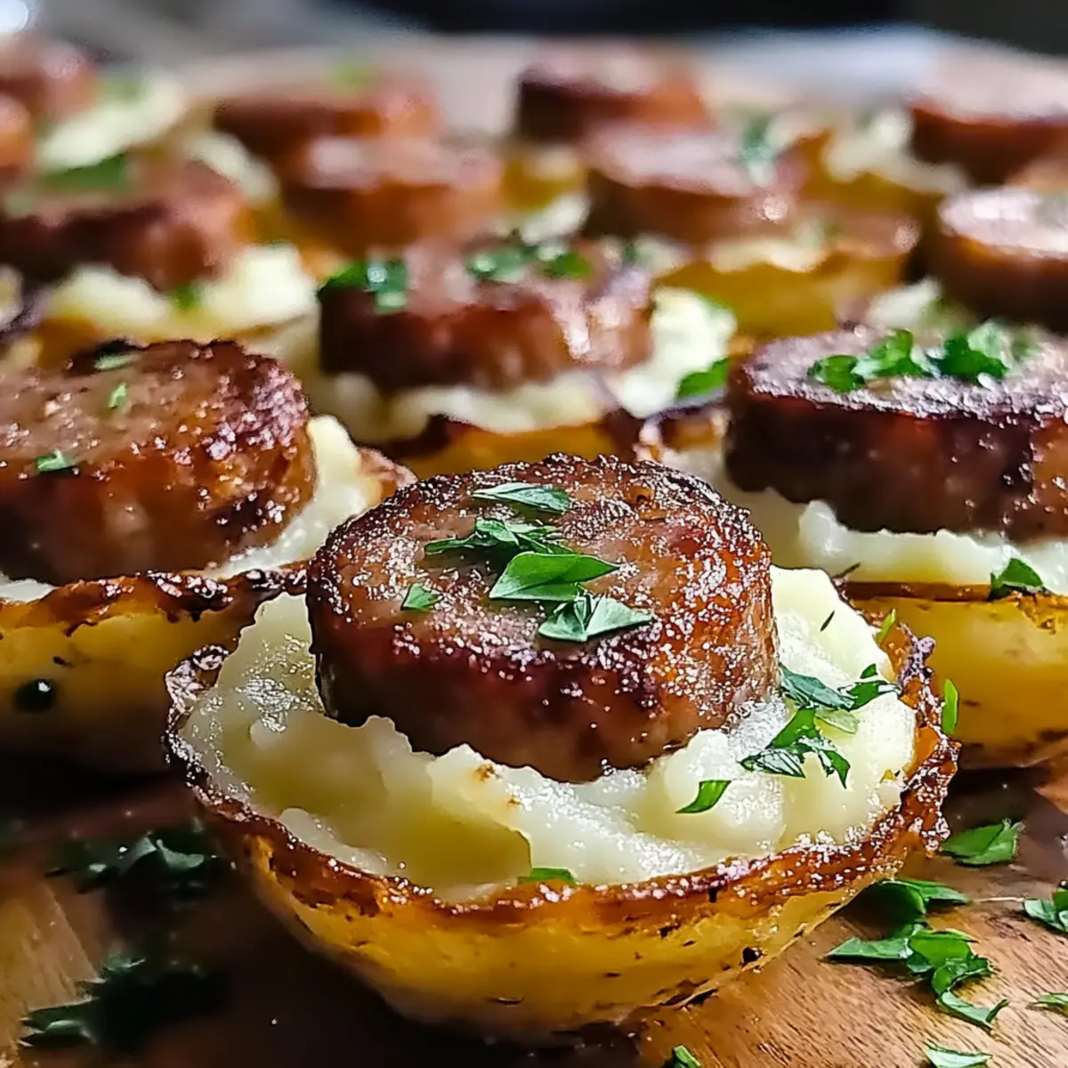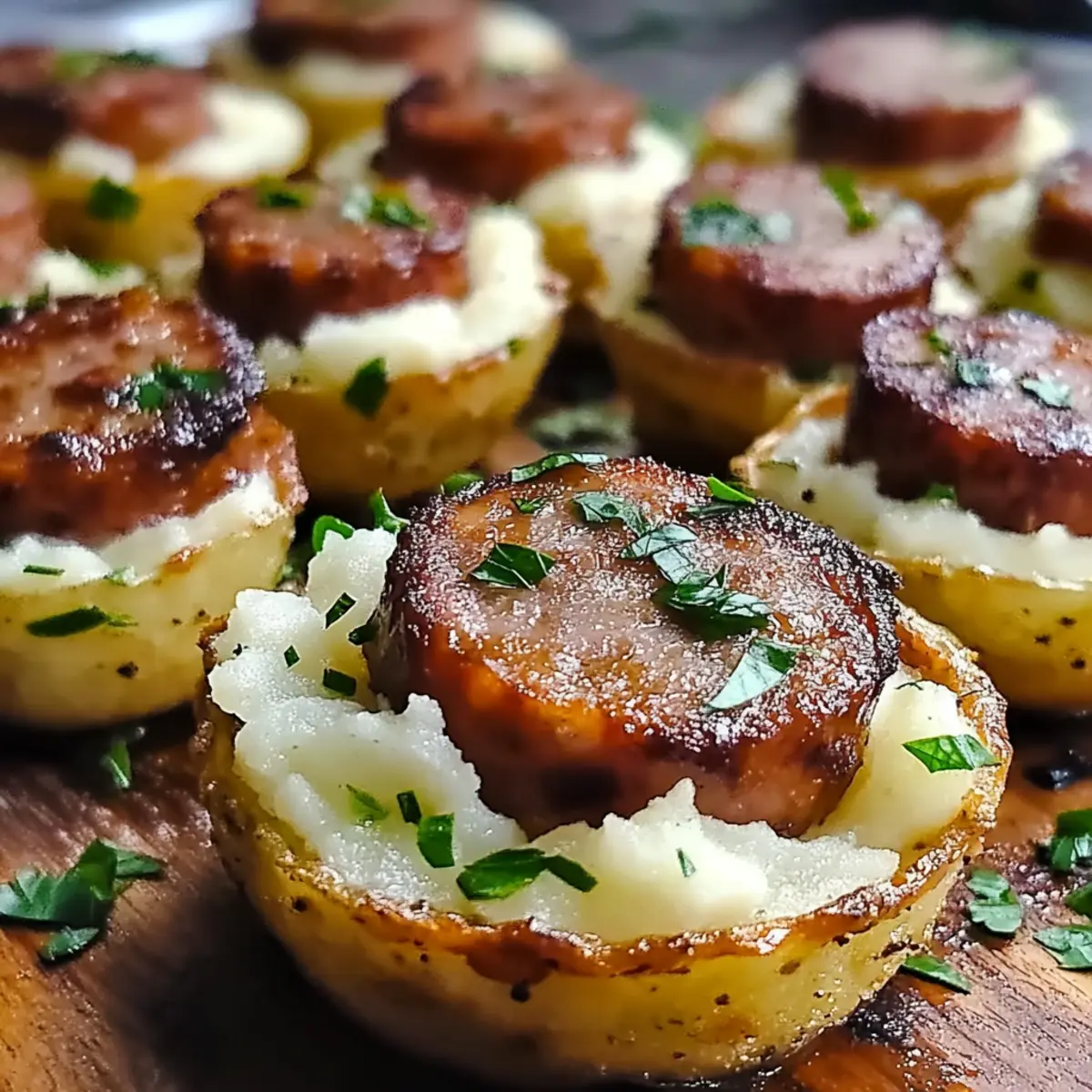 Jump to Recipe Print RecipeAs I bit into the golden, crispy edge of these delightful cups, I couldn’t help but feel like I was celebrating St. Patrick’s Day in the heart of Dublin. Crispy St. Patrick’s Irish Bangers & Mash Cups are an irresistible twist on the classic bangers and mash, marrying crunchy potato goodness with savory sausage in an easy-to-eat format. These little wonders are quick to prepare, making them the perfect crowd-pleaser for your next gathering, while also accommodating dietary needs with gluten-free and dairy-free options. Whether you’re hosting a festive party or just craving comfort food, these customizable cups bring the heartwarming taste of Ireland straight to your table. Are you ready to bring this festive delight to life in your kitchen? Why You’ll Crave These Cups? Comforting, Festive Appeal: These Crispy St. Patrick’s Irish Bangers & Mash Cups blend tradition and fun, making every bite a mini-celebration! Quick Preparation: With simple ingredients and straightforward steps, you’ll have these delightful cups ready in no time. Customizable Options: Whether you need gluten-free or dairy-free, easily swap ingredients to suit your needs without losing flavor. Crowd-Pleasing Delight: Perfect for parties, these bite-sized treats are sure to impress family and friends, elevating any gathering. Delicious Versatility: From spicy twists to vegetarian alternatives, you can tailor each batch to delight every palate. Indulge in this twist on a classic, and to explore more flavor sensations, check out my Chilli Beef Flavor or Bang Bang Salmon recipes! Crispy St. Patrick’s Irish Bangers & Mash Cups Ingredients For the Mashed Potato Cups Russet Potatoes (4 medium) – Provides the base for the cups; essential for a fluffy mash. Substitution: Use Yukon Gold for extra creaminess. Butter (2 tablespoons) – Adds richness and moisture to the mashed potatoes. Substitution: Coconut oil for a dairy-free version. Milk (1/2 cup) – Contributes creaminess to the mashed potatoes. Substitution: Almond or oat milk to keep it dairy-free. Fresh Thyme (2 teaspoons) – Enhances flavor with a touch of herbiness. Substitution: Try rosemary or parsley for different herb profiles. For the Filling Irish Sausages (6 links) – The main protein filling; delivers authentic Irish flavor. Ensure they’re gluten-free if required. These ingredients come together to create irresistible Crispy St. Patrick’s Irish Bangers & Mash Cups, making them a delightful addition to your next celebration! Step‑by‑Step Instructions for Crispy St. Patrick’s Irish Bangers & Mash Cups Step 1: Preheat the Oven Begin by preheating your oven to 375°F (190°C). While the oven warms up, grease a muffin tin with cooking spray or butter to prevent the crispy St. Patrick’s Irish Bangers & Mash Cups from sticking. Make sure every cup gets a nice coating for easy removal later on. Step 2: Boil the Potatoes Peel and quarter 4 medium Russet potatoes before placing them in a large pot. Fill the pot with water, ensuring the potatoes are submerged, and bring to a boil. Cook for 15–20 minutes or until the potatoes are fork-tender. Drain the potatoes well, as removing excess moisture is key to achieving fluffiness in your mash. Step 3: Mash the Potatoes Transfer the drained potatoes into a mixing bowl. Add 2 tablespoons of butter and ½ cup of milk. Use a potato masher or fork to mash thoroughly until the potatoes are free of lumps and creamy. For best results, mix in 2 teaspoons of fresh thyme, giving your crispy cups a delightful herbaceous flavor. Step 4: Form the Cups Spoon the creamy mashed potatoes into the greased muffin tin, filling each cup generously. Start pressing the potatoes down firmly but gently to create a well in the center and shape the edges higher. Aim for a nice, crisp edge that will hold the filling, ensuring the crispy St. Patrick’s Irish Bangers & Mash Cups are ready for their savory surprise. Step 5: Cook the Sausages Heat a skillet over medium heat and add the 6 links of Irish sausages. Sauté for about 5–7 minutes, turning them occasionally to brown all sides evenly. Once they are nicely cooked and golden, remove them from the heat and slice the sausages into bite-sized pieces for easy filling. Step 6: Fill the Cups Taking the sautéed sausage pieces, fill each potato cup generously. Press the sausage down gently to ensure the filling is secure, creating a delightful contrast between the crispy potato exterior and the savory sausage filling. This step is essential for the perfect bite in your crispy St. Patrick’s Irish Bangers & Mash Cups. Step 7: Bake for Crispiness Place the muffin tin into the preheated oven and bake for approximately 30 minutes. Keep an eye on them as they bake; you’re looking for the tops to be golden brown and perfectly crispy. This ensures each cup has that inviting crunch that complements the soft filling. Step 8: Cool & Serve Once done baking, remove the muffin tin from the oven and allow the cups to cool for a few minutes. Carefully run a butter knife around the edges to loosen them before gently lifting them out. Serve your crispy St. Patrick’s Irish Bangers & Mash Cups warm, paired with a tangy mustard dipping sauce for an extra flavor boost! Make Ahead Options These Crispy St. Patrick’s Irish Bangers & Mash Cups are a fantastic choice for meal prep enthusiasts! You can prepare the mashed potato cups and refrigerate them for up to 24 hours before baking, ensuring they remain fresh and fluffy. Simply follow the steps to form the cups, then cover the muffin tin with plastic wrap to maintain moisture and prevent browning. When you’re ready to serve, just fill the cups with the pre-cooked sausage pieces and bake as instructed. These make-ahead tips are perfect for busy weeknights, allowing you to enjoy delicious, festive bites without the last-minute rush! Expert Tips for Crispy St. Patrick’s Irish Bangers & Mash Cups Drain Well: Ensure 