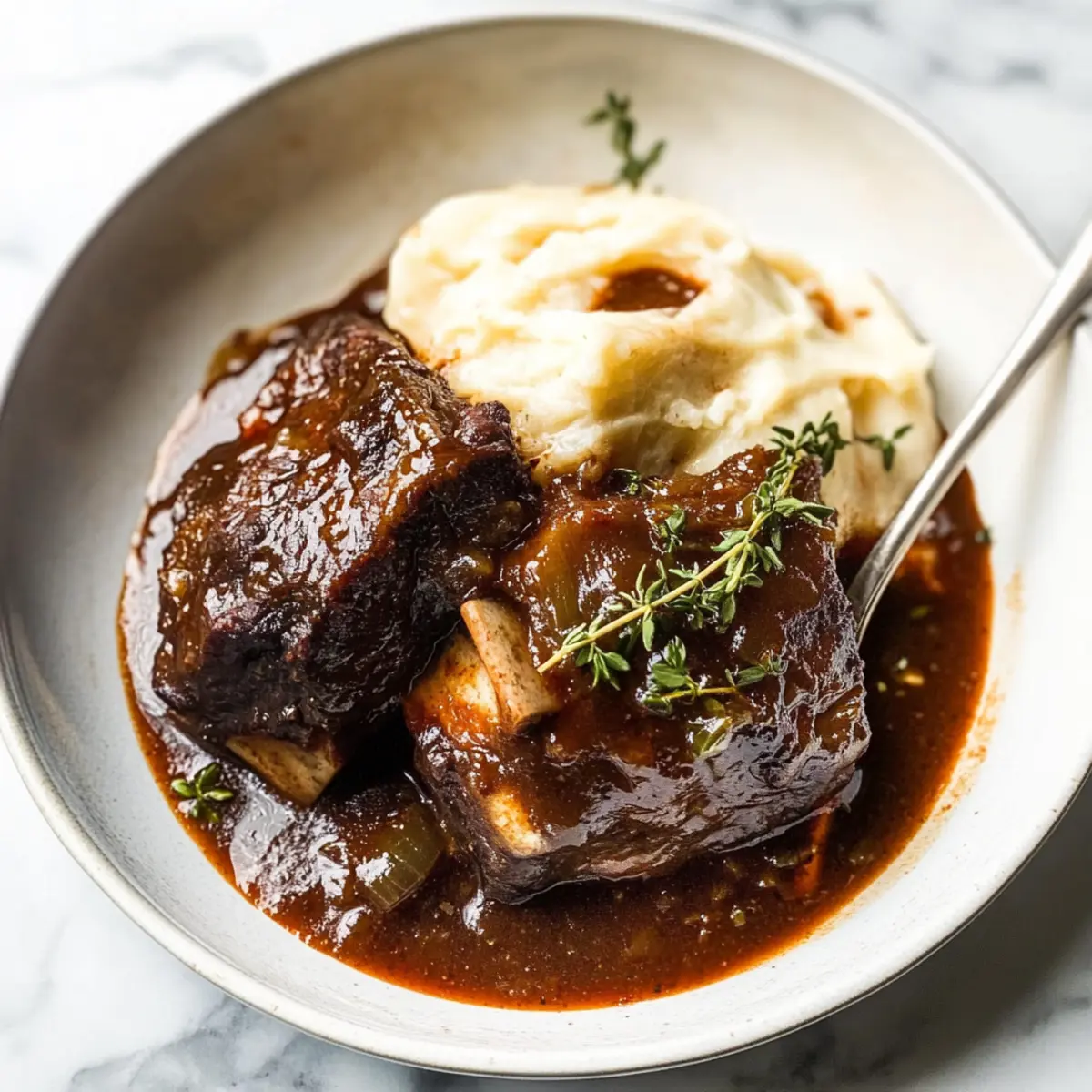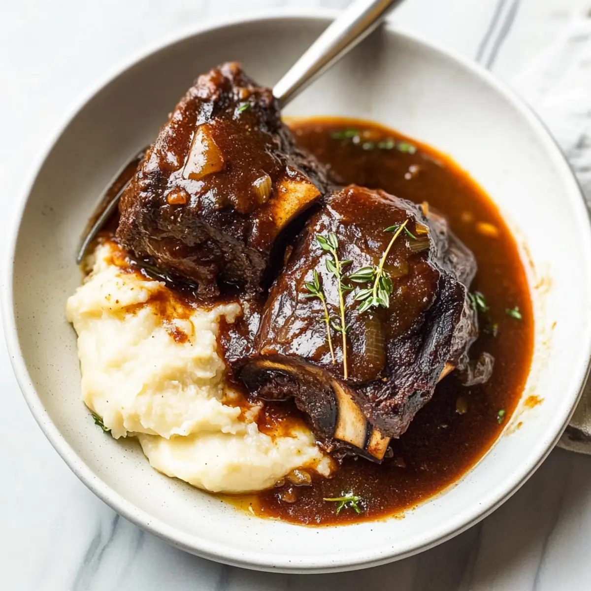Jump to Recipe Print RecipeAs soon as the days grow shorter and the air turns crisp, I can’t help but crave something hearty and soulful. That’s when my trusty slow cooker comes into play, transforming simple ingredients into magic. Our Crockpot Red Wine Braised Short Ribs are the ultimate comfort food, featuring tender, fall-off-the-bone meat nestled in a deep, rich red wine sauce. This dish not only fills your kitchen with an irresistible aroma, but it also offers a fuss-free cooking experience, perfect for lazy weekends when you just want to cozy up with a warm bowl. Ready to dive into a dish that’s both a labor of love and a culinary triumph? Let’s get started! Why Are These Short Ribs So Good? Tenderness: These Crockpot Red Wine Braised Short Ribs are cooked low and slow, resulting in meat that falls off the bone with the slightest touch. Rich Sauce: The deep, flavorful red wine sauce beautifully enhances the savory notes of the beef, making each bite an explosion of taste. Easy Preparation: Simply season, sear, and let your slow cooker do the magic; there’s little to no fuss involved, giving you more time to enjoy family or friends. Versatile Pairings: Enjoy with creamy mashed potatoes, crusty bread, or even a warm bowl of polenta—the sauce is so delicious, it deserves to be savored with every side! Perfect for Gatherings: Impress your guests or treat your family with a dish that feels fancy but is shockingly simple to prepare. You’ll love the reactions when they take their first bite! Crockpot Red Wine Braised Short Ribs Ingredients For the Meat • Beef Short Ribs – Use bone-in for the best flavor and that coveted fall-off-the-bone tenderness. For the Sauce • Olive Oil – Essential for searing the ribs, enhancing richness before slow cooking. • Dry Red Wine – Forms the luxurious base of the sauce; a budget-friendly option works well, but if omitted, beef broth can be a substitute. • Worcestershire Sauce – Adds an umami flavor that deepens the sauce’s richness. • Brown Sugar – Balances the acidity of the wine; honey can be an excellent alternative. • Smoked Paprika – Provides a lovely smokiness; regular paprika can be used if you prefer. • Salt – Adjust to taste; be mindful that different salts vary in saltiness. • Pepper – To taste, perfect for enhancing overall flavors. For the Veggies • Carrot – Adds a hint of sweetness; feel free to substitute with parsnip for something different. • Onion – These provide the savory base that elevates the sauce’s depth. • Garlic – Freshly minced garlic gives it that aromatic flavor; it’s a game-changer! • Tomato Paste – Concentrates flavor and color; crushed tomatoes can stand in if needed. For the Herbs • Italian Seasoning – Enhances the overall flavor profile; single herbs like oregano work as a substitute. • Fresh Thyme – Delivers freshness and earthy aroma; dried thyme can replace it, just use less. For Thickeners • Cornstarch – Use for thickening the sauce if desired; you can omit it for a thinner texture. Step‑by‑Step Instructions for Crockpot Red Wine Braised Short Ribs Step 1: Prep Short Ribs Generously season your beef short ribs with salt and pepper on all sides, ensuring each piece is well-coated. This seasoning creates a rich base flavor for your Crockpot Red Wine Braised Short Ribs. Allow the seasoned ribs to sit at room temperature for about 15–20 minutes while you prep the other ingredients, enhancing the meat’s flavor. Step 2: Sear Ribs In a large skillet, heat 2 tablespoons of olive oil over medium heat until shimmering. Carefully add half of the short ribs, searing them for 3–4 minutes on each side, or until they develop a deep, golden-brown crust. Transfer the seared ribs to a plate and repeat this process with the remaining ribs, adding more oil if needed. Searing is key to rich flavor. Step 3: Sauté Vegetables In the same skillet used for searing, add the chopped carrots and onions, sautéing for 6–8 minutes until they start to soften and become lightly browned. Stir in the minced garlic and tomato paste, cooking for another minute to release their aromas. This mixture will enhance the sauce in your Crockpot Red Wine Braised Short Ribs. Step 4: Combine in Crockpot Transfer the sautéed vegetables to your slow cooker, followed by the dry red wine, Worcestershire sauce, brown sugar, smoked paprika, Italian seasoning, salt, pepper, and fresh thyme. Stir everything together until well-combined, ensuring that the ingredients meld. Layer the seared short ribs on top of the vegetable mixture, allowing them to soak in the flavors as they cook. Step 5: Cook Cover the slow cooker and set it to cook on low for 7–8 hours or high for 5–6 hours. The goal is for the short ribs to become tender and easily fall off the bone. As the hours pass, your kitchen will fill with the rich, intoxicating aroma of the Crockpot Red Wine Braised Short Ribs simmering away, promising a delightful dinner. Step 6: Finish Sauces Once cooking time is complete, carefully skim off any excess fat from the surface of the sauce. In a small bowl, mix cornstarch with cold water to create a slurry. Stir the slurry into the sauce in the Crockpot, cooking on high for an additional 5–10 minutes to thicken, if desired. Your short ribs are now ready to be served in a luxuriously thick sauce. Make Ahead Options These Crockpot Red Wine Braised Short Ribs are perfect for busy weeknights and meal prep enthusiasts! You can season and sear the ribs up to 24 hours in advance, then refrigerate them in an airtight container to maintain their quality. Additionally, the sautéed vegetables can also be prepared ahead—just refrigerate them too. When ready to enjoy, layer everything in the slow cooker and add the wine and seasonings. Cook as directed, and savor the convenience of a delicious, hearty meal with minimal last-minute effort. Your family will relish these tender, flavorful short 