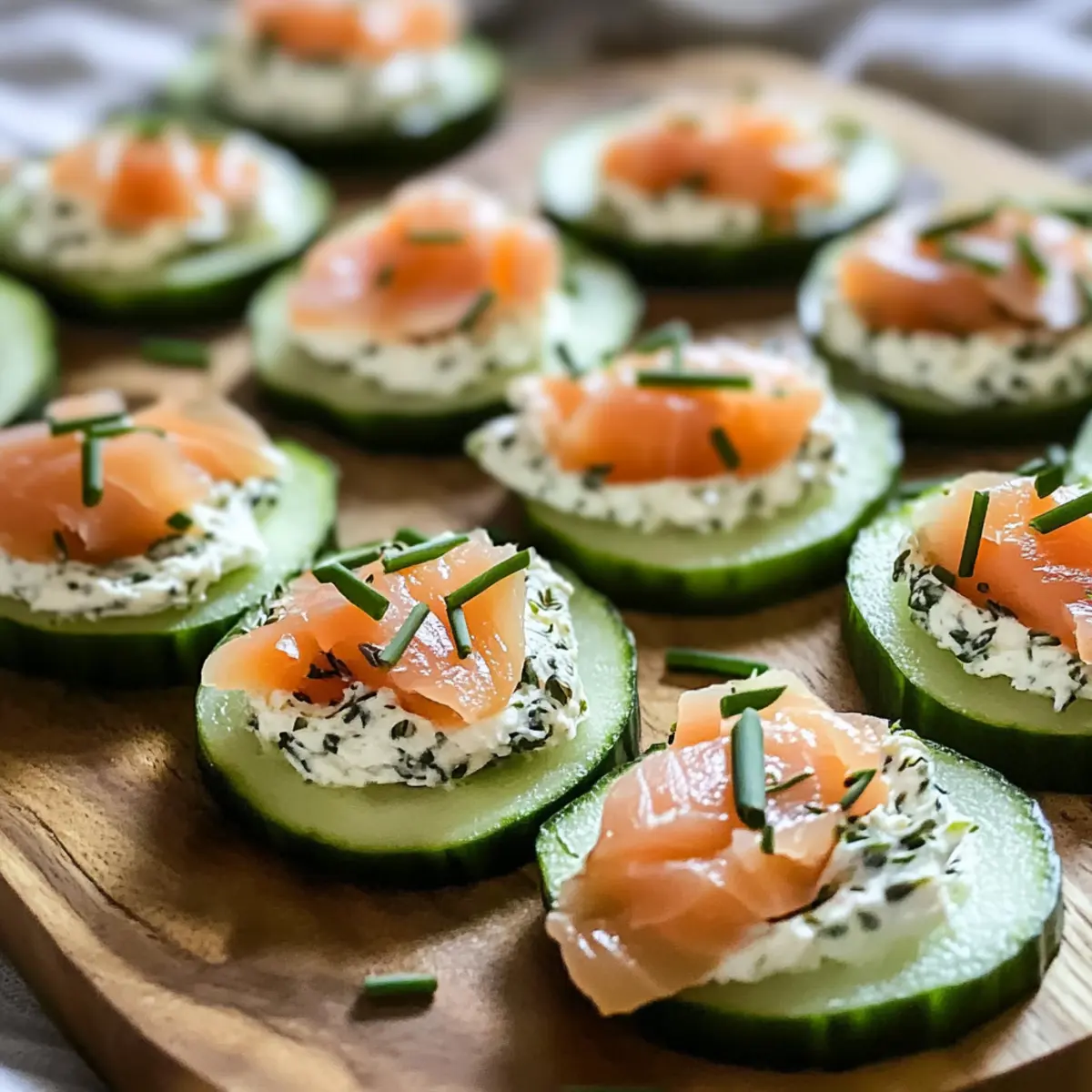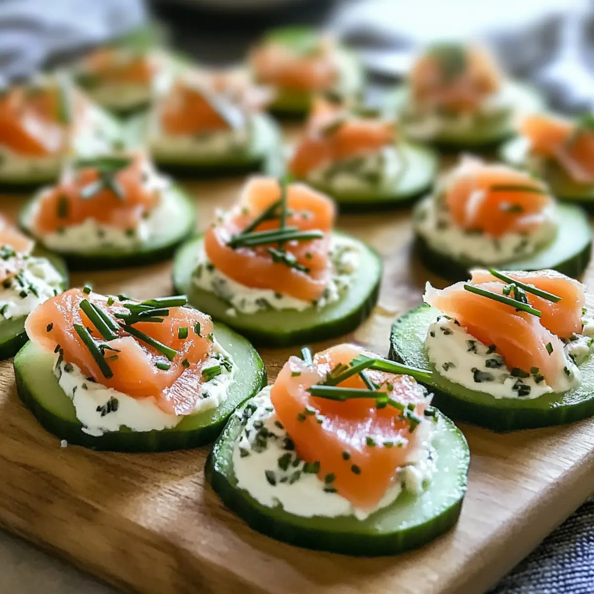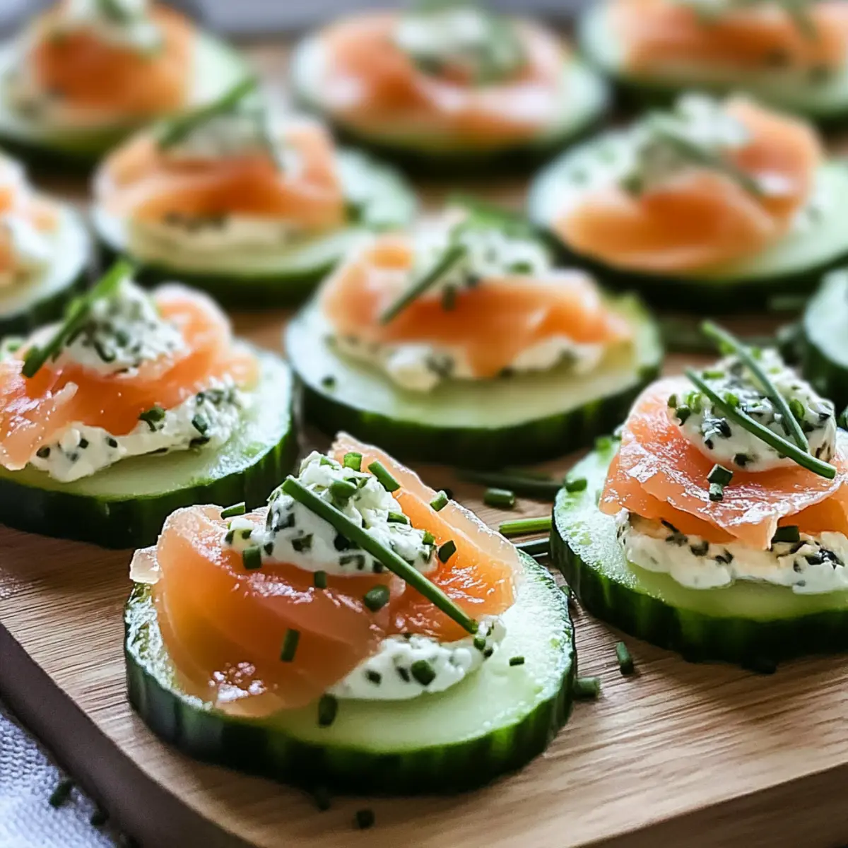 Jump to Recipe Print RecipeAs I prepped for my summer gathering, a flurry of vibrant colors and refreshing aromas filled my kitchen, sparking an idea for a light, no-cook delight: Cucumber Smoked Salmon Bites. The crispness of fresh cucumbers paired with the savory depth of smoked salmon creates a mouthwatering contrast that elevates any gathering. This healthy appetizer not only serves up fantastic flavors but also keeps meal prep quick and effortless—perfect for those sunny afternoons. Each bite rings in at only 115 calories, making them a guilt-free indulgence you can enjoy without a second thought. Curious about how to whip up these delicious bites and impress your guests? Let’s dive into this refreshing recipe! Why are Cucumber Smoked Salmon Bites a Must-Try? No-Cook Convenience: These bites require just minutes to prepare, making them a perfect option for those hectic summer days when time is limited. Flavorful Layers: The refreshing crunch complemented by the rich, smoky flavor creates a gourmet experience right at home. Versatile Ingredients: Swap in your favorite herbs or add a splash of lime for a twist—customization is key! Healthy Indulgence: At only 115 calories per serving, you can indulge without the guilt. For a fun twist, try pairing them with a side of Cucumber Strawberry Salad to elevate your summer spread. Crowd-Pleasing Appeal: These bites are bound to impress at any gathering, drawing raves from friends and family alike! Cucumber Smoked Salmon Bites Ingredients For the Base Cucumber – Provides a refreshing base; substitute with radishes for a spicier crunch. Smoked Salmon – Adds a rich, savory flavor; gravlax or any cold fish is a great alternative. For the Creamy Spread Cream Cheese – Serves as a creamy spread; Greek yogurt offers a lighter, healthier option. Spring Onion – Gives a mild onion flavor; finely chopped shallots or green onions can be used as substitutes. Chives – Adds a subtle herbal note; fresh dill or parsley are excellent alternatives. Lemon Juice – Brightens the overall flavor; lime juice offers a refreshing twist if preferred. Lemon Zest – Enhances the citrus notes; fresh zest is ideal but can be skipped if you don’t have it. Black Pepper – Provides warmth and spice; freshly cracked pepper delivers the best flavor. Now you have everything you need to create these satisfying Cucumber Smoked Salmon Bites! Remember, even a simple appetizer like this can turn heads when you use fresh, quality ingredients. Happy cooking! Step‑by‑Step Instructions for Cucumber Smoked Salmon Bites Step 1: Prepare Cream Cheese Mixture In a medium bowl, combine softened cream cheese with minced spring onion, chopped chives, lemon juice, lemon zest, and freshly cracked black pepper. Use a spatula or fork to mix until the mixture is smooth and creamy, which should take about 2-3 minutes. Set this delicious cream cheese blend aside as it will be the flavorful base for your Cucumber Smoked Salmon Bites. Step 2: Slice Cucumbers Wash your cucumbers under cold water, then slice them into half-inch thick rounds using a sharp knife. To maintain their crispness, gently pat each cucumber slice dry with a paper towel. This prevents excess moisture that could affect the texture of your Cucumber Smoked Salmon Bites and ensures a delightful crunch in every bite. Step 3: Assemble Bites On a clean serving platter, arrange the dried cucumber slices. Using a butter knife or small spatula, spread an even layer of the cream cheese mixture over each cucumber slice, making sure to cover them all the way to the edges. This step should create a beautiful canvas for the rest of your Cucumber Smoked Salmon Bites and help hold everything in place. Step 4: Top with Salmon Gently place a slice of smoked salmon on top of each cream cheese-covered cucumber. You can fold or roll the smoked salmon for a visually appealing presentation. The savory flavor of the salmon complements the creamy cheese beautifully, transforming simple cucumbers into Cucumber Smoked Salmon Bites that are ready to impress your guests. Step 5: Garnish and Serve For that final touch, sprinkle some extra cracked black pepper and a few chopped chives over the top of each bite. If you desire a zesty kick, drizzle a little fresh lemon juice on top. Serve these refreshing Cucumber Smoked Salmon Bites immediately to enjoy their best flavor and crispness, and watch them disappear at your summer gathering! Make Ahead Options These Cucumber Smoked Salmon Bites are a fantastic choice for meal prep, making your summer gatherings a breeze! You can prepare the cream cheese mixture up to 3 days in advance; simply combine softened cream cheese with the spring onion, chives, lemon juice, lemon zest, and black pepper, then store it in an airtight container in the refrigerator. When you’re ready to serve, slice the cucumbers and assemble the bites just before guests arrive to maintain that delightful crunch. This way, your guests will still enjoy the fresh taste and vibrant presentation, all while saving you valuable time during those busy entertaining moments. Cucumber Smoked Salmon Bites Variations Feel free to get creative and make these bites your own with delightful twists and substitutions! Dairy-Free: Replace cream cheese with herbed cashew spread for a nutty, creamy alternative that’s just as delicious. Vegetarian: Swap out smoked salmon for avocado slices or herbed cream cheese to enjoy a fresh, flavorful bite without fish. Zesty Kick: Instead of lemon juice, use lime for a tangy twist that brightens the overall flavor profile. It’s like summer in every bite! Herbal Twist: Try fresh dill or parsley instead of chives to introduce a different herbal note that complements the salmon beautifully. Extra Crunch: Add thinly sliced radishes or bell peppers atop the salmon for a vibrant crunch and a pop of color. They add texture and flair! Smoky Flavor: For an additional depth of flavor, drizzle some smoked olive oi