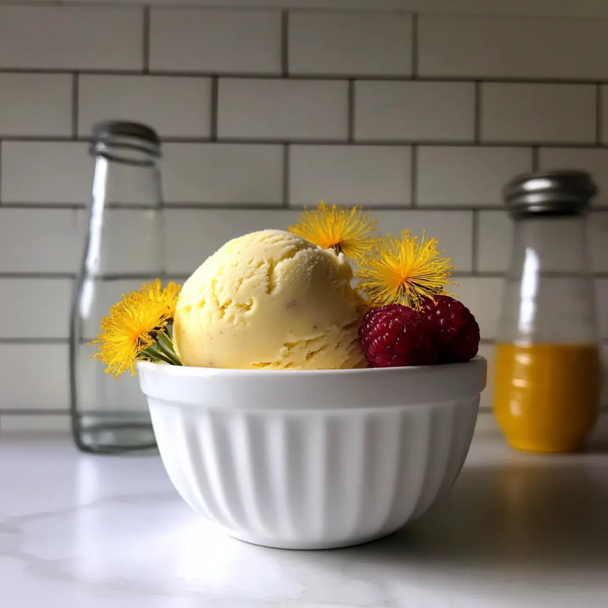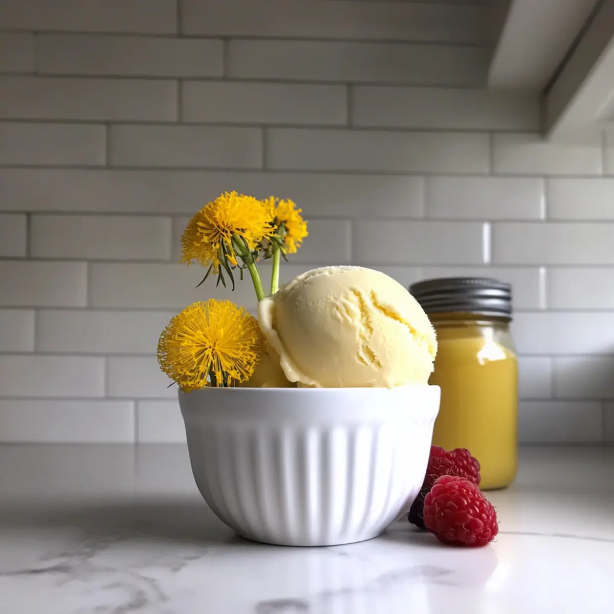 Jump to Recipe Print RecipeSpring is a beautiful reminder of nature’s bounty, and what better way to celebrate it than by indulging in my Dandelion and Honey Ice Cream? This creamy, floral-infused delight captures the essence of freshly foraged dandelion petals, blending sweet and tangy flavors that awaken your taste buds. Not only is this unique dessert a refreshing treat for warm days, but it also packs a punch in health benefits thanks to the vitamins A, C, and K found in dandelions. Plus, it’s a breeze to whip up at home, turning what’s often seen as a weed into an extraordinary culinary creation. Are you ready to transform your spring scoops with a twist? Let’s dive into this delightful recipe! Why Choose Dandelion & Honey Ice Cream? Uniqueness: This ice cream isn’t just any dessert—it features foraged dandelion petals, turning a common weed into an extraordinary treat! Health Boost: Packed with vitamins A, C, and K, this creamy delight offers health benefits along with its sweet flavor. Simplicity: Easy to make at home, you’ll impress friends and family without complicated techniques or hard-to-find ingredients. Versatility: Swap honey for maple syrup, or add edible flowers for a custom touch—it’s your creation to enjoy! Perfect for Spring: Celebrate the season with a refreshing scoop that captures the essence of spring in every bite. Indulge in this delicious dessert and check out my Honey Mustard Salmon for a complete spring meal! Dandelion & Honey Ice Cream Ingredients For the Base • Honey – A natural sweetener; adjust to taste or replace with agave or maple syrup for a different flavor profile. • Heavy Cream – Adds richness; use coconut cream for a dairy-free alternative. • Whole Milk (or Half and Half) – Provides creaminess; half and half gives a richer texture; alternatives include whole milk or non-dairy milk. • Dandelion Petals – Offers a unique floral flavor; use only fresh yellow petals, avoiding the green parts which can be bitter. • Sea Salt – Enhances sweetness; a pinch can elevate the overall flavor of the ice cream. • Egg Yolks – Essential for custard consistency; ensure they are fresh for the best results. Enjoy making your Dandelion & Honey Ice Cream with these natural ingredients! Step‑by‑Step Instructions for Dandelion & Honey Ice Cream Step 1: Combine Ingredients In a medium saucepan, combine honey, heavy cream, whole milk, and fresh dandelion petals. Stir well to blend the honey into the liquids. Place the saucepan over medium heat and slowly bring the mixture to a gentle simmer, watching for tiny bubbles to form around the edges, about 5-7 minutes. Step 2: Infuse Flavors Once simmering, remove the saucepan from the heat. Cover it and let the mixture infuse for 30-40 minutes, allowing the dandelion petals to impart their unique floral flavor into the cream. During this time, you may notice a pleasant aroma filling your kitchen, indicating that the infusion is working its magic. Step 3: Strain Mixture After the infusion period, it’s time to strain the mixture. Use a fine-mesh sieve to filter out the dandelion petals, discarding them and retaining the fragrant, flavorful liquid. Return this strained mixture to the saucepan as you prepare to create the custard base for your Dandelion & Honey Ice Cream. Step 4: Whisk Egg Yolks In a separate bowl, whisk together the egg yolks until they are smooth and slightly thickened. Gradually pour in the strained cream mixture while continuously whisking to combine. This tempered method ensures the egg yolks stay smooth and won’t curdle when heated. Step 5: Cook Custard Transfer the bowl back to the saucepan and place it over low heat. Cook the mixture, stirring constantly and scraping the bottom for even cooking. Continue this for about 10-15 minutes, or until the custard thickens enough to coat the back of a spoon, reaching around 175°F. Patience is key here to achieve a velvety texture. Step 6: Chill Custard Once thickened, transfer the custard into a clean bowl and cover it with plastic wrap, pressing the wrap directly onto the surface to prevent a skin from forming. Chill the mixture in the refrigerator for at least four hours, or until completely cooled. This cooling period is essential for achieving the perfect consistency in your Dandelion & Honey Ice Cream. Step 7: Churn Ice Cream After chilling, pour the custard into an ice cream maker. Churn according to the manufacturer’s instructions, typically around 20-25 minutes, until it reaches a soft-serve consistency. Keep an eye on the mixture as it starts to thicken, becoming creamy and smooth, ready for freezing. Step 8: Freeze Before Serving Once churned, transfer the ice cream into a freezer-safe container. Smooth the top and seal it with a lid. Place it in the freezer for a few hours, or until firm. Take note that it may take longer due to the natural ingredients, so allow some time for your Dandelion & Honey Ice Cream to reach the perfect scoopable state! What to Serve with Dandelion & Honey Ice Cream Indulging in a scoop of creamy Dandelion & Honey Ice Cream can be the perfect conclusion to any spring meal, making it essential to pair it with complementary dishes and drinks. Fresh Berries: Bright, tart flavors of strawberries or raspberries add a refreshing contrast, enhancing the floral notes of the ice cream. Toss them in a bit of honey for extra sweetness! Shortbread Cookies: A buttery, crumbly cookie creates a delightful texture contrast. Their mildly sweet flavor enhances the richness of the ice cream while making each bite memorable. Honey Roasted Nuts: The warm nuttiness pairs beautifully, echoing the honey in the ice cream. Try almonds or walnuts, lightly candied for an extra touch of sweetness. Minted Fruit Salad: A mix of seasonal fruits with a hint of fresh mint can brighten up the palate between creamy bites. The mint’s freshness complements the floral notes of the dandelions. Lemonade or Iced Tea: An