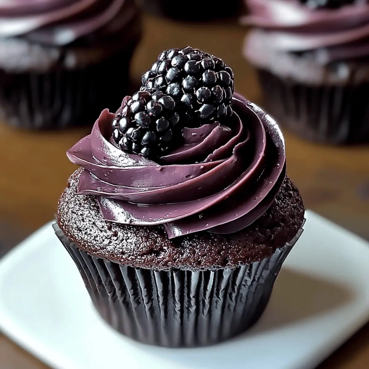 Jump to Recipe Print RecipeAs the warm aroma of freshly baked cupcakes wafts through my kitchen, I can’t help but feel a thrill—transforming everyday ingredients into something utterly indulgent is a mini celebration in itself. Enter my Dark Chocolate Blackberry Cupcakes, a delightful blend of rich chocolate and the bright tartness of blackberries that will enchant your senses. These treats are not only a feast for the eyes but also a joy to whip up, bringing a touch of elegance to any gathering or simple afternoon treat. Plus, they’re surprisingly quick to make, perfect for those moments when you crave a sweet indulgence without spending hours in the kitchen. Curious to learn how to create these little masterpieces? Let’s dive in! Why Are These Cupcakes So Irresistible? Decadent Richness: Each bite of these Dark Chocolate Blackberry Cupcakes offers a luscious chocolate experience, perfectly paired with the tangy burst of fresh blackberries. Quick and Simple: Despite their gourmet flavor, these cupcakes come together swiftly, making them ideal for busy bakers who want an impressive dessert with minimal fuss. Customizable: Feel free to swap blackberries for your favorite seasonal berries, ensuring a fresh twist every time—try adding raspberries for a delightful touch! Stunning Presentation: With their deep chocolate hue and vibrant blackberry accents, these cupcakes are as beautiful as they are delicious, guaranteed to impress your guests and make any occasion special. Perfect for Any Occasion: Whether you’re hosting a gathering or simply treating yourself, these cupcakes have that crowd-pleasing appeal that will leave everyone asking for seconds. Dark Chocolate Blackberry Cupcake Ingredients Transform your baking with these Dark Chocolate Blackberry Cupcakes! For the Batter • All-Purpose Flour – Provides structure and texture; substitute with gluten-free flour for a gluten-free version. • Unsweetened Cocoa Powder – Adds rich chocolate flavor; ensure it’s high quality for the best taste. • Granulated Sugar – Sweetens the cupcakes and helps create a moist texture; substitute with coconut sugar for a lower glycemic index. • Baking Powder – A leavening agent that helps the cupcakes rise; do not substitute or omit to maintain texture. • Baking Soda – Another leavening agent; also crucial for perfect rising and texture. • Salt – Enhances flavors; use a fine sea salt for a subtle taste. • Unsalted Butter – Adds richness and moisture; can be replaced with vegan butter for a dairy-free version. • Large Eggs – Binds ingredients and provides leavening; substitute with flax eggs for a vegan option. • Vanilla Extract – Provides a warm depth of flavor; use pure vanilla extract for the best results. • Buttermilk – Adds moisture and tenderness; substitute with milk mixed with a little vinegar or lemon juice. • Fresh Blackberries – Provides tartness that balances the sweetness; substitute with raspberries or strawberries based on availability. • Dark Chocolate Chips – Adds decadent chocolate flavor and richness; use dairy-free chips for a vegan option. Step‑by‑Step Instructions for Dark Chocolate Blackberry Cupcakes Step 1: Preheat the Oven Begin by preheating your oven to 350°F (175°C). While the oven warms up, grab a cupcake pan and line it with paper liners to make removing the cupcakes easier after baking. The warmth of the oven will help to create fluffy, moist cupcakes, setting the stage for your Dark Chocolate Blackberry Cupcakes. Step 2: Mix the Dry Ingredients In a large mixing bowl, combine all the dry ingredients: all-purpose flour, unsweetened cocoa powder, granulated sugar, baking powder, baking soda, and salt. Whisk them together until they’re evenly blended, which will ensure that your Dark Chocolate Blackberry Cupcakes have a consistent texture. The mixture should appear light and fluffy with a rich cocoa aroma. Step 3: Cream the Butter and Sugar In another bowl, using an electric mixer or a whisk, cream together the softened unsalted butter and granulated sugar. Beat the mixture on medium speed until it becomes light and fluffy, about 3-4 minutes. This step is crucial, as it incorporates air into the batter, contributing to the fluffiness of your cupcakes. Step 4: Incorporate Eggs and Vanilla Add the large eggs and vanilla extract to the butter-sugar mixture, beating until fully incorporated. The mixture should appear smooth and glossy after about a minute of mixing. This is where the richness of the Dark Chocolate Blackberry Cupcakes begins to shine, as the eggs help bind everything together. Step 5: Combine Dry and Wet Ingredients Gradually alternate adding the dry ingredient mixture with buttermilk to the butter and egg mixture. Start with a third of the flour mix, then pour in half the buttermilk, and continue mixing just until combined. This process should take about 2-3 minutes. Be careful not to overmix, as it can make the cupcakes dense. Step 6: Fold in Blackberries and Chocolate Chips Gently fold in the fresh blackberries and dark chocolate chips into the batter using a spatula. Aim for an even distribution throughout the batter, but try to keep the fruit intact to maintain those delightful bursts of tartness in each cupcake. Your batter should now be beautifully speckled with chocolate and berry pieces. Step 7: Fill the Cupcake Liners Scoop the batter into the lined cupcake pan, filling each liner about two-thirds full. This allows the cupcakes to rise without spilling over. You should be able to see the flecks of blackberries and chocolate chips peeking through as you fill the liners. A small ice cream scoop works perfectly for this step! Step 8: Bake the Cupcakes Place the filled cupcake pan into your preheated oven. Bake for 18-20 minutes, checking for doneness by inserting a toothpick into the center of a cupcake. When it comes out clean or with a few moist crumbs attached, they are ready! The tops should