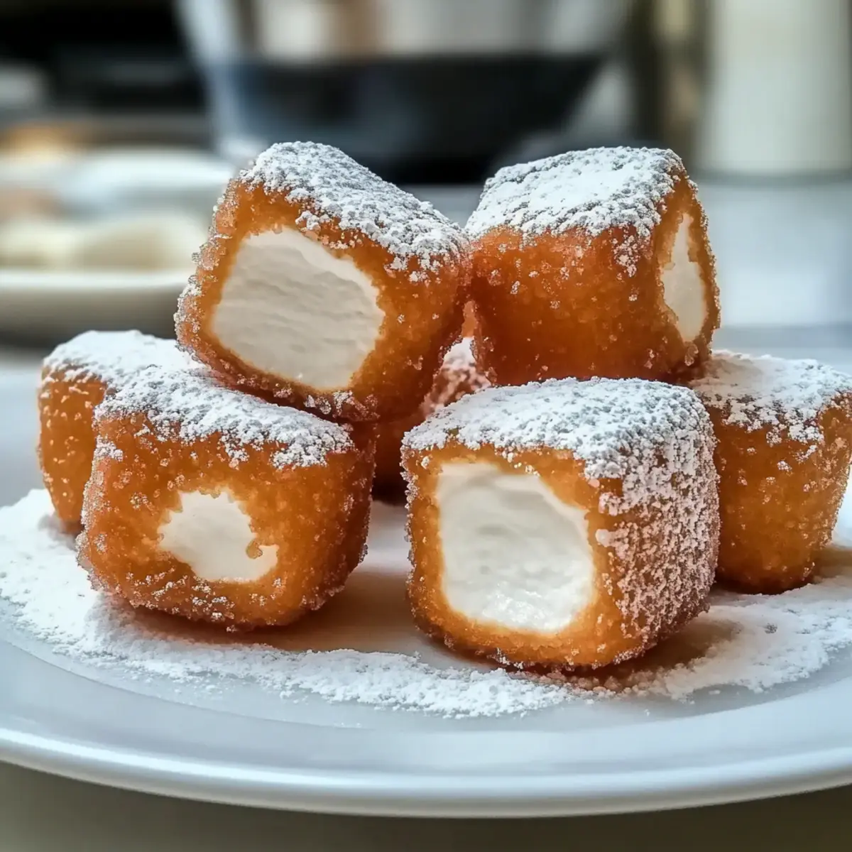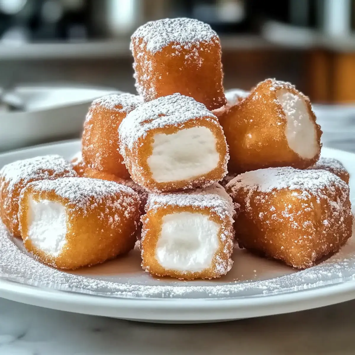 Jump to Recipe Print RecipeThe sizzle of hot oil and the intoxicating aroma of sweetness wafting through the kitchen bring me back to enchanting carnival days. With my recipe for Crispy Deep Fried Marshmallows, you can recreate that nostalgia right at home! This kid-friendly treat is not just about satisfying your sweet tooth; it’s also incredibly quick to whip up, making it perfect for spontaneous celebrations or cozy family gatherings. The best part? You can customize the flavor with chocolate, strawberry, or whatever marshmallow delights your taste buds. So, grab your ingredients and get ready to indulge in a joyful, gooey experience that’ll have everyone coming back for seconds. Are you excited to turn a classic carnival snack into your next signature dessert? Why Are Deep Fried Marshmallows So Irresistible? Nostalgic Treat: These deep fried marshmallows are a fun twist on a classic carnival snack, evoking sweet childhood memories. Quick & Easy: With just a few ingredients and under 30 minutes, they make a fabulous dessert for last-minute cravings or relaxed family evenings. Customizable Flavors: Whether you crave chocolate, strawberry, or something unique, the options are endless, ensuring everyone indulges in their favorite flavor. Kid-Friendly Delight: Perfect for all ages, these treats will bring smiles to kids and adults alike, making them a hit at any gathering! Crowd-Pleaser: Serve warm with chocolate sauce or caramel, and watch your guests swoon over this delightful dessert. Looking for more sweet inspiration? Check out Fried Strawberry Cheesecake to satisfy your cravings! Deep Fried Marshmallows Ingredients Get ready to create this delightful treat with these essential ingredients! For the Batter All-Purpose Flour – Provides structure and coating for the marshmallows; can substitute with gluten-free flour for a gluten-free option. Milk – Adds moisture to the batter, resulting in a smooth consistency; non-dairy milk can be used as an alternative. Egg – Binds the batter for a light, airy texture; aquafaba can be substituted for a vegan option. Vanilla Extract – Enhances flavor in the batter; can be replaced with almond extract for a different taste. Baking Powder – Causes the batter to puff while frying. For the Marshmallows Marshmallows – The star ingredient providing sweetness and fluffiness; chocolate or strawberry flavored marshmallows can be used for added variety. For Frying Neutral Frying Oil (Vegetable or Canola) – Used for frying to achieve a golden brown crisp without affecting flavor. Step‑by‑Step Instructions for Deep Fried Marshmallows Step 1: Prepare the Batter In a mixing bowl, whisk together 1 cup of all-purpose flour, 1 cup of milk, 1 beaten egg, 1 teaspoon of vanilla extract, and 1 teaspoon of baking powder until you achieve a smooth, thick batter resembling pancake consistency. Set it aside to rest for about 5 minutes, allowing the ingredients to meld for the perfect coating to your deep fried marshmallows. Step 2: Heat the Oil In a deep fryer or large pot, heat about 2–3 inches of neutral frying oil (vegetable or canola) to a temperature of 350°F (175°C). To test the oil’s readiness, drop a small spoonful of the batter into the oil—it should sizzle immediately and rise to the surface, indicating that your oil is just right for frying those delicious deep fried marshmallows. Step 3: Dip the Marshmallows Skewer each marshmallow with a fork or skewer, and fully coat them in the batter, ensuring every surface is covered for that crunchy exterior. For an extra crispy layer, consider double-dipping each marshmallow back into the batter before frying. This technique is key to achieving the perfect texture for your deep fried marshmallows. Step 4: Fry the Marshmallows Carefully lower the battered marshmallows into the hot oil in small batches. Fry them for about 1–2 minutes, gently turning them as they cook until they puff up and turn a beautiful golden brown. It’s crucial not to overcrowd the pot, as this keeps the oil temperature consistent and ensures even cooking. Step 5: Drain and Serve Once golden brown, use a slotted spoon to remove the deep fried marshmallows from the oil. Drain them on paper towels to soak up excess oil. While they are still warm, dust them with powdered sugar and serve immediately alongside chocolate sauce or caramel for dipping, creating a delightfully indulgent treat that everyone will enjoy. What to Serve with Crispy Deep Fried Marshmallows Indulging in crispy, golden delights is only the beginning of a sweet experience—pair these marshmallows with complementary sides and treats that elevate your dessert game. Creamy Vanilla Ice Cream: This classic pairing brings a cool, creamy balance to the warm, crunchy marshmallows, creating a delightful contrast of temperatures. Chocolate Sauce: Rich, velvety chocolate sauce enhances the sweetness and adds a decadent touch that will make every bite feel indulgent. Fresh Berries: Juicy strawberries or raspberries introduce a refreshing burst of flavor, cutting through the richness and adding a pop of color to your plate. Homemade Caramel Dip: Drizzling warm caramel over your deep fried marshmallows takes indulgence to the next level, inviting dips that are simply irresistible. Powdered Sugar Dusting: A light dusting of powdered sugar not only enhances the visual appeal but also adds an extra layer of sweetness that complements the marshmallows beautifully. Nutty Crust Option: Rolling the marshmallows in crushed nuts before frying adds an exciting crunch and a nutty flavor, taking the classic to new heights. Sparkling Lemonade: A refreshing drink that pairs perfectly, adding a zesty contrast to the sweetness and leaving you feeling rejuvenated. Chocolate-Stuffed Doughnuts: For a truly indulgent experience, serve alongside chocolate-stuffed doughnuts for a double dose of sweetness that’s sure to please. Fruit Salad: A light fruit salad, bursting with seasonal fru