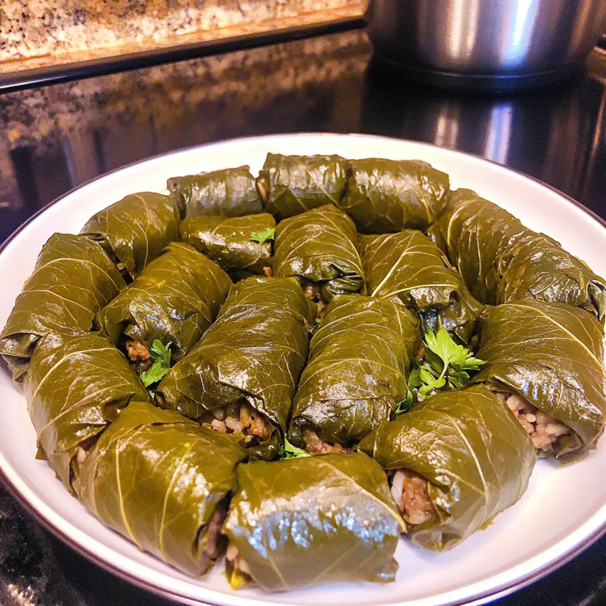 Experience the comfort of Dolmades with savory beef and aromatic herbs wrapped in grape leaves.