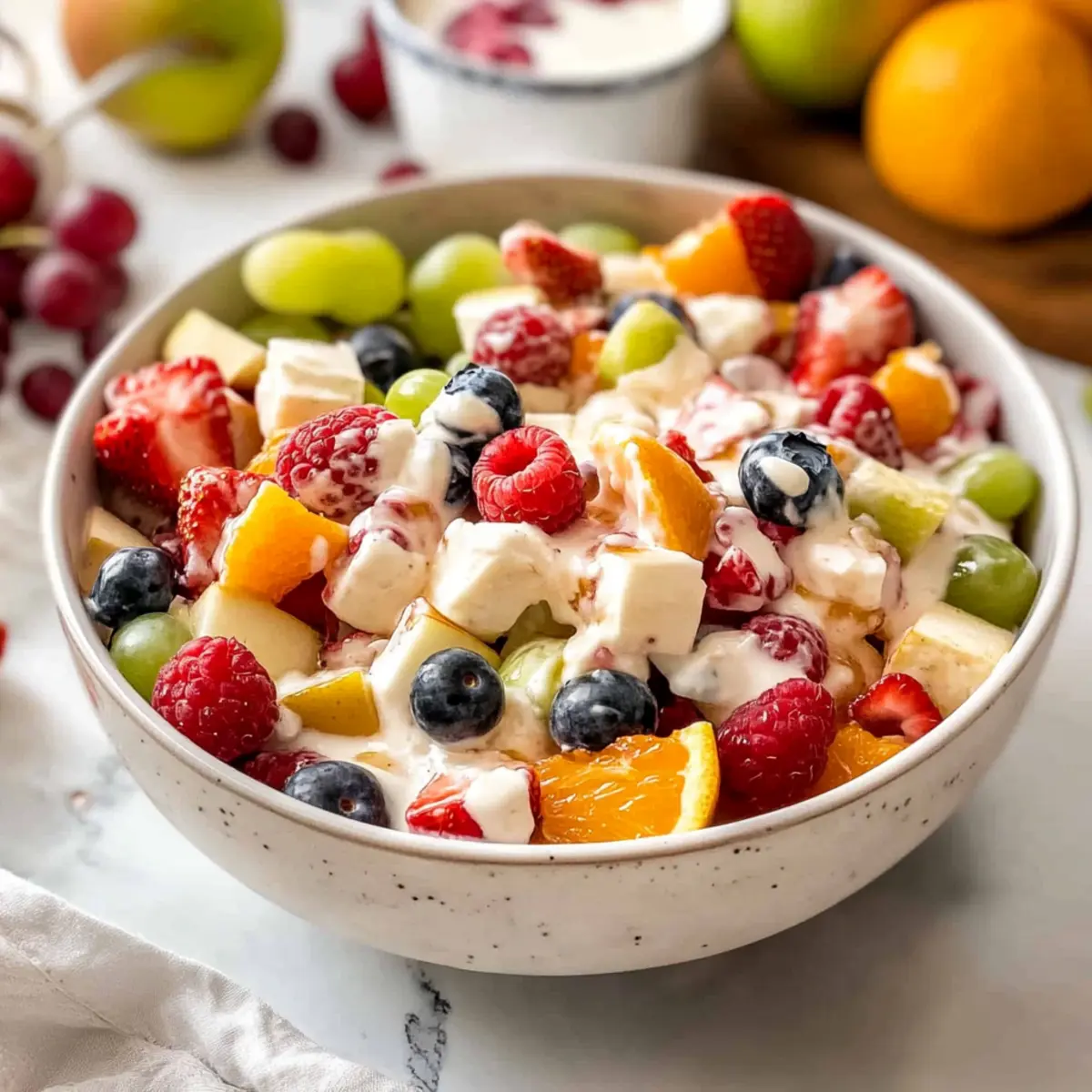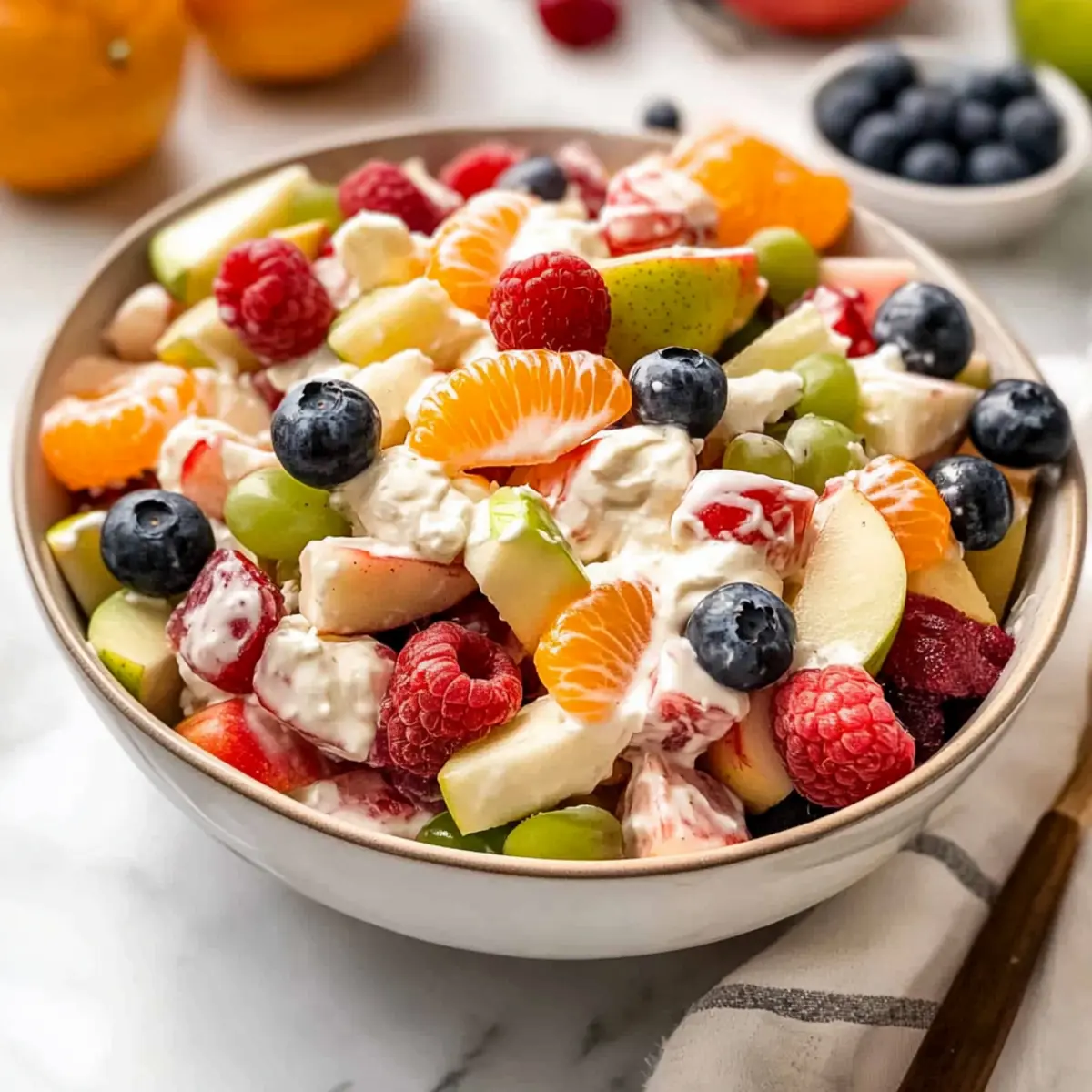 Jump to Recipe Print RecipeAs spring blossoms and Easter approaches, I find myself diving headfirst into the vibrant colors of the season. One dish that never fails to uplift any gathering is the Easter Fruit Salad with Creamy Honey Vanilla Yogurt. This gluten-free delight mixes the juiciest fruits with a luscious yogurt dressing that’s both easy to whip up and sure to impress. Not only does it look stunning on any table, but it’s also a guilt-free treat that can brighten up everything from brunches to family dinners. Imagine serving a dish that not only pleases the palate but also adds a burst of sunshine to your holiday spread. Ready to bring a touch of freshness to your table? Let’s create something unforgettable! Why Is This Easter Salad a Must-Try? Vibrant Colors: This salad brings a splash of color to your table, making every dish look more inviting and festive. Each fruit is carefully selected to shine bright! Simplicity: With minimal preparation, you can mix this salad in 15 minutes or less, leaving more time for celebrating with loved ones. Versatility: Perfect for brunches, picnics, or holiday dinners; it pairs beautifully with dishes like our Tuna Noodle Salad or Egg Salad Sandwich. Guilt-Free Indulgence: Enjoy a dessert-like flavor without the heaviness. Each serving is light on calories but high on taste! Family Friendly: Both kids and adults will love this dish, making it a crowd-pleaser at any gathering. Easter Fruit Salad Ingredients • Easy-to-find, fresh ingredients for a delightful treat! For the Fruit Blueberries – Adds natural sweetness and vibrant color. No direct substitution necessary. Raspberries – Contributes tartness and a soft texture; substitute with blackberries if desired. Strawberries – Provides sweetness; use sliced for easier eating. Can substitute with diced peaches (not recommended due to browning). Apple – Offers crunch and acidity; diced for texture. Avoid cutting until just before serving to prevent browning. Green Grapes – Provide sweetness and a crisp bite; halved for easy consumption. Other grapes can be used. Mandarin Oranges – Offers a juicy, tangy flavor; canned works well, ensure they’re drained. For the Honey Vanilla Yogurt Mascarpone Cheese – Adds creaminess and richness; cream cheese can be a substitute if mascarpone is unavailable. Plain Yogurt – Provides a tangy contrast to creamy mascarpone; full-fat is preferable for richness. Honey – Adds sweetness; can substitute with maple syrup for a vegan option. Fresh Lemon Juice – Enhances flavor and helps prevent browning in fruits; always use fresh for best taste! Vanilla Extract – Enhances overall flavor; no substitutions needed. This colorful Easter Fruit Salad is not only gluten-free but also a refreshing way to celebrate the festive season! Step‑by‑Step Instructions for Easter Fruit Salad with Creamy Honey Vanilla Yogurt Step 1: Prepare the Fruits Start by washing all your fruits under cold running water. Gently pat them dry with a clean kitchen towel. Then, in a large serving bowl, combine the blueberries, raspberries, sliced strawberries, diced apple, halved green grapes, and drained mandarin oranges. To prevent the apple from browning, drizzle about one tablespoon of fresh lemon juice over the mixture and toss gently to coat evenly. Step 2: Mix the Yogurt Dressing In a separate medium bowl, add the softened mascarpone cheese, plain yogurt, honey, remaining lemon juice, and vanilla extract. Using a whisk or hand mixer, blend the ingredients together until smooth and creamy—this should take about 2-3 minutes. Ensure there are no lumps, and the mixture has a luscious consistency that will perfectly complement the vibrant fruits in the Easter fruit salad. Step 3: Combine and Serve Just before serving, pour the creamy honey vanilla dressing over the prepared fruit mixture. Gently fold the yogurt dressing into the fruit salad using a spatula, making sure all the pieces are well-coated. The result should be a colorful and inviting Easter Fruit Salad. For an elegant presentation, you can serve individual portions in ramekins, topped with an extra dollop of the honey yogurt dressing if desired. Make Ahead Options These Easter Fruit Salad with Creamy Honey Vanilla Yogurt are perfect for busy home cooks looking to simplify their meal prep! You can prepare all the fruits up to 24 hours in advance; just be sure to keep diced apples coated in lemon juice and store them in an airtight container to maintain freshness. Furthermore, you can mix the honey vanilla yogurt dressing and refrigerate it for up to 3 days. When you’re ready to serve, simply combine the prepped fruits with the dressing, gently toss to coat, and enjoy a delightful and time-saving dish that’s just as delicious as if made fresh! Easter Fruit Salad Variations & Substitutions Feel free to get creative with this delicious Easter Fruit Salad and make it truly your own! Seasonal Fruits: Swap in kiwi or pineapple for an exotic twist that adds tropical flavor and a delightful pop of color. Adding seasonal fruits not only boosts the taste but also celebrates the freshness of spring’s bounty. Nutty Crunch: Add chopped walnuts or pistachios on top for an irresistible crunch that provides texture and a nutty complement to the creamy yogurt. Nuts can also bring healthy fats, making your fruit salad not just flavorful but nutritious too! Berries Galore: Substitute raspberries with blackberries for a different tartness that pairs beautifully with the honey yogurt. Mixing up the berries allows you to play with flavor profiles, keeping things interesting! Vegan Delight: For a completely plant-based option, swap mascarpone with vegan cream cheese and use maple syrup instead of honey. This makes it a fantastic vegan option while preserving the dish’s creamy texture and sweet flavor. Zesty Kick: Add a pinch of cayenne pepper or a drizzle of hot honey to the yogurt dressing for a surprising heat that elevates