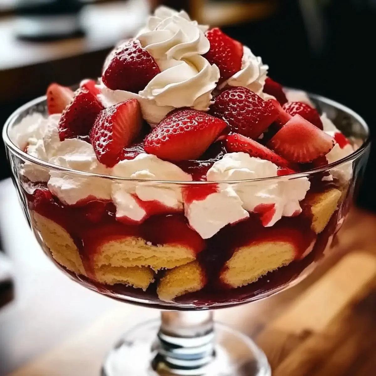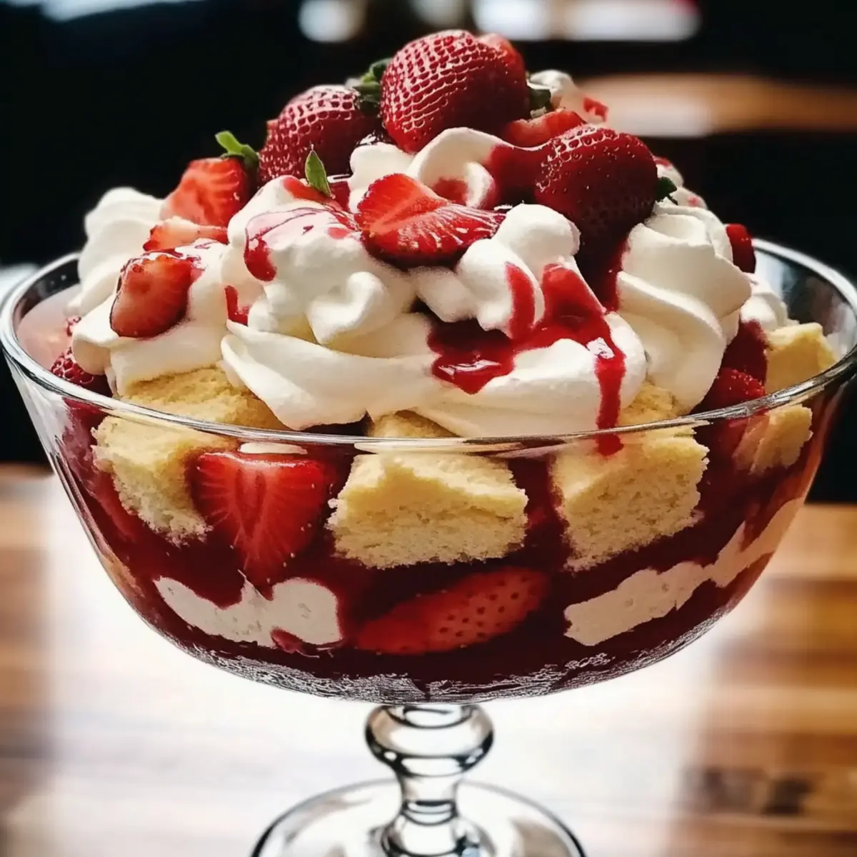Jump to Recipe Print RecipeAs I walk through the bustling farmer’s market, the sweet scent of ripe strawberries beckons me from the vibrant stands. There’s something magical about this time of year, especially when I collect the freshest berries for my Easter Strawberry Shortcake Trifle—a show-stopping make-ahead dessert that promises to dazzle family and friends. This delightful creation layers fluffy shortcake with creamy goodness and juicy strawberries, transforming any table into a festive focal point. With its crowd-pleasing charm and simple preparation, it’s a dessert that not only brings smiles but also allows you to spend more time with loved ones. Plus, if you’re seeking gluten-free alternatives or want to whip up individual servings, I’ve got you covered! Ready to discover how to craft this delightful trifle for your holiday celebration? Let’s dive in! Why is this trifle a must-try? Festive Presentation: This stunning trifle layers vibrant strawberries and creamy goodness, captivating any gathering’s attention. Versatile Variations: Whether you choose frozen strawberries, gluten-free shortcake, or individual servings, customization is at your fingertips! Make-Ahead Marvel: Prepare it a day in advance to allow flavors to meld, making it a stress-free dessert option for bustling holidays. Crowd-Pleaser: The combination of flavors and textures ensures everyone will rave about this delightful treat—perfect for family gatherings! Easy to Assemble: A straightforward process means you can whip it up quickly and with little fuss. Pair it with a refreshing Cucumber Strawberry Salad for a delightful meal. Easter Strawberry Shortcake Trifle Ingredients • Gather your ingredients for a delicious trifle that everyone will love! For the Base Fresh Strawberries – Provides sweetness and freshness; if needed, substitute with thawed frozen strawberries that are well-drained. Prepared Shortcake – Offers structure and texture; for a gluten-free option, use gluten-free shortcake. For the Cream Layers Heavy Cream – Essential for whipped cream; you may use Cool Whip as a convenient alternative. Powdered Sugar – Sweetens the whipped cream; if unavailable, granulated sugar works in a pinch. Vanilla Extract – Adds depth of flavor; don’t skip this for the best taste. Cream Cheese – Provides a rich layer; ensure it is at room temperature for smooth mixing. Granulated Sugar – Sweetens the cream cheese layer; interchangeable with powdered sugar. Lemon Zest – Adds brightness; optional to omit if you prefer a simpler taste. Optional Garnishes Seasonal Fruits – Enhance presentation; consider using extra strawberries or other berries like blueberries. Make this Easter Strawberry Shortcake Trifle the star of your festive gathering, and enjoy every luscious layer! Step‑by‑Step Instructions for Easter Strawberry Shortcake Trifle Step 1: Prepare the Strawberries Begin by washing and hulling about 2 cups of fresh strawberries, then slice them into halves or quarters. Sprinkle a tablespoon of granulated sugar over the strawberries and gently toss them to combine. Set this mixture aside for about 15–20 minutes to macerate, allowing the strawberries to release their natural juices, which will create a delicious syrup for your Easter Strawberry Shortcake Trifle. Step 2: Make the Whipped Cream In a medium mixing bowl, pour 1 cup of heavy cream and add 2 tablespoons of powdered sugar along with 1 teaspoon of vanilla extract. Using an electric mixer, beat the mixture on medium-high speed until soft peaks form, which should take about 3–5 minutes. Look for a thick, fluffy texture. Once ready, gently fold in half of this whipped cream into the cream cheese mixture during assembly for added creaminess. Step 3: Prepare the Cream Cheese Layer In another mixing bowl, beat together 8 ounces of room temperature cream cheese and ¼ cup of granulated sugar using an electric mixer. Add the zest of half a lemon for a bright flavor, and continue mixing until the mixture is smooth and creamy, approximately 2–3 minutes. Make sure there are no lumps; this well-mixed cream cheese layer is essential for your Easter Strawberry Shortcake Trifle. Step 4: Assemble the Trifle Choose a clear trifle bowl or a deep serving dish to showcase the beautiful layers. Start by placing an even layer of shortcake pieces at the bottom. Then, add a generous layer of the macerated strawberries, followed by a layer of the cream cheese mixture, and finish with a layer of whipped cream. Repeat this layering process until you use all your ingredients, ending with a luscious layer of whipped cream on top, ensuring a stunning presentation. Step 5: Chill the Trifle Once you have layered all the ingredients, cover your assembled Easter Strawberry Shortcake Trifle with plastic wrap. Refrigerate for at least 4 hours, or ideally overnight. This chilling step allows the flavors to meld together beautifully, softening the shortcake and making it even more delightful to enjoy when served. Step 6: Garnish and Serve Before serving, feel free to add optional garnishes such as additional sliced strawberries or other seasonal fruits for a pop of color. Spoon the layered trifle into individual dessert dishes or serve directly from the bowl, showcasing its beautiful layers. Your loved ones will be delighted as they dive into this festive trifle, perfect for any Easter celebration! Expert Tips for Easter Strawberry Shortcake Trifle Perfect Strawberries: Always choose ripe, fresh strawberries for the best flavor. If using frozen, make sure they are thoroughly thawed and drained to avoid excess moisture. Texture Matters: For a heavenly trifle, mix the whipped cream gently into the cream cheese layer to maintain its lightness. Avoid overmixing, as this can lead to a dense texture. Chilling Time: Don’t rush the chilling process! Allow the trifle to set for at least 4 hours or overnight to blend the flavors seamlessly for your Easter St