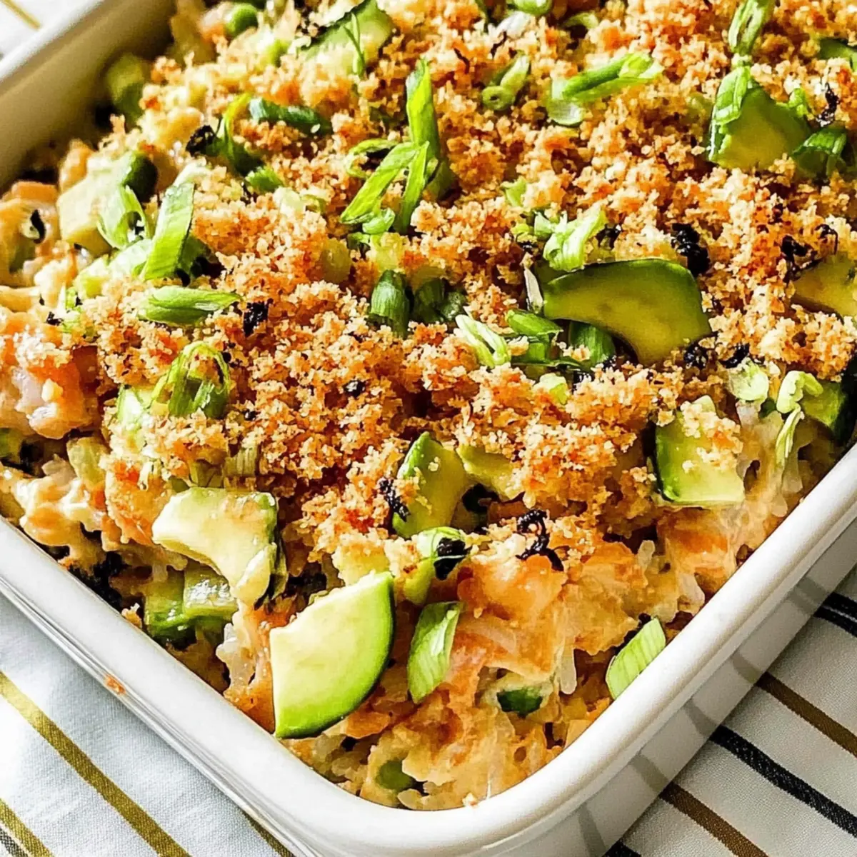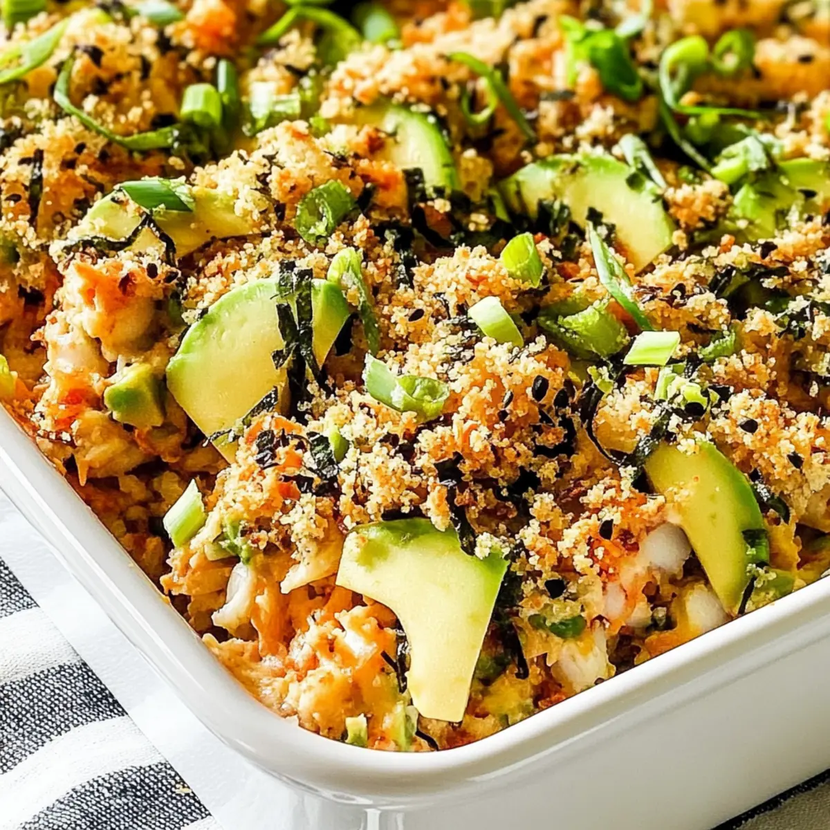 Jump to Recipe Print RecipeAs the aroma of creamy avocado and savory crab wafts through my kitchen, I can’t help but smile. It’s the perfect evening in, and what better way to cozy up than with a delightful Easy California Roll Sushi Bake? This deconstructed sushi treat transforms the classic flavors into a family-friendly dish that is easy to prepare, making it a stellar option for both dinner nights and lively get-togethers. Not only is it a breeze to whip up, but also a hit with guests—who doesn’t love fresh sushi without the fuss of rolling? Join me as we dive into a world of warm, gooey goodness and crispy toppings that will surely impress. Ready to find out how to bring a taste of Japan right to your dining table? Let’s get started! What’s Special About This Sushi Bake? Family-Friendly Fun: This Easy California Roll Sushi Bake makes preparing sushi a delightful family activity, inviting everyone to gather around and dig in together. Minimal Skill Needed: Forget the intimidation of rolling sushi! This recipe is as easy as it gets, ensuring that even novice cooks can master it. Flavorful & Versatile: With creamy avocado, savory crab, and a crunchy panko topping, every bite bursts with flavor. Feel free to substitute ingredients and personalize your bake—try adding fresh veggies from your garden or even a drizzle of delicious Korean BBQ Steak sauce for an extra kick! Perfect for Gatherings: Ideal for potlucks and casual get-togethers, this dish will wow your guests, making you the star of the evening. Quick Preparation: Ready in just about 30 minutes, it’s a time-saver that doesn’t skimp on taste. Make meal prep a breeze and enjoy warm, comforting sushi without the fuss! Easy California Roll Sushi Bake Ingredients Here’s what you’ll need to create this scrumptious Easy California Roll Sushi Bake that brings delightful flavors to your table! For the Rice Sushi Rice – The foundation of this dish, use authentic sushi rice for that perfect sticky consistency. Water – Essential for cooking the rice; follow your rice brand’s instructions for best results. Salt – Just a pinch will enhance the rice’s natural flavor. Sugar – Balances the vinegar for a subtle hint of sweetness. Rice Vinegar – Crucial for giving the rice that authentic sushi taste. For the Crab Mixture Imitation Crab Meat – The star of this dish; provides that savory seafood flavor without using raw fish. Kewpie Mayonnaise – Contributes a creamy texture; feel free to substitute with Greek yogurt for a lighter option. Wasabi (optional) – Add according to your spice preference for a kick. For the Toppings Cucumber – Adds freshness and a delightful crunch; you can swap it with radish for a different taste. Soy Sauce – Enhance the flavor of your cucumbers with a light drizzle. Sesame Oil – The nutty aroma elevates the overall flavor of the dish. Olive Oil – Use this for toasting panko breadcrumbs to achieve that golden crispness. Panko Breadcrumbs – Creates that irresistible crunchy topping; substitute with regular breadcrumbs if necessary. Sriracha Chili Sauce – For those who enjoy a bit of heat; adjust the amount to taste. Avocados – A creamy topping that can be swapped for guacamole for extra zest. Green Onions – Adds freshness and flavor, making it a perfect garnish. Furikake – An optional Japanese seasoning that enhances umami flavor and adds authenticity. Gather these ingredients, and let the baking begin! Your Easy California Roll Sushi Bake is just a few steps away from deliciousness. Step‑by‑Step Instructions for Easy California Roll Sushi Bake Step 1: Prepare Sushi Rice Begin by rinsing 2 cups of sushi rice in cold water until the water runs clear, about 5 minutes. Transfer the rice to a pot with 2 cups of water and a pinch of salt. Bring to a boil over medium heat, then lower to a simmer, cover, and cook for 20 minutes. Once done, let it rest covered for another 10 minutes before fluffing with a fork and mixing in 3 tablespoons of sugar and ¼ cup of rice vinegar. Step 2: Mix Crab Filling While the rice is resting, grab a medium bowl and combine 8 ounces of chopped imitation crab meat with ¼ cup of Kewpie mayonnaise and a teaspoon of wasabi (if desired). Mix gently until well blended. This creamy crab filling will elevate your Easy California Roll Sushi Bake, adding delightful flavors that complement the rice beautifully. Step 3: Assemble the Bake Preheat your oven to 350°F (175°C). In a greased 9×9-inch baking dish, firmly press the prepared sushi rice into an even layer, ensuring it’s tightly packed. Next, spread the crab mixture evenly over the rice. Bake in the preheated oven for 10-15 minutes, or until heated through and the edges begin to turn golden. Step 4: Prepare Toppings While the sushi bake is in the oven, prepare your toppings. Start by slicing one cucumber into thin strips and tossing it with a tablespoon of soy sauce and a teaspoon of sesame oil in a bowl. Meanwhile, heat 2 tablespoons of olive oil in a skillet over medium heat, then add ½ cup of panko breadcrumbs, toasting them until golden brown and crispy, about 3-5 minutes. Step 5: Final Assembly Once the sushi bake has finished cooking, remove it from the oven and let it cool slightly. Spread 1 ripe avocado, mashed, over the crab layer, then top with the marinated cucumbers, along with the toasted panko breadcrumbs. Drizzle Sriracha mayo over the top, sprinkle with sliced green onions, and finish with a dash of furikake for added umami flavor. Serve hot for a delicious family-friendly meal! What to Serve with Easy California Roll Sushi Bake As you savor the warm, gooey goodness of your sushi bake, consider these delightful pairings to round out your meal. Crispy Tempura Vegetables: These light and crunchy bites bring a satisfying contrast to the creamy bake. They offer a delightful crunch and a fresh flavor profile. Miso Soup: A warm bowl of miso soup perfectly complements the sushi