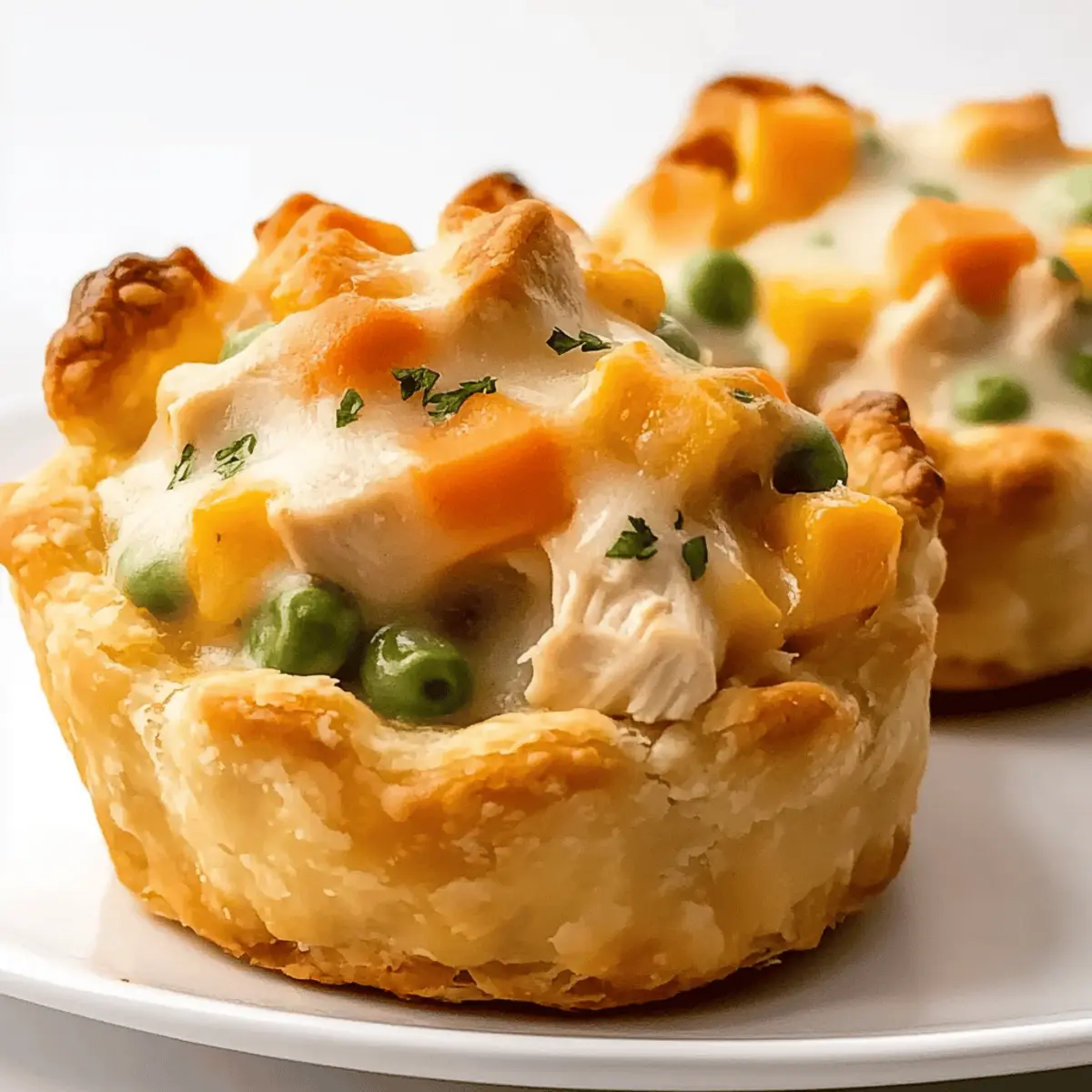 Jump to Recipe Print RecipeThere’s something magical about a dinner that feels like a warm hug, especially on a bustling weeknight. Enter my Easy Mini Chicken Pot Pies—the perfect solution for those craving comforting, homemade meals without spending hours in the kitchen. These delightful pocket-sized pies come together in just under 40 minutes, making them an ideal choice for busy families or anyone wanting to escape the cycle of fast food. Picture tender chicken mingling with vibrant vegetables, all encased in a flaky, golden crust. It’s not just a meal; it’s a moment to savor. Plus, these mini wonders are a fantastic way to get the entire family involved in the kitchen, letting everyone customize their own filling. So, what will you pack into your pot pies tonight? Let’s dive into this easy and satisfying recipe! Why Are These Mini Pot Pies So Special? Quick Prep Time: In just 40 minutes, you can whip up these delightful treats, perfect for weeknight dinners! Crowd-Pleasing: These mini chicken pot pies appeal to everyone, making mealtime feel special and fun for the whole family. Flavor-Packed Filling: A scrumptious blend of savory chicken and fresh vegetables creates a comforting balance that warms the soul. Customizable: Make them your own by adding shredded cheese or seasonal veggies like mushrooms. Why not try them with my Cheesy Garlic Chicken for a twist? Fun Cooking Experience: Get the family involved and let everyone fill their own pies. Cooking together is a delicious way to bond! With these mini chicken pot pies, you’ll elevate your weeknight dinners from ordinary to extraordinary! Easy Mini Chicken Pot Pies Ingredients • Perfect for weeknight family meals! For the Filling Cooked Chicken – Use shredded or diced chicken for a hearty base. Frozen Mixed Vegetables – Convenient and nutritious; fresh vegetables can also be great. Onion – Yellow or white onions give a fantastic aromatic flavor. Celery – Adds a lovely crunch and depth of flavor; feel free to skip if not available. Chicken Broth – Moistens the filling; substitute with vegetable broth for a veggie option. Cream of Chicken Soup – Rich and creamy; can be replaced with a dairy-free alternative. Garlic Powder – A quick way to enhance savory notes; fresh garlic works too. For the Seasoning Dried Thyme – Provides aromatic herbal notes; try using rosemary or oregano for variety. Salt and Pepper – Essential to taste; adjust according to your dietary preferences. For the Crust Refrigerated Pie Crusts – Perfect for an easy and flaky crust; homemade is also an option for freshness. Egg – An egg wash adds shine to the crust; omit for egg-free versions. By gathering these ingredients, you’re one step closer to creating your own easy mini chicken pot pies that will surely satisfy everyone at the table! Step‑by‑Step Instructions for Easy Mini Chicken Pot Pies Step 1: Preheat the Oven Begin by preheating your oven to 400°F (200°C). This temperature ensures that the crust will bake evenly, turning perfectly golden brown while the filling warms through. As you wait, prepare your muffin tin by greasing it lightly with cooking spray or butter to prevent sticking. Step 2: Prepare the Filling In a large mixing bowl, combine your shredded cooked chicken, frozen mixed vegetables, diced onion, chopped celery, chicken broth, cream of chicken soup, garlic powder, dried thyme, salt, and pepper. Stir everything together until well combined. The mixture should be creamy and colorful, creating a delightful filling for your Easy Mini Chicken Pot Pies. Step 3: Roll Out the Pie Crust On a floured surface, unroll your refrigerated pie crusts. Use a rolling pin to create an even thickness if needed, and then cut out circles that will fit your muffin cups. Aim for circles that are slightly larger than your muffin tin openings to ensure they cover the bottom and sides well. Step 4: Assemble the Mini Pot Pies Carefully press the pie crust circles into the greased muffin tin, ensuring they fit snugly in each cup. Next, spoon the chicken filling into each crust, filling them about three-quarters full. Cover the top with additional pie crust circles, pinching the edges to seal and cutting small slits in the top crusts for steam vents, allowing for a perfect bake. Step 5: Bake Place the assembled mini chicken pot pies in the preheated oven and bake for 25 minutes, or until the crusts are golden brown and the filling is bubbling up through the slits. Keep an eye on them in the last few minutes to catch that beautiful color just right! Step 6: Cool and Serve Once baked, remove the mini pot pies from the oven and let them cool in the tin for about 5 minutes. This cooling period allows the filling to set a bit, making it easier to serve. Carefully take them out of the muffin tin and enjoy these comforting Easy Mini Chicken Pot Pies while they’re warm! Make Ahead Options These Easy Mini Chicken Pot Pies are perfect for meal prep lovers! You can assemble the mini pot pies up to 24 hours in advance, covering them tightly with plastic wrap or foil to keep them fresh in the refrigerator. If you prefer, you can store the filling and pie crust separately for up to 3 days; simply refrigerate the filling in an airtight container. To maintain the quality, make sure the crust is sealed well to prevent drying out. When you’re ready to enjoy them, just pop the assembled pies directly into the oven, baking them as instructed for a quick and cozy meal that feels just homemade! Easy Mini Chicken Pot Pie Variations Feel free to get creative with these easy mini chicken pot pies; a little twist can make a familiar dish exciting! Cheesy Addition: Sprinkle shredded cheese atop the chicken mixture before sealing the pies for a melty surprise. This adds a comforting, gooey layer that’s hard to resist. Seasonal Veggies: Swap out the frozen mixed vegetables for fresh, seasonal veggies like asparagus or bell peppers. Fresh ingredients ele