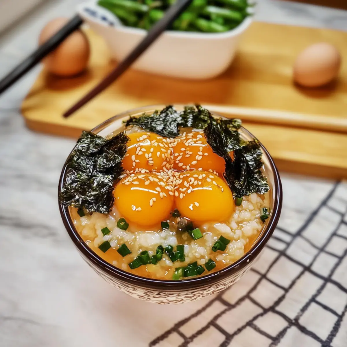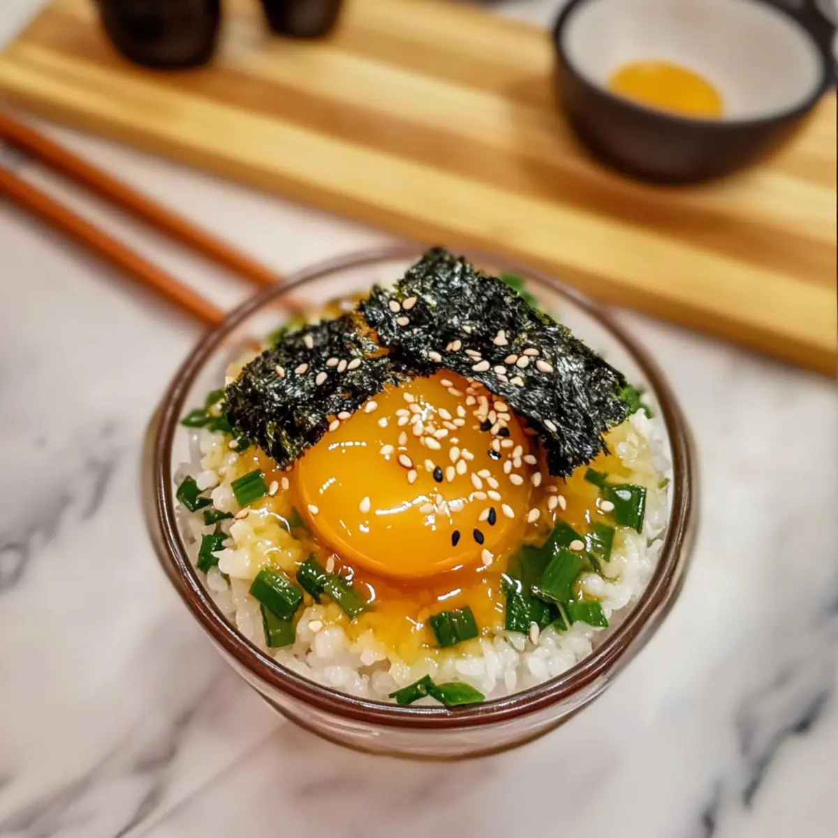 Jump to Recipe Print RecipeAs I stood in my kitchen surrounded by the warm aroma of simmering soy sauce, memories of my first bite of soy cured egg yolks flooded back. This easy soy cured egg yolks recipe is a delightful Korean delicacy that turns simple ingredients into something extraordinary. With their silky-smooth, custard-like texture and umami richness, these cured yolks are not only a breeze to make, but they also elevate any dish—from rice to pasta and beyond. The flexibility of marinating them for your desired saltiness and texture means you control the magic! So, are you ready to explore a unique twist on your everyday meals? Let’s dive into this satisfying gourmet adventure together! Why Try Soy Cured Egg Yolks? Simplicity at its finest: This easy soy cured egg yolks recipe requires minimal effort and just a few ingredients to achieve a gourmet treat at home. Unique flavor profile: The combination of soy sauce, mirin, and dried kelp creates an incredibly rich umami flavor that’s hard to resist. Versatility for any meal: These cured yolks can elevate everything from a simple bowl of rice to gourmet pasta dishes, making them a must-try in your kitchen. Flexible curing times: Tailor the marinating duration to fit your taste—a quick 12 hours or a deeper flavor with 48 hours allows for customization. Impress guests: Serve them at your next dinner party or brunch, and watch your friends be amazed at this delightful delicacy. For more unique recipes to elevate your home cooking, check out my Egg Salad Sandwich or explore the flavors in our Chilli Beef. Easy Soy Cured Egg Yolks Ingredients For the Brine • Soy Sauce – Provides the essential salty flavor for curing; low-sodium soy sauce works well for a milder taste. • Mirin – Adds a touch of sweetness and umami—feel free to substitute with sake for a different flavor. • Water – Dilutes the brine to balance the salty flavors for a perfect cure. • Dried Kelp (Kombu) – Enhances the depth of flavor with savory notes; bonito flakes or dried shiitake mushrooms can be used as alternatives. • Sugar – Counteracts the saltiness; consider using brown sugar or honey for a more complex sweetness. For the Eggs • Egg Yolks – The star of this easy soy cured egg yolks recipe, providing a rich, creamy base; opt for the freshest eggs you can find for the best results. For Serving • Sesame Oil – Adds an aromatic nuttiness to drizzle over your served dish; it’s optional, but highly recommended! • Chopped Scallions – Offers freshness and a delightful crunch as a garnish. • Crushed Nori – Brings an additional layer of umami flavor, enhancing your presentation. Step‑by‑Step Instructions for Easy Soy Cured Egg Yolks Recipe Step 1: Prepare the Brine In a medium pot, combine soy sauce, mirin, water, dried kelp, and sugar. Bring this mixture to a rolling boil over medium heat, then reduce the heat and let it simmer for 2 minutes until the sugar fully dissolves. Remove the pot from heat and allow the brine to cool completely to room temperature, ensuring the flavors meld nicely. Step 2: Separate Egg Yolks Using clean hands or an egg separator, carefully crack the eggs and separate the yolks from the whites. Gently place the yolks in a glass container, ensuring they are in a single layer to avoid touching. Take your time to prevent any breaks, as this easy soy cured egg yolks recipe relies on intact yolks for the best texture and flavor. Step 3: Combine Once the brine has cooled, strain it through a fine mesh sieve to remove the dried kelp. Carefully pour the smooth brine over the egg yolks in the container, ensuring they are fully submerged but avoiding any jostling that might break them. This brining step is crucial for building the savory depth in your finished soy cured egg yolks. Step 4: Cure Cover the container tightly with plastic wrap or a lid and place it in the refrigerator. Allow the yolks to cure for a minimum of 12 hours, and up to 48 hours, depending on your taste preferences for saltiness. Flip the yolks every 12 hours, or place a paper towel atop to ensure they remain submerged, allowing for an even brine infusion. Step 5: Serve Once cured to your liking, gently remove the egg yolks from the brine and rinse them briefly under cold water to remove excess salt. Serve them atop warm, cooked short-grain rice, and drizzle with sesame oil. Garnish with fresh chopped scallions and crushed nori for added flavor, enhancing the experience of your delightful easy soy cured egg yolks. Storage Tips for Easy Soy Cured Egg Yolks Fridge: Keep the cured yolks submerged in the brine in a sealed glass container. They can stay fresh for up to 3 days after curing. Freezer: While it’s not recommended to freeze egg yolks directly due to texture change, you can freeze the brine for later use in other recipes. Reheating: To enjoy again, serve directly from the fridge without reheating. Their creamy texture is best appreciated chilled or at room temperature as part of a dish. Check Before Serving: Always check for off smells or changes in texture before consuming leftovers to ensure the best quality of your easy soy cured egg yolks. Easy Soy Cured Egg Yolks Variations Feel free to get creative and customize this recipe to match your taste and dietary preferences! Dairy-Free: Replace mirin with a touch of coconut sugar and rice vinegar for a tropical twist. Spicy Kick: Add a few slices of fresh chili to the brine for a subtle heat that enhances the umami flavor. This little change can make a big difference! Umami Boost: Incorporate dried shiitake mushrooms into the brine for an extra layer of savory flavor. Simply strain them out alongside the kelp when you’re done. Garnish Variety: Instead of nori, try topping with bonito flakes for an added depth of flavor, creating a beautiful presentation and taste. Furikake Flair: Sprinkle furikake seasoning over the serving yolks for a delightful crunch and additional umami. This 