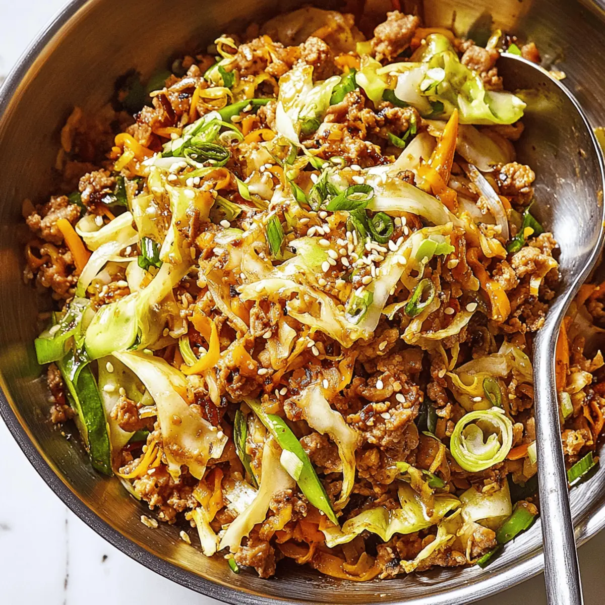 If you find your Egg Roll Bowls are a bit soggy, ensure that you’re not overcrowding the pan while cooking. Cooking the pork in batches can help achieve that golden-brown texture. Additionally, let the dish stir-fry for a few extra minutes. If your veggies release too much moisture, you can increase the heat for a quick sauté to enhance crispiness.