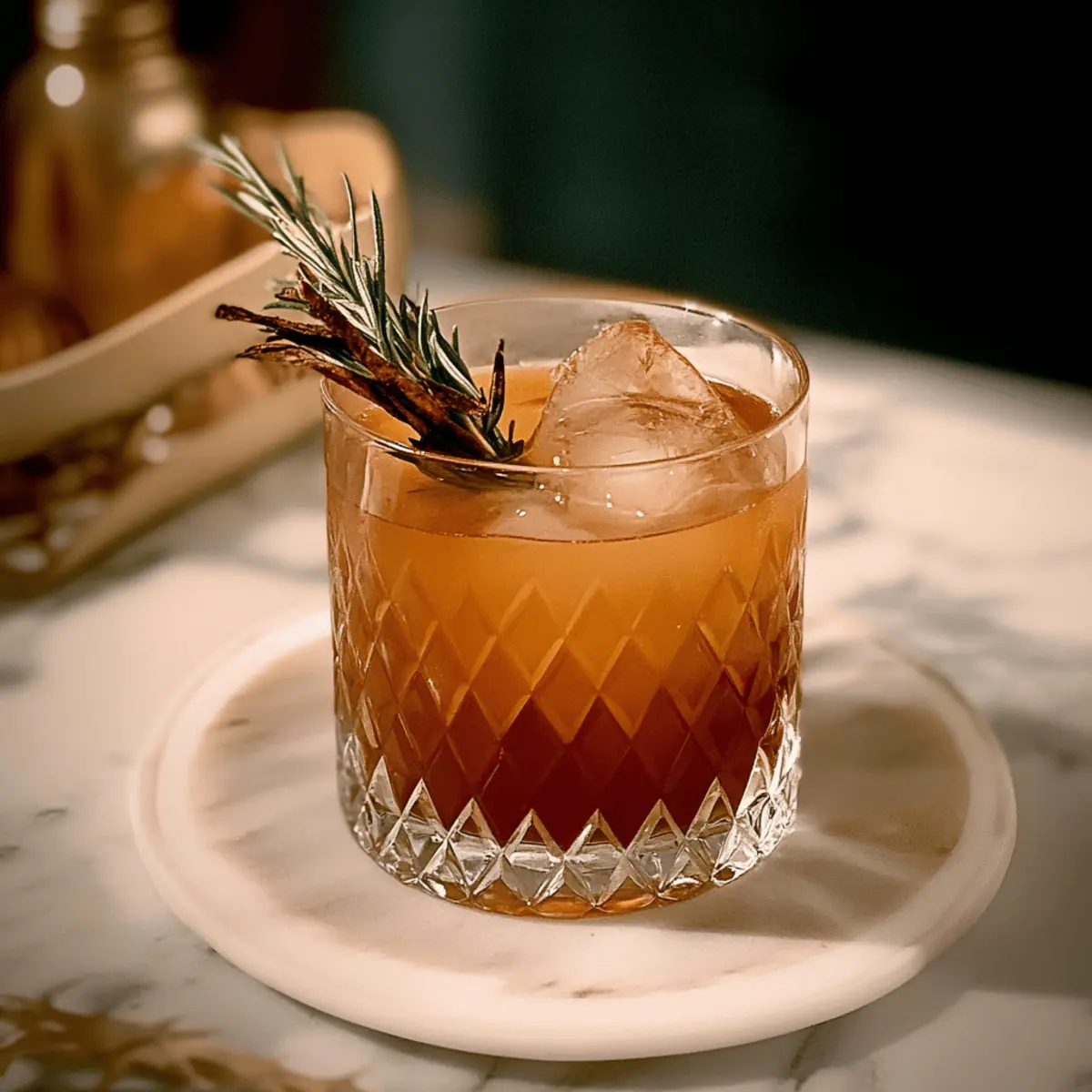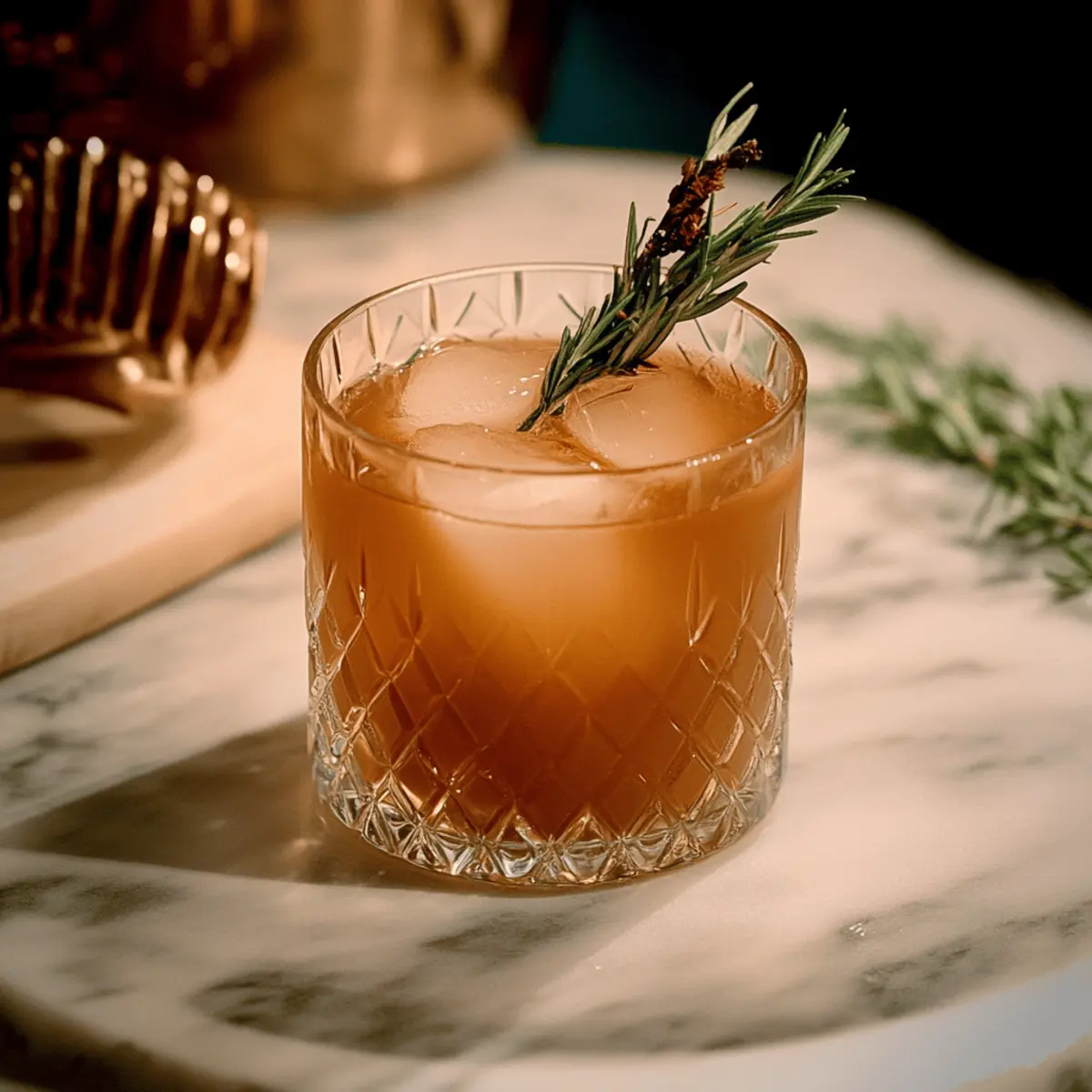 Jump to Recipe Print RecipeAs the chill of autumn settles in, there’s nothing quite like a cozy gathering around the fire with a drink in hand. That’s where my Smoky Non-Alcoholic Fireside Cocktail comes into play. This delightful beverage balances lightly sweet apple cider with the aromatic, smoky essence of rosemary, creating a drink that warms you from the inside out. Not only is this inviting cocktail perfect for those crisp evenings, but it also makes a fantastic choice for anyone seeking a tasty non-alcoholic option to enjoy with loved ones. As we embrace the fall season, this cocktail captures the essence of warmth and togetherness in every sip. How will you make it your own? Let’s find out! Why Choose This Fireside Cocktail? Unique Flavor Profile: The blend of smoky rosemary and sweet apple cider creates a drink that is both comforting and exhilarating. Perfect for Gatherings: This cocktail is a crowd-pleaser, ensuring everyone can enjoy the warmth of autumn without any alcohol. Customizable Options: Feel free to get creative with the ingredients! Add cranberry juice for a fruity twist or a dash of cinnamon for extra warmth. Quick and Easy: With just a few simple steps, you can whip up this delicious cocktail in no time. Enjoy it warm or at room temperature! Nostalgic Experience: Enjoy sipping this drink while reminiscing by the fire, making it a seasonal favorite worth repeating. Fireside Cocktail Ingredients • Get ready to make your cozy drink! For the Base Rosemary – Adds aromatic, smoky flavor; fresh is best for a robust essence. Pathfinder Spirit (1 oz / 30 ml) – Provides a woodsy, bitter flavor; substitute with non-alcoholic gin if needed. Spiritless Kentucky 74 Spiced (1 oz / 30 ml) – Introduces a spiced savory note; not easily replaceable, so seek a similar non-alcoholic spiced spirit. For the Sweetness Spiced Apple Cider (1 ½ oz / 45 ml) – A sweet base complementing bitterness; using clear cider enhances visual appeal. Fresh Lemon Juice (½ oz / 15 ml) – Adds brightness and acidity; bottled lemon juice is a handy substitute if fresh isn’t available. Pure Maple Syrup (¼ oz / 7.5 ml) – Provides a touch of natural sweetness; agave syrup can be used for a different flavor profile. These Fireside Cocktail ingredients come together to create a delightful and inviting experience perfect for those chilly autumn nights! Step‑by‑Step Instructions for Smoky Non-Alcoholic Fireside Cocktail Step 1: Smoke Rosemary Begin by smoking a sprig of fresh rosemary. Use a kitchen torch or a match to ignite the tip of the rosemary and place it on a heat-resistant plate. Quickly cover it with a rocks glass to trap the smoke inside. Allow the rosemary to smolder for about 30 seconds, releasing its fragrant, smoky aroma that will infuse your Fireside Cocktail. Step 2: Combine Ingredients While the rosemary smokes, gather a cocktail shaker and add the Pathfinder Spirit, Kentucky 74 Spiced, spiced apple cider, fresh lemon juice, and pure maple syrup. Fill the shaker with ice to the brim to ensure the mixture chills properly. This delightful blend will create the unique flavor profile of your Fireside Cocktail, so take care to measure roughly as you add each ingredient. Step 3: Shake Firmly close the shaker lid and shake the mixture vigorously for about 10 seconds. You should feel the outside of the shaker become cold as the ingredients combine and chill. This step is crucial for achieving a well-blended, refreshing Fireside Cocktail with all those wonderful flavors integrated beautifully. Step 4: Prepare Glass Remove the rocks glass from the rosemary, allowing the smoke to escape. Fill this glass with ice to keep your cocktail chilled longer. As you prepare the glass, take a moment to appreciate the warm infusion of smoky rosemary that will enhance your drink’s scent and flavor when served. Step 5: Strain Cocktail Once your glass is filled with ice, take your shaker and carefully strain the cocktail mixture into the glass. Pour slowly to prevent any unwanted splashes, letting the captivating colors of the drink cascade over the ice. Your Fireside Cocktail is now visually appealing and ready for the finishing touch! Step 6: Garnish Finally, garnish your Smoky Non-Alcoholic Fireside Cocktail with a sprig of the freshly smoked rosemary you prepared earlier. Re-smoking the rosemary garnish is optional but recommended for an extra aromatic experience. This beautiful touch elevates your cocktail, making it as delightful to look at as it is to sip. Make Ahead Options These Smoky Non-Alcoholic Fireside Cocktails are perfect for meal prep enthusiasts! You can prepare the cocktail mixture (without ice) up to 24 hours in advance, combining the Pathfinder Spirit, Kentucky 74 Spiced, spiced apple cider, lemon juice, and maple syrup in a shaker and refrigerating it. To maintain quality, store the mixture in a sealed container to prevent losing the aromatic notes. When you’re ready to serve, simply give the mixture a shake with ice, strain it into a glass filled with ice, and garnish with smoked rosemary for that warm, inviting flavor. This strategy makes the cocktail not only refreshing but also a time-saver for busy gatherings! What to Serve with Smoky Non-Alcoholic Fireside Cocktail As the cozy ambiance of autumn invites gatherings, consider these delightful pairings to elevate your Fireside Cocktail experience. Savory Cheese Platter: A mix of creamy brie, sharp cheddar, and tangy goat cheese perfectly complements the smoky notes of the cocktail. Warm Apple Crisp: The sweetness of baked apples harmonizes wonderfully with the cocktail’s flavors, creating a nostalgic autumn dessert. Toasted Crostini with Fig Spread: This crunchy, sweet, and slightly tangy topping enhances the drink’s elements, delivering a delightful contrast in textures. Maple-Glazed Brussels Sprouts: Roasted, caramelized sprouts add a savory richness that balances the lightly sweet components of the cocktail.
