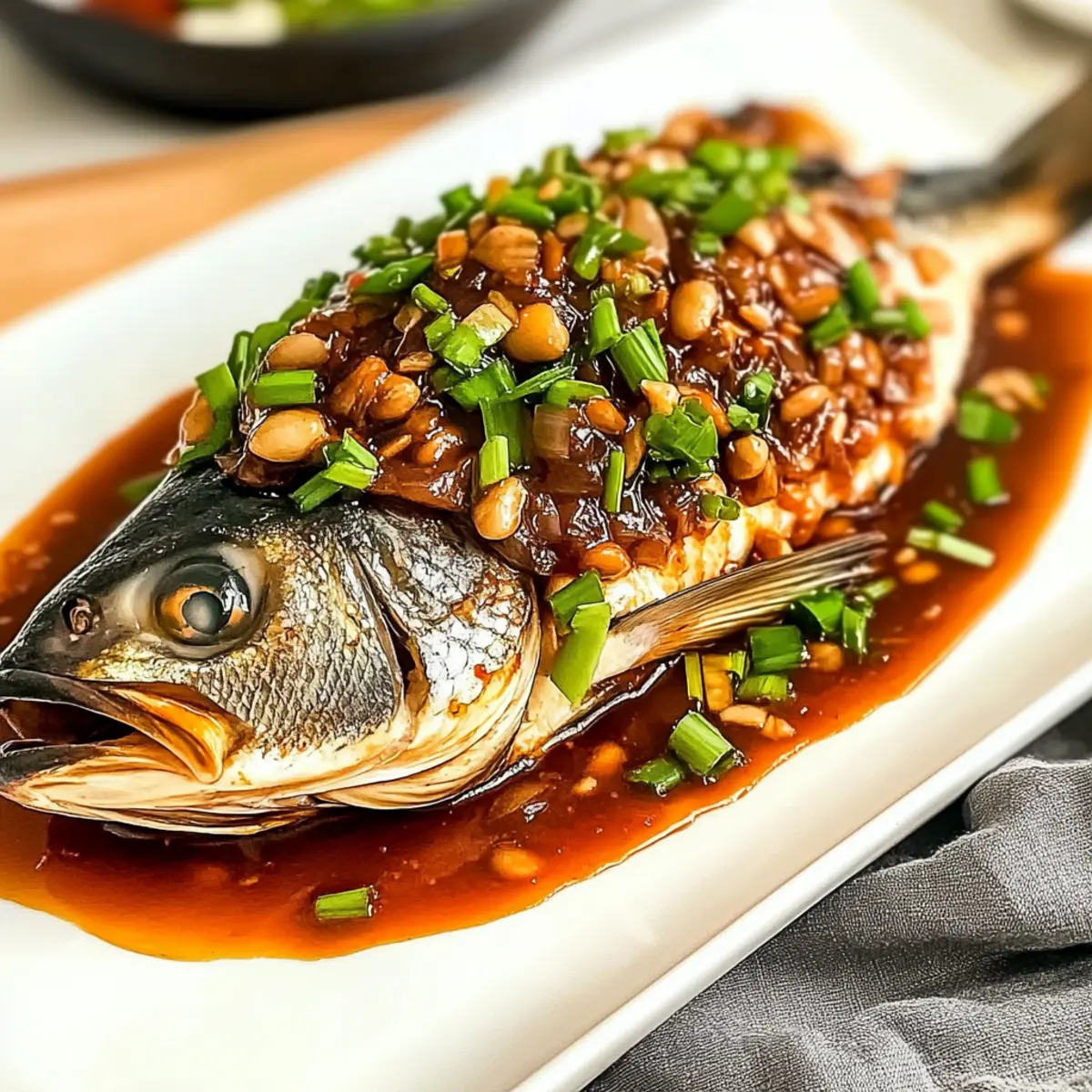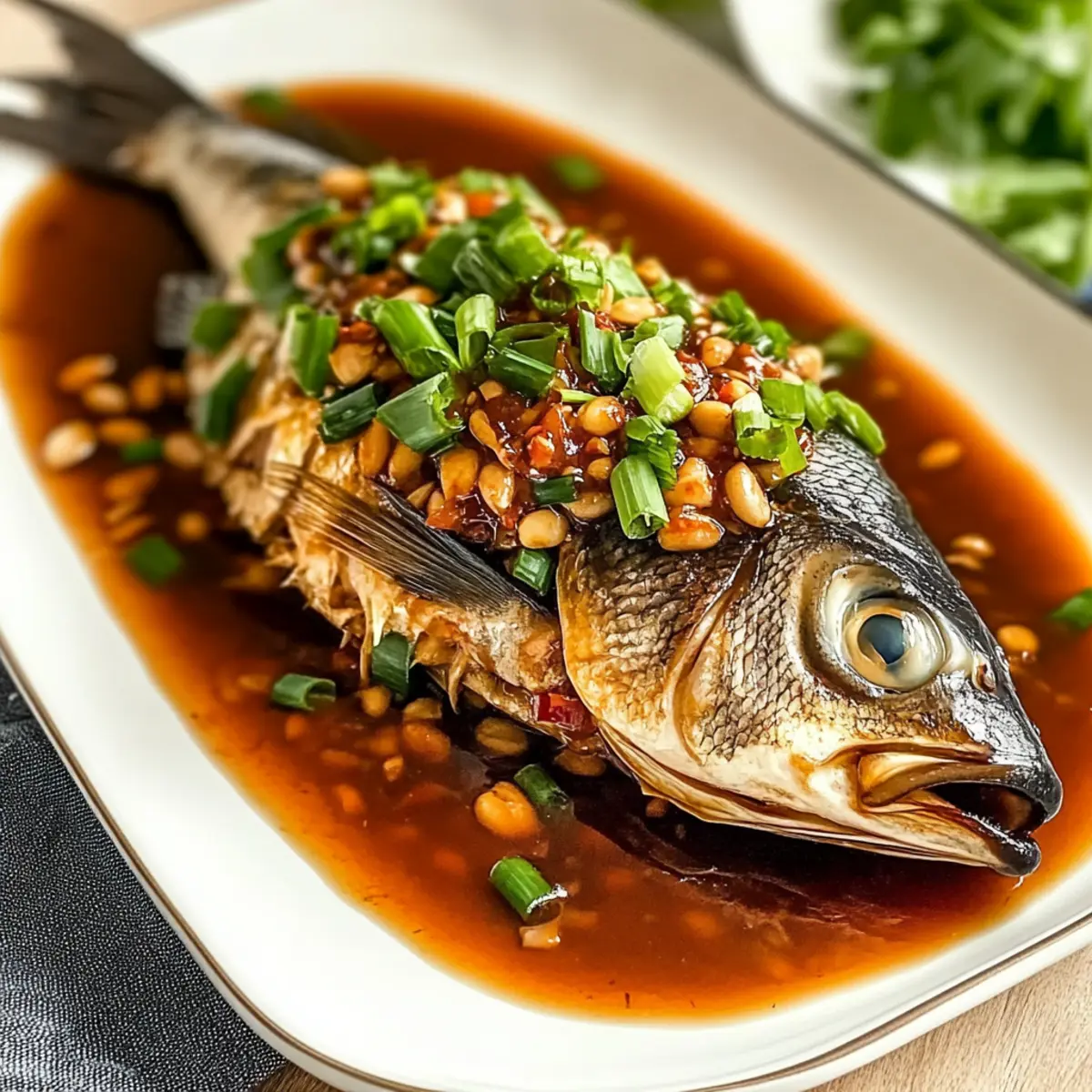 Jump to Recipe Print RecipeThe warm, savory scent of a bustling kitchen can transport me back to my childhood, where family gatherings were centered around vibrant meals like this Steamed Whole Fish with Chili Bean Sauce. This dish is not only a feast for the senses but also a versatile canvas, allowing you to customize the fish and ingredients based on what you have. With its exquisite blend of garlic, ginger, and green onions, this recipe stands out as both a quick preparation for busy weeknights and a stunning centerpiece for festive occasions, like the Lunar New Year. Plus, it’s gluten-free friendly with simple swaps! Are you ready to elevate your home cooking with this flavorful gem? Why Is This Fish So Irresistible? Quick preparation: In just under 30 minutes, you can enjoy a vibrant, restaurant-quality meal that dazzles your guests and boosts your weeknight dinners. Customizable options: With the ability to substitute different fish types and sauces, you can tailor this dish to suit your taste and dietary preferences. Combine it with Grilled Shrimp Sauce for a seafood feast! Bold flavors: The aromatic mix of garlic, ginger, and chili bean paste creates a deliciously savory experience that will leave your taste buds dancing. Perfect for celebrations: This dish symbolizes abundance and is an essential part of Lunar New Year festivities, making it a meaningful addition to any gathering. Healthy and gluten-free: Easily adapt this recipe for gluten-free diets by opting for tamari, keeping your meal both wholesome and delicious. Embrace a flavorful culinary adventure with this delightful Fish with Chili Bean Sauce! Fish with Chili Bean Sauce Ingredients For the Fish • Whole Fish (Tilapia or Sea Bass) – Main protein; provides a flaky texture; substitute with any firm white fish like cod or haddock. • Salt – Essential for seasoning; no substitutes needed. For the Sauce • Shaoxing Wine – Adds depth of flavor; can be replaced with dry sherry. • Chili Bean Paste (Doubanjiang) – Provides heat; can substitute with spicy miso or sriracha if necessary. • Light Soy Sauce – Adds umami and saltiness; can be substituted with tamari for a gluten-free Fish with Chili Bean Sauce. • Dark Soy Sauce – Enhances color and richness; optional for a lighter taste. • Chinese Black Vinegar – Introduces acidity; alternate with balsamic vinegar or rice vinegar. • Sugar – Balances flavors; can use honey or maple syrup as substitutes. • Water – Used for diluting the sauce; no substitutes required. • Cooking Oil – Necessary for frying; can use canola or vegetable oil. For the Aromatics • Green Onions – Adds freshness; can swap with scallions or leeks. • Garlic – Provides aromatic warmth; fresh garlic is optimal; avoid powdered garlic for best results. • Ginger – Provides zest; fresh is preferred, but ground ginger can be used in a pinch. • Dried Chilies – Introduces spiciness; adjust based on taste, or swap for fresh chilies to reduce heat. Step‑by‑Step Instructions for Fish with Chili Bean Sauce Step 1: Make the Sauce In a bowl, whisk together chili bean paste, light soy sauce, dark soy sauce, Shaoxing wine, Chinese black vinegar, sugar, and water until the mixture is smooth and well-combined. This flavorful sauce forms the backbone of your Fish with Chili Bean Sauce, so make sure all ingredients are blended thoroughly, and set it aside for the next steps. Step 2: Prepare Fish Rinse your whole fish under cold water and gently pat it dry using paper towels. Season both sides generously with salt, then pour Shaoxing wine over the fish, ensuring it’s well-coated. Allow it to marinate for 15 minutes, which enhances flavor absorption and prepares the fish for steaming, ensuring a moist and tender final dish. Step 3: Steam Fish Prepare your steamer or a heatproof plate set over a pot of boiling water. Place the marinated fish on the plate and steam it on high heat for 5 to 10 minutes. The fish is ready when it flakes easily with a fork, signaling that it is perfectly cooked and ready to absorb the delicious sauce. Step 4: Stir-fry Aromatics While the fish is steaming, heat cooking oil in a non-stick pan over medium-high heat. Once hot, add minced garlic, sliced ginger, green onions, and dried chilies to the pan. Stir-fry for about 1 to 2 minutes, or until the mixture is fragrant and the aromatics are just beginning to soften, then remove from heat momentarily. Step 5: Combine Sauce and Aromatics Return the pan with the fragrant mixture to the heat and pour in the prepared sauce. Allow it to simmer over medium heat for 2 to 3 minutes, letting the sauce thicken slightly and infuse with the aromatic flavors. This step enhances the overall taste of your Fish with Chili Bean Sauce, creating a rich, glossy coating. Step 6: Serve Carefully transfer the steamed fish to a serving platter. Generously pour the spicy chili bean sauce over the fish, ensuring it’s well-coated, and then sprinkle chopped green onions on top for a fresh touch. Serve immediately alongside jasmine rice for a complete and satisfying meal, making your Fish with Chili Bean Sauce a highlight of your dinner table. How to Store and Freeze Fish with Chili Bean Sauce Refrigerator: Store leftovers in an airtight container for up to 3-4 days. Make sure the fish is cooled to room temperature before sealing to maintain freshness. Freezer: For longer storage, wrap the fish well in plastic wrap and aluminum foil before placing it in a freezer bag. It can be frozen for up to 2 months without losing its flavor. Reheating: Thaw the fish in the refrigerator overnight, then reheat gently on the stovetop or in the microwave until warmed through, ensuring not to dry it out. Storage Tip: Keep the chili bean sauce separate when refrigerating leftovers to maintain the fish’s texture and enhance flavor when reheated. Fish with Chili Bean Sauce Variations Feel free to customize this delightful dish to suit your tast