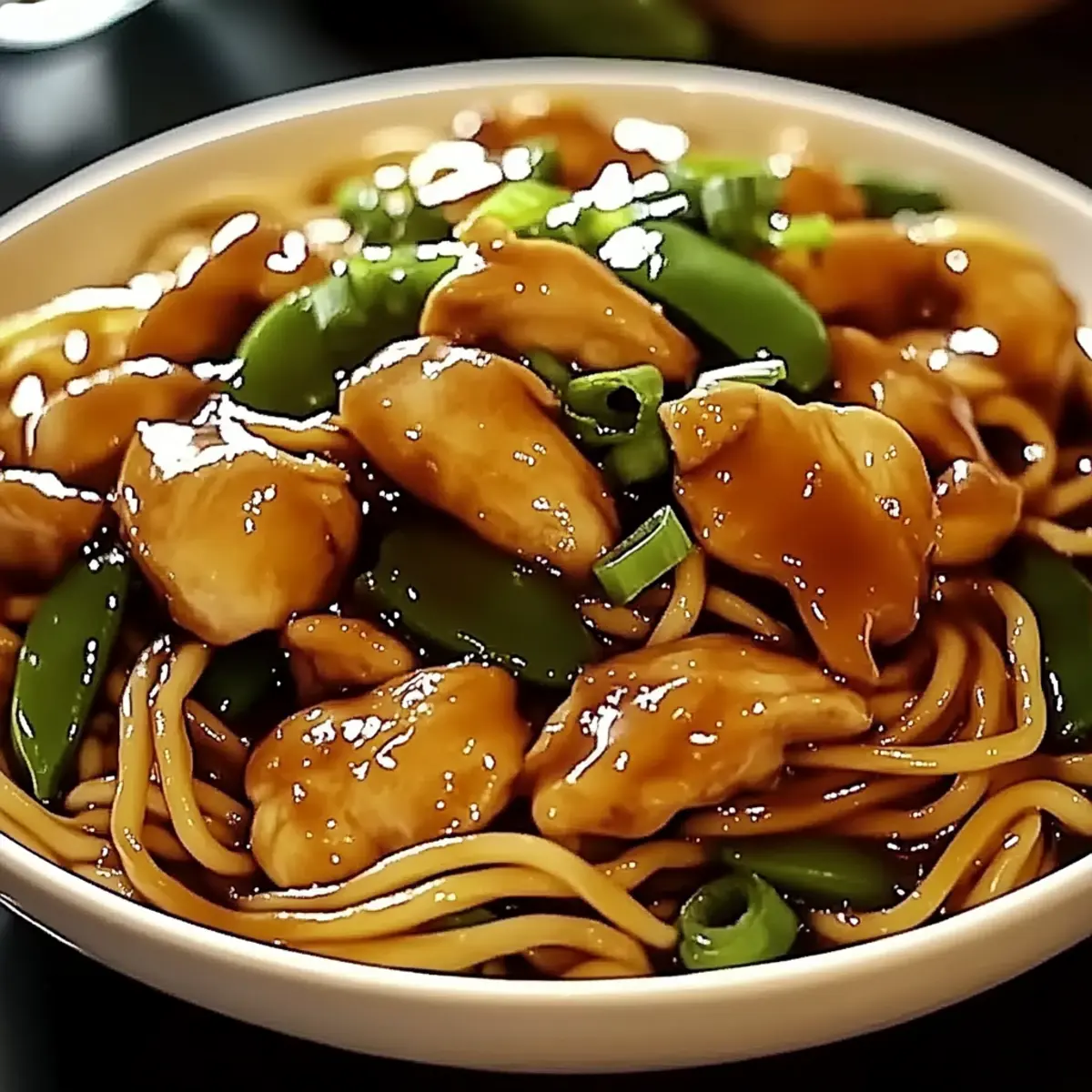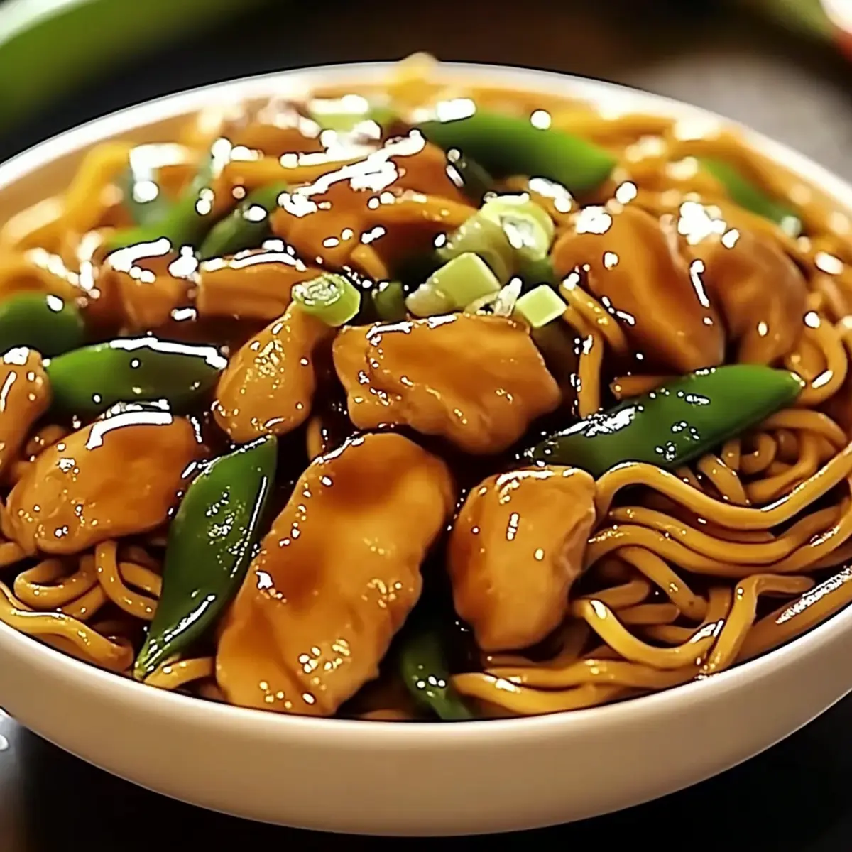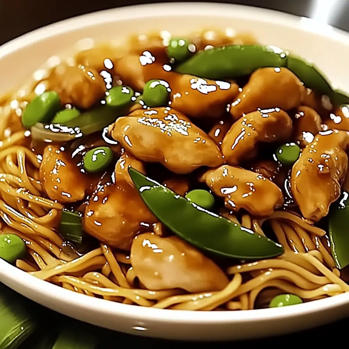 Jump to Recipe Print RecipeThe fragrant scent of garlic sizzling in a hot pan takes me back to bustling street markets in China, where every bite is an adventure. This Garlic Chicken Lo Mein has quickly become my go-to recipe for those hectic weeknights when I crave comfort but need something simple. Not only is it ready in under 30 minutes, but it’s also bursting with vibrant veggies and tender chicken, making it a satisfying meal that even my pickiest eaters adore. Plus, this dish is versatile—swap out the protein for shrimp, tofu, or beef, and it can easily accommodate gluten-free diets with just a simple soy sauce substitution. Are you ready to whip up a homemade takeout favorite that will impress your family? Let’s dive in! Why is Garlic Chicken Lo Mein a Must-Try? Quick, Delicious Meal: You can whip up this flavorful dish in under 30 minutes, making it perfect for busy weeknights. Versatile Options: Whether you prefer shrimp, tofu, or beef, you can easily customize your protein. Healthier Alternative: Skip greasy takeout and enjoy a home-cooked meal loaded with fresh veggies, packed with nutrition. Savory Aroma: The irresistible scent of garlic sizzling fills your kitchen, making it even more appetizing. Crowd-Pleaser: Even picky eaters can’t resist this dish’s delightful flavors and textures, ensuring everyone leaves the table happy. Pair it with Garlic Butter Shrimp for a delightful feast or complement it with an Asian cucumber salad for a refreshing side! Garlic Chicken Lo Mein Ingredients For the Chicken • Chicken Breast or Thighs – Choose boneless and skinless for quick cooking and easy preparation. • Soy Sauce – Adds depth; opt for gluten-free soy sauce if needed for dietary preferences. • Cornstarch – Tenderizes the chicken by marinating and creating a silky texture. • Sesame Oil – Infuses a nutty flavor; feel free to use any neutral oil if you prefer. For the Noodles • Lo Mein Noodles – The classic base for this dish; can substitute with spaghetti if unavailable. • Vegetable Oil – Use for sautéing; any high smoke point oil works here. For the Vegetables • Garlic – The star of the dish; freshly minced will provide the best flavor. • Bell Peppers, Carrots, Snap Peas – These colorful veggies add crunch and nutrition; swap with seasonal favorites if desired. • Green Onions – Great for garnish and a touch of flavor; chives can be a suitable replacement. • Fresh Ginger – Optional but adds warmth and spice to elevate your Garlic Chicken Lo Mein. For the Sauce • Soy Sauce – Provides umami depth; adjust according to your taste preferences. • Oyster Sauce – Enhances the savory profile; can be replaced with a vegetarian version if needed. • Hoisin Sauce – For sweetness and complexity in your sauce. • Brown Sugar – Balances the flavors; adjust according to your sweetness preference. • Chicken Broth/Water – Necessary for sauce consistency; use broth for added flavor. • Toasted Sesame Oil – Drizzle in for a nutty finish; a little goes a long way! Dive into your cooking adventure and let the flavors of this Garlic Chicken Lo Mein come together beautifully in your kitchen! Each ingredient plays a vital role in creating this delightful dish that exceeds typical takeout. Enjoy! Step‑by‑Step Instructions for Garlic Chicken Lo Mein Step 1: Marinate Chicken Begin by slicing your chicken breast or thighs into bite-sized pieces. In a bowl, combine the chicken with soy sauce, cornstarch, and sesame oil, ensuring it’s well-coated. Allow the chicken to marinate for 5–10 minutes at room temperature while you prepare the other ingredients, allowing the flavors to absorb and the cornstarch to tenderize the meat. Step 2: Cook Noodles Next, bring a large pot of salted water to a boil and cook the lo mein noodles according to the package instructions, usually about 4–6 minutes. Once cooked, drain and rinse them under cold water to stop the cooking process. Toss the noodles with a drizzle of sesame oil to prevent them from sticking together, setting them aside until ready to mix. Step 3: Prepare Sauce In a small bowl, whisk together the soy sauce, oyster sauce, hoisin sauce, brown sugar, and chicken broth or water. Make sure the brown sugar dissolves completely, creating a smooth sauce. Set this aside, as you’ll pour it over the chicken and vegetables later during the Garlic Chicken Lo Mein preparation. Step 4: Cook Chicken Heat a wok or large skillet over medium-high heat and add vegetable oil. Once the oil is shimmering, add the marinated chicken to the pan in a single layer. Sauté for about 5–7 minutes, stirring occasionally until the chicken is browned and cooked through, and then remove it from the pan and set it aside. Step 5: Sauté Aromatics Using the same pan, add an extra splash of oil if necessary. Toss in the minced garlic and ginger (if using), stirring constantly for 30 seconds or until fragrant and lightly golden. This step is crucial for bringing out the aromatic flavors that are the hallmark of a delightful Garlic Chicken Lo Mein. Step 6: Stir-fry Vegetables Now, add the sliced bell peppers, carrots, and snap peas to the pan. Stir-fry the vegetables for 3–4 minutes, ensuring they remain crisp-tender and vibrant in color. Keep everything moving in the pan to cook evenly and to maintain that wonderful crunch that complements the tender chicken and noodles. Step 7: Combine Return the cooked chicken to the pan with the sautéed vegetables, and pour in your prepared sauce. Bring everything to a gentle simmer for 1–2 minutes. The sauce should thicken slightly, coating all the ingredients beautifully, infusing your Garlic Chicken Lo Mein with a delightful savory flavor. Step 8: Mix with Noodles Finally, add the cooked lo mein noodles and sliced green onions into the pan. Toss everything gently using tongs or a spatula until mixed and heated through, about 2 minutes. You want the noodles to soak up the sa