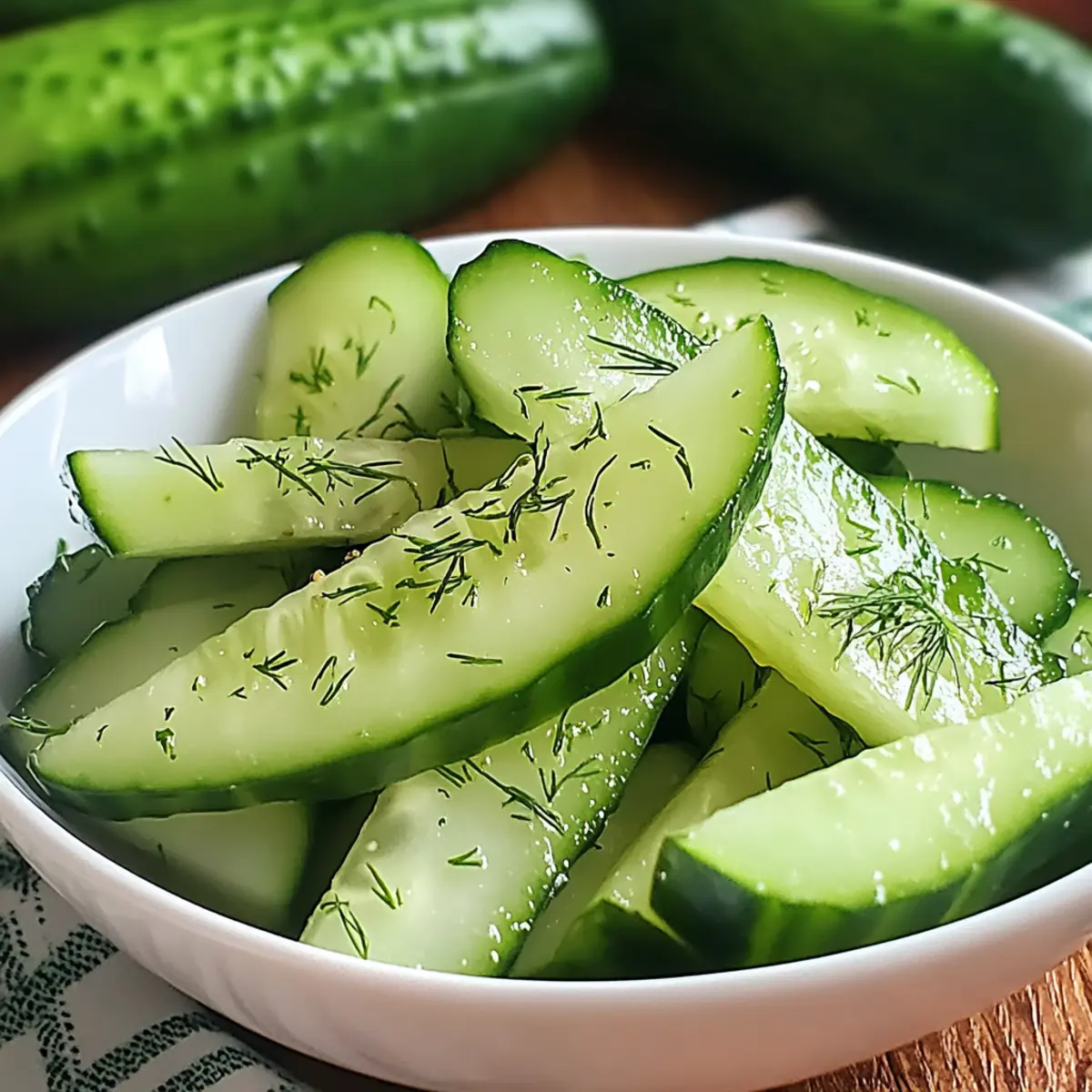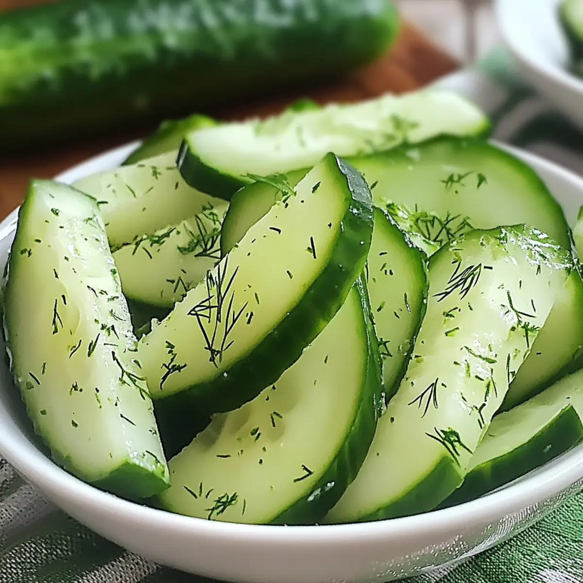 Jump to Recipe Print RecipeThere’s something incredibly satisfying about a dish that comes together in mere minutes, especially when it’s as vibrant and crunchy as these Garlic Dill Cucumbers. This quick side dish is not only refreshingly tangy but also perfectly complements any summer meal with its lightness and flavor. In just 10 minutes, you can whip up this naturally vegan and gluten-free salad, making it an easy choice for health-conscious eaters looking to escape the fast-food trap. The beauty of this recipe lies in its versatility—with options to make it creamy, spicy, or sweet and tangy, you can customize it to suit your cravings. Are you ready to elevate your next meal with this addictive addition? Let’s dive in! Why Are Garlic Dill Cucumbers So Irresistible? Quick Prep: With just 10 minutes of preparation, you can create a stunning side dish that elevates any meal. Naturally Vegan & Gluten-Free: These cucumbers fit perfectly into a variety of diets, making them a crowd favorite. Flavor Versatility: Whether you prefer them creamy, spicy, or sweet and tangy, there’s a flavor twist for everyone. Perfect for Summer: Their refreshing taste is ideal alongside barbecues or picnics, adding a delightful crunch to your plate. Easily Customizable: Experiment with different spices or herbs to match your personal style, just like with my Garlic Butter Shrimp or Garlic Butter Chicken! Garlic Dill Cucumbers Ingredients Get ready to make your taste buds dance with these delicious Garlic Dill Cucumbers! For the Salad • Cucumbers – Choose English or Persian cucumbers for their crunchiness and minimal peeling. • Vinegar – Opt for apple cider or white vinegar for that tangy flavor; lemon juice can be a zesty alternative. • Olive Oil – This adds richness and balances the acidity of the vinegar, enhancing flavors. • Garlic – Fresh garlic packs a punch; you can adjust the amount to match your taste preferences. • Salt – Enhances all the flavors; feel free to add a pinch of sugar if you prefer a subtle sweetness. • Fresh Dill – It brings an herbaceous freshness to the dish; dried dill works in a pinch, but fresh is best! Optional Add-Ons • Greek Yogurt or Sour Cream – For the creamy variation, mix just enough to add texture without overwhelming the taste. • Chili Flakes or Jalapeños – Spice things up with a bit of heat if you dare! • Red Onion or Shallots – Thinly sliced, they add a colorful crunch and new flavor dimension. • Sumac – This Middle Eastern spice adds an interesting twist; just a pinch brightens the dish beautifully. Now you have everything you need to create the perfect Garlic Dill Cucumbers—ready to bring fresh and vibrant flavors to your table! Step‑by‑Step Instructions for Garlic Dill Cucumbers Step 1: Slice Cucumbers Begin by washing and thinly slicing your cucumbers into rounds or half-moons, depending on your preference. Aim for slices about 1/4 inch thick for the perfect crunch. If you’re using standard cucumbers with thicker skins, feel free to peel them beforehand. Place the sliced cucumbers in a large mixing bowl, ready to soak up those delicious flavors. Step 2: Mix Dressing In a separate medium-sized bowl, whisk together 1/4 cup of vinegar and 2 tablespoons of olive oil until fully combined. Add in 2 minced garlic cloves, 1 teaspoon of salt, and a touch of optional sugar if you like a hint of sweetness. Toss in 2 tablespoons of freshly chopped dill and mix until all the ingredients meld together into a zesty dressing that perfectly complements the Garlic Dill Cucumbers. Step 3: Combine Pour the dressing over the sliced cucumbers in the large mixing bowl. Gently toss the cucumbers with the dressing using a spatula, ensuring each piece is well-coated. This step is crucial as it allows the cucumbers to absorb the flavors of the dressing. You want to see that bright green color glistening with the tangy mixture, signaling it’s time to let them sit and marinate. Step 4: Chill Cover the bowl with plastic wrap or transfer the cucumbers to an airtight container, and refrigerate for at least 15 minutes. If time allows, letting them chill for up to an hour or even overnight intensifies the flavor of your Garlic Dill Cucumbers. The wait is worth it as the cucumbers become infused with the savory dressing, ensuring a delightful crunch. Step 5: Serve To serve, use a slotted spoon to dish out the marinated Garlic Dill Cucumbers, leaving excess liquid behind in the bowl. This precaution ensures a nice texture that enhances the eating experience. Arrange them on a platter for a bright and vibrant side dish that’s perfect for summer meals. Enjoy the refreshing taste that comes with every crunchy bite! What to Serve with Quick and Flavorful Garlic Dill Cucumbers Elevate your meal with a perfect complement to the refreshing tang of these vibrant cucumbers, ideal for any occasion. Grilled Chicken: Juicy, charred chicken pairs beautifully with the bright cucumber flavors, creating a satisfying harmony on your plate. Quinoa Salad: Nutty quinoa adds a wholesome element. This hearty grain dish balances the crunchiness of the cucumbers wonderfully. Toasted Pita Chips: Their crispy texture and subtle saltiness are a fantastic contrast to the juicy cucumbers, making for a delightful snacking experience. Roasted Salmon: Rich and flaky salmon enhances the lightness of the salad. The contrast between the two dishes creates a gourmet feel without the fuss. Tzatziki Sauce: Creamy and refreshing, this yogurt-based sauce mirrors the flavors of the cucumbers while adding a delightful creaminess to each bite. Chilled White Wine: A crisp, aromatic white like Sauvignon Blanc complements the bright flavors and keeps your meal light and refreshing. As you think about dinner tonight, consider these pairings that will turn your meal into an unforgettable experience. How to Store and Freeze Garlic Dill Cucumbers Fridge: Keep Garlic Dill Cucumbers in an air