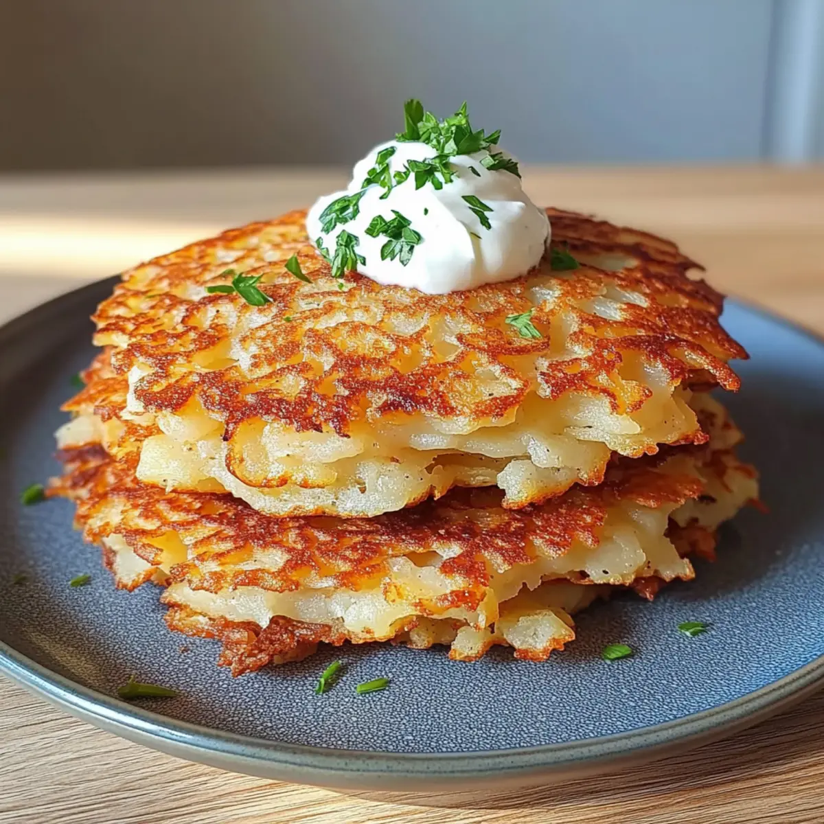 Jump to Recipe Print RecipeAmidst the bustling aromas of my kitchen, the sizzle of golden-brown German potato pancakes (Reibekuchen) pulls at my heartstrings, transporting me to cozy family gatherings. These delightful crispy bites are not only incredibly satisfying to make, but their versatility can transform any meal—be it a comforting brunch or an easy weeknight dinner. With just a handful of ingredients, you’ll discover the joy of whipping up these gem-like pancakes, whether you prefer them sweetened with a drizzle of apple sauce or savory with a dollop of sour cream. Trust me, their inviting texture and flavor will make them a beloved staple on your table. So, are you ready to dive into homemade comfort food bliss? Let’s get started! Why are German Potato Pancakes irresistible? Crispy perfection: These German potato pancakes, or Reibekuchen, provide an incredible crunch that keeps you coming back for more. Versatile offerings: Enjoy them sweet or savory, with options like apple sauce or sour cream that cater to every craving. Easy to master: With just a few simple ingredients and straightforward steps, you’ll feel like a pro in no time. Crowd-pleaser: Serve them at brunch or as a side dish, and watch them disappear at your gatherings! For more comforting ideas, try Kielbasa Potato Soup or Sausage Sweet Potatoes. German Potato Pancakes (Reibekuchen) Ingredients • These essential components will have you on your way to delicious, crispy potato pancakes! For the Batter Potatoes – Key ingredient that provides structure and flavor; use Russet or Yukon Gold for best results. Onion – Adds moisture and flavor; finely grated or chopped. Salt – Enhances flavor and brings out the best in the other ingredients. Pepper – Optional, for a kick in your savory variation. Flour – Provides binding; can be substituted with cornstarch for a gluten-free option. Egg – Binds ingredients together; feel free to replace with potato starch for a vegan version. For Frying Oil – Essential for frying; choose a high smoke point oil like vegetable or canola to achieve that perfect crisp! With just these ingredients for your German Potato Pancakes (Reibekuchen), you’re all set for a comforting culinary adventure! Step‑by‑Step Instructions for German Potato Pancakes (Reibekuchen) Step 1: Prep the Ingredients Begin by washing and peeling about 2–3 medium-sized Russet or Yukon Gold potatoes, along with one onion. Set up a large mixing bowl and a box grater. Grate the potatoes and onion into the bowl, ensuring to capture their moisture. This mixture is the heart of your German Potato Pancakes (Reibekuchen), so be ready for that comforting aroma! Step 2: Drain Excess Liquid Once grated, let the potato and onion mixture sit for about 5 minutes. Afterward, use a fine mesh sieve or cheesecloth to drain any excess liquid—this step is crucial for achieving that crispy texture! If you have a bit of potato starch left, don’t worry; it will help bind the pancakes. Step 3: Combine the Ingredients In the same mixing bowl, add a pinch of salt and pepper to taste, along with 1/4 cup of flour and 1 beaten egg. Using your hands, mix thoroughly. Ensure the ingredients blend well and form a cohesive batter; this mixture will be the base for your delicious Reibekuchen, ensuring they hold together while frying. Step 4: Heat the Oil In a heavy skillet or frying pan, pour in enough oil to cover the bottom generously, about 1/4 inch deep. Heat the oil over medium-high heat, bringing it to around 350°F (175°C). You can test the heat by dropping a small spoonful of batter into the pan; it should sizzle immediately, signaling it’s ready for your pancakes. Step 5: Fry the Pancakes Using two tablespoons, scoop out the batter and gently drop it into the hot oil, flattening it slightly for even cooking. Fry each pancake for about 3–4 minutes on one side, or until golden brown and crispy. Flip them carefully with a spatula, ensuring they maintain their shape and fry the other side to the same delicious golden hue. Step 6: Drain and Serve Once cooked, transfer the German Potato Pancakes (Reibekuchen) onto a plate lined with paper towels. This will absorb any excess oil and keep them crispy! Repeat the frying process with the remaining batter, adjusting the heat if necessary to avoid burning. Serve hot and enjoy with your favorite toppings! Storage Tips for German Potato Pancakes (Reibekuchen) Fridge: Store leftover German Potato Pancakes in an airtight container for up to 3 days; reheat in a skillet or oven to retain their crispiness. Freezer: For longer storage, freeze pancakes individually, layered between parchment paper, for up to 2 months; reheat from frozen using an air fryer or oven for best results. Room Temperature: If serving fresh pancakes, aim to consume them warm; they can sit at room temperature for about 1 hour if left uncovered. Reheating: For optimal taste and texture, reheat in a preheated oven at 375°F (190°C) for about 10-15 minutes, or until heated through and crispy again. What to Serve with Crispy German Potato Pancakes (Reibekuchen) The delightful crunch of these potato pancakes sets the foundation for a comforting and satisfying meal. Crispy Green Salad: A fresh salad with crisp greens and a tangy vinaigrette balances the rich, fried texture of the pancakes beautifully. Sour Cream Dip: Creamy, cool sour cream brings out the savory notes of the pancakes, enhancing every bite and making them irresistibly smooth. Apple Sauce: A traditional pairing, the sweetness of apple sauce complements the savory pancakes, adding a delightful contrast in flavor. Garlic Yogurt Sauce: This tangy sauce adds a flavorful punch that meshes perfectly with the comfort of the pancakes. Roasted Brussels Sprouts: Their nutty, caramelized flavor creates a wonderful depth, making for a more filling dish that’s also vibrant and nutritious. Savory Sausages: Juicy sausages alongside these pancakes create a hearty