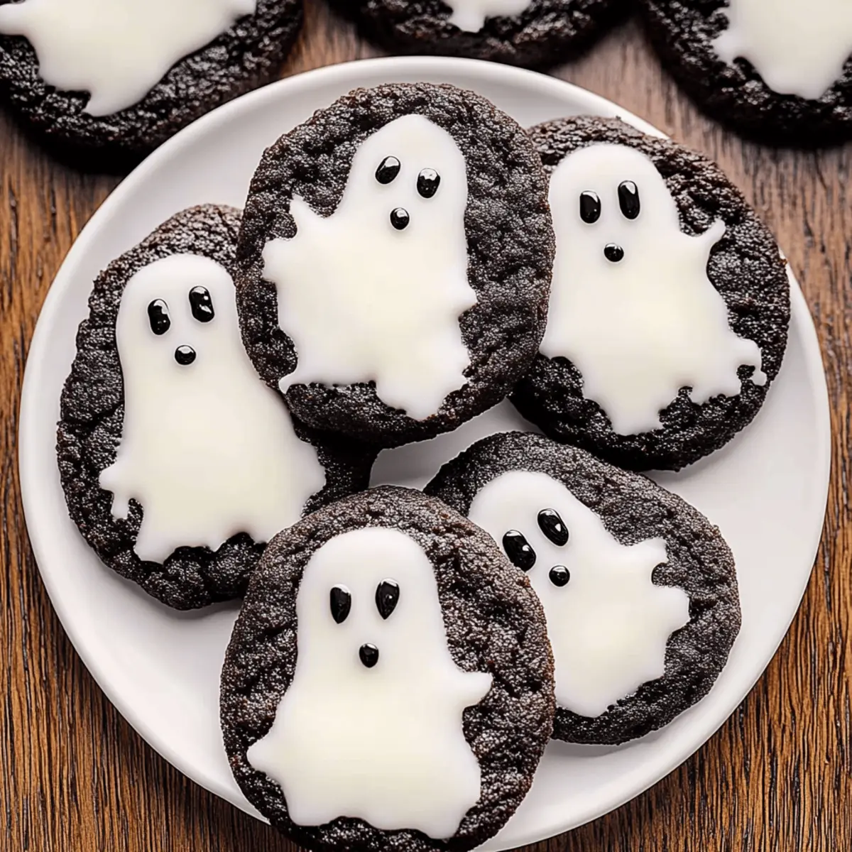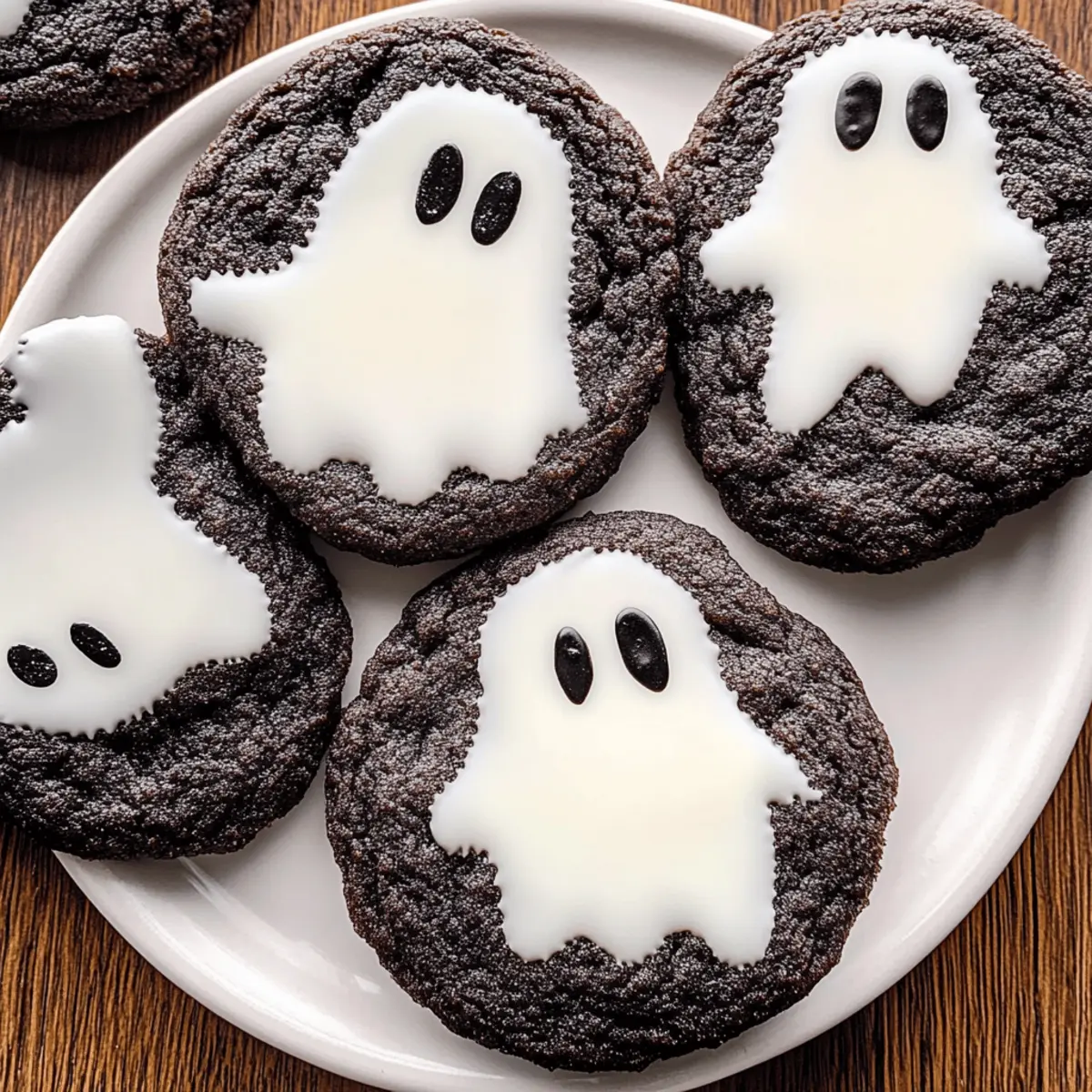 Jump to Recipe Print Recipe“Okay, which one of you is stealing the cookies?!” That was the playful banter echoing around my kitchen as I pulled out a tray of these enchanting Ghost Cookies, each one decorated with whimsical faces. With Halloween just around the corner, there’s no better way to celebrate than whipping up these adorable treats. The secret lies in their rich black cocoa base, which gives them a unique flavor that’s sure to impress even the most discerning chocolate lovers. Not only are these Halloween cookies a hit for any festive gathering, but they’re also delightfully easy to make—perfect for chefs of all skill levels. With a satisfying crunch from the sugar coating and a smooth white chocolate topping, they’re a luscious alternative to store-bought snacks. Are you ready to conjure up some spooky sweetness and share these ghostly delights with friends and family? Let’s bake! Why Are Ghost Cookies a Must-Try? Whimsical Shapes: These ghost cookies are not just tasty; their adorable ghostly figures make them perfect for Halloween celebrations. Irresistible Flavor: The rich black cocoa provides a deep chocolate taste, elevating them above your typical cookie to something truly special. Quick to Make: With no complex techniques involved, these cookies come together effortlessly—ideal for both novices and experienced bakers. Decorative Fun: You can unleash your creativity by adding unique faces with black writing gel, making baking a delightful experience for everyone. Ideal for Sharing: Perfect for parties or lunchboxes, they’ll surely steal the show. Pair them with a warm cup of hot cocoa for a comforting treat. If you’re looking for other fun baking ideas, consider making some Gingerbread Oatmeal Cookies or try a variation of flavors with Cotton Candy Cookies. Ghost Cookie Ingredients For the Cookie Base • All-Purpose Flour – Provides structure; ensure flour is spooned and leveled to prevent dryness. • Baking Powder – Acts as a leavening agent; do not substitute with baking soda without adjustments. • Baking Soda – Works with acidic cocoa to enhance rise; crucial for proper spreading and texture. • Salt – Enhances flavor; do not omit, as it balances the cookie’s sweetness. • Black Cocoa Powder – Adds deep chocolate flavor and color; Dutch-processed cocoa can be used for a slightly different taste. • Unsalted Butter (melted and cooled) – Adds moisture and richness; can substitute with dairy-free butter. • Brown Sugar – Contributes moisture and caramel flavor; light or dark brown sugar are both suitable. • White Granulated Sugar – Adds sweetness and crispness; consider cane sugar for a more natural option. • Pure Vanilla Extract – Enhances the overall flavor; imitation can be used but with less impact. • Large Eggs – Binds ingredients and provides moisture; room temperature eggs mix better. For the Decoration • White Chocolate Chips – Used for decorating the cookies; choose high-quality chocolate for the best results. • Heavy Cream – For making ganache; can be replaced with coconut cream for a dairy-free option. • Black Writing Gel – Utilized for creating ghost faces; be sure to choose a food-safe version. • White Food Dye – Optional; brightens the appearance of the ghosts if desired, but not necessary for flavor. These ghost cookies are not just visually enticing; they pack a delicious punch that will surely please any crowd this Halloween! Step‑by‑Step Instructions for Ghost Cookies Step 1: Prepare Dry Ingredients Begin by sifting together 2 cups of all-purpose flour, ¾ cup of black cocoa powder, 1 teaspoon of baking powder, ½ teaspoon of baking soda, and ½ teaspoon of salt in a mixing bowl. This step is crucial as it aerates the flour and ensures an even blend of dry ingredients, which will form the rich base of your ghost cookies. Set this mixture aside for later use. Step 2: Mix Wet Ingredients In a separate large bowl, combine ½ cup of melted and cooled unsalted butter, ½ cup of brown sugar, and ½ cup of white sugar using a hand mixer on high speed for about 2 minutes, until the mixture is creamy and well combined. The blending process helps to dissolve the sugars and introduces air, which will add to the final texture of the cookies. Step 3: Add Eggs and Vanilla Next, crack in one large egg and one egg yolk into the butter-sugar mixture, along with 1 teaspoon of pure vanilla extract. Mix on low speed until just combined—this should take about 30 seconds. This addition adds moisture and richness, creating an irresistible flavor profile for your ghost cookies. Step 4: Combine Ingredients Gradually add the dry mixture to the wet ingredients, mixing on low speed until incorporated, which should take about 1 minute. Be careful not to overmix; the dough should be slightly sticky yet hold together well. This step is key to achieving the perfect texture that keeps your cookies soft in the center and crisp on the edges. Step 5: Preheat Oven While your dough rests, preheat the oven to 350°F (175°C) to ensure it’s ready for baking. Line your cookie sheets with parchment paper to prevent sticking and create a uniform baking surface for your ghost cookies. Proper temperature is vital for achieving that delightful, slightly chewy texture. Step 6: Scoop and Roll Dough Using a cookie scoop, portion out the dough, rolling each piece into a ball and then rolling it in sugar for added crunch. Place the dough balls on the prepared cookie sheets, spacing them about 2 inches apart to allow for spreading during baking. This fun step helps create the delightful appearance of your ghost cookies. Step 7: Bake Bake the cookies in the preheated oven for 8-10 minutes, until the edges are set but the centers are still soft. As they bake, your kitchen will fill with a sweet, chocolatey aroma, signaling that your ghost cookies are nearly ready. Allow them to cool on the baking sheet for 5 minutes before tr