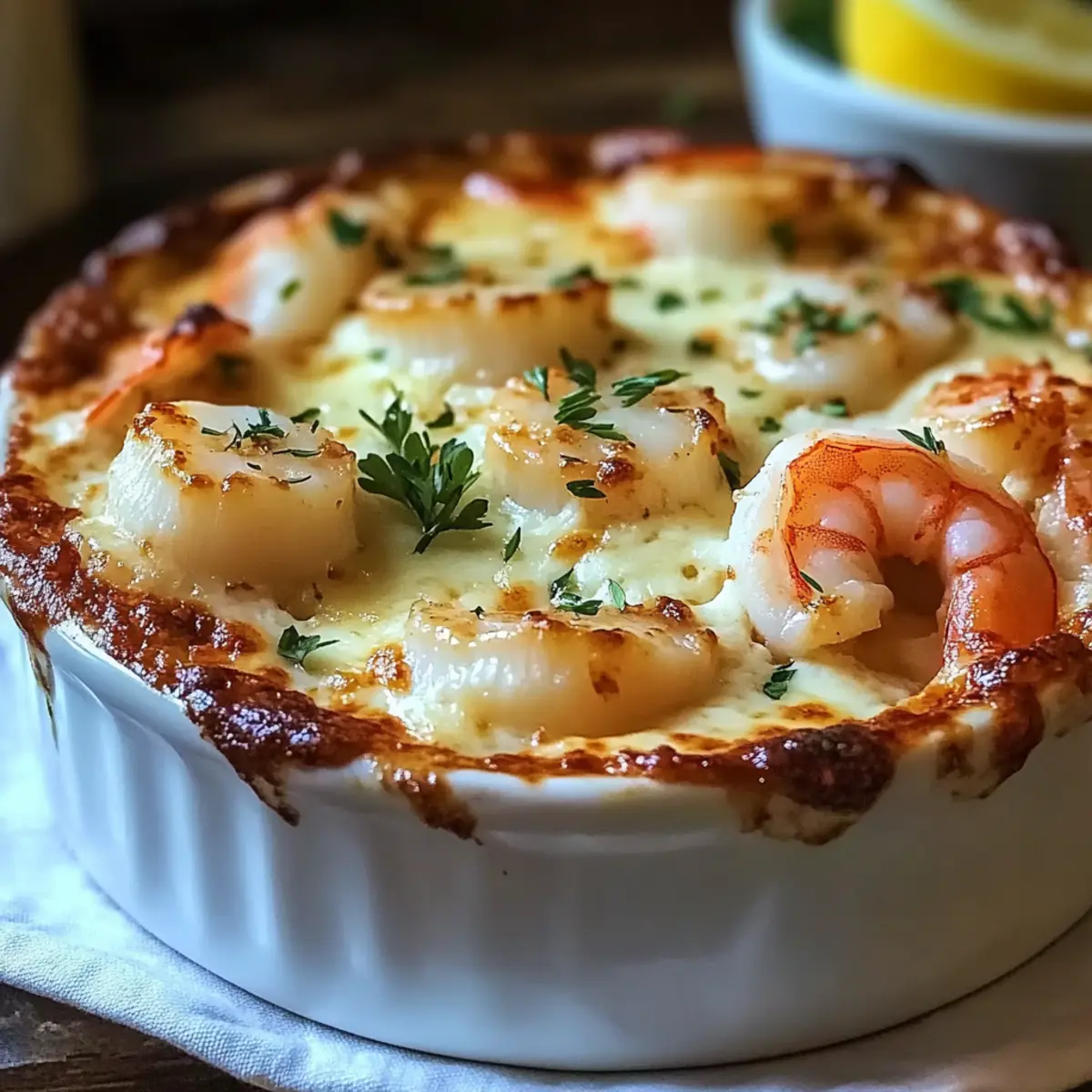 Jump to Recipe Print RecipeAs I stirred together the velvety cream and succulent seafood, aromas twirled around the kitchen like a warm embrace. This Gourmet Seafood Cassolette is not just a dish; it’s an enchanting experience that transforms ordinary nights into extraordinary culinary adventures. With the flexibility to customize your seafood selection, this recipe caters to your cravings, whether you’re in the mood for sweet shrimp or buttery scallops. Plus, its creamy warmth and golden, cheesy crust make it the ultimate comfort food, perfect for cozy gatherings or a simple weeknight treat. Imagine serving this up to your loved ones, each bite a delightful reminder that homemade doesn’t have to mean complicated. Are you ready to dive into a seafood indulgence that feels like a luxurious getaway right in your home? Why is this seafood recipe a must-try? Deliciously Versatile: Customize your cassolette with any seafood you crave! From sweet shrimp to rich crab, the options are endless. Comforting Elegance: With its creamy sauce and golden crust, this dish brings an air of indulgence while providing the warmth of comfort food. Quick and Easy: Simple steps and minimal prep time make this gourmet feast accessible for weeknight dinners or special occasions. Crowd-Pleasing Appeal: The delightful flavors and creamy textures will impress family and friends, ensuring everyone leaves with full hearts and bellies. Perfect Pairings: Serve with a crisp salad or crusty bread to balance the richness—even a glass of chilled Chardonnay makes it even more special! Gourmet Seafood Cassolette Ingredients For the Seafood Shrimp – Adds a sweet, tender protein choice; fresh seafood is recommended, but frozen can be used if thawed properly. Scallops – Provide a delicate, melt-in-your-mouth texture to enhance the luxuriousness of the dish. White Fish (e.g., cod or tilapia) – Acts as a mild base to balance out stronger seafood flavors; choose your favorite for a personal touch. For the Creamy Sauce Heavy Cream – The key ingredient for achieving that rich and velvety sauce consistency that makes the cassolette irresistible. White Wine – Offers acidity that balances the richness of the cream; can swap with vegetable broth for a non-alcoholic version. For the Cheesy Crust Parmesan Cheese – Contributes sharpness and flavor; substitute with pecorino for a tangy twist. Gruyère Cheese – Adds nuttiness to the crust and depth of flavor; it’s a delightful choice! For Flavor Enhancements Garlic – Infuses aromatic flavor into the sauce, essential for seafood dishes. Fresh Herbs (parsley or dill) – Provides brightness; optional but highly recommended for garnish. Lemon Zest – Enhances freshness and balances richness; can be omitted for a subtler flavor. For Texture Breadcrumbs (optional) – Adds texture to the crust; use gluten-free panko if necessary for those dietary preferences. Each of these Gourmet Seafood Cassolette ingredients comes together to create a comforting wave of flavors that’ll have everyone clamoring for seconds! Step‑by‑Step Instructions for Gourmet Seafood Cassolette Step 1: Preheat the Oven Begin by preheating your oven to 375°F (190°C) to create the perfect environment for that golden crust on your Gourmet Seafood Cassolette. This temperature ensures even baking, allowing the top to bubble beautifully while the seafood remains tender and juicy. Step 2: Sauté the Seafood In a large skillet, melt two tablespoons of butter over medium heat. Add the shrimp, scallops, and chunks of white fish, sautéing for 3-4 minutes until they’re just cooked through and opaque. Be careful not to overcook; they’ll finish in the oven! Remove the seafood from the skillet and set aside. Step 3: Infuse the Garlic In the same skillet, add another tablespoon of butter and heat it over medium-low. Toss in minced garlic and sauté for about 1 minute, just until fragrant and golden. This aromatic base will enhance the flavor profile of your creamy sauce, setting the stage for the Gourmet Seafood Cassolette. Step 4: Prepare the Creamy Sauce Pour in ½ cup of white wine and allow it to reduce by half over medium heat, which should take about 2-3 minutes. Next, stir in 1 cup of heavy cream, letting it simmer for 5-7 minutes until it slightly thickens. You want a luscious, velvety consistency that will coat your seafood perfectly. Step 5: Combine the Cheeses Gradually stir in ½ cup of Parmesan and ½ cup of Gruyère cheese into the simmering cream. Continue mixing until the cheeses have melted and fully incorporated into the sauce. This cheesy blend adds a rich flavor that elevates your Gourmet Seafood Cassolette, making every bite irresistible. Step 6: Assemble the Cassolette In your ramekins or a baking dish, layer the sautéed seafood evenly at the bottom. Pour the creamy sauce over the seafood, ensuring every piece is lovingly coated in that cheesy goodness. This step will bring together all the flavors for a delightful experience. Step 7: Add the Final Touches Sprinkle with additional grated Parmesan and Gruyère, and if you like a crispy top, add breadcrumbs for extra texture. This final layer will create a beautiful golden crust, enhancing the visual appeal and crunch of your Gourmet Seafood Cassolette. Step 8: Bake to Perfection Carefully place the assembled dish in the preheated oven and bake for 15-20 minutes. You’ll know it’s done when the top is golden brown and bubbly, a sure sign your cassolette is ready to impress everyone at the table. Step 9: Garnish and Serve Once out of the oven, let your dish rest for a few minutes. Garnish with freshly chopped herbs and a sprinkle of lemon zest to brighten the flavors. Serve immediately, allowing the creamy, delicious filling of your Gourmet Seafood Cassolette to truly shine at your dining table. How to Store and Freeze Gourmet Seafood Cassolette Fridge: After cooling, store your Gourmet Seafood Cassolette in an airtight container. 