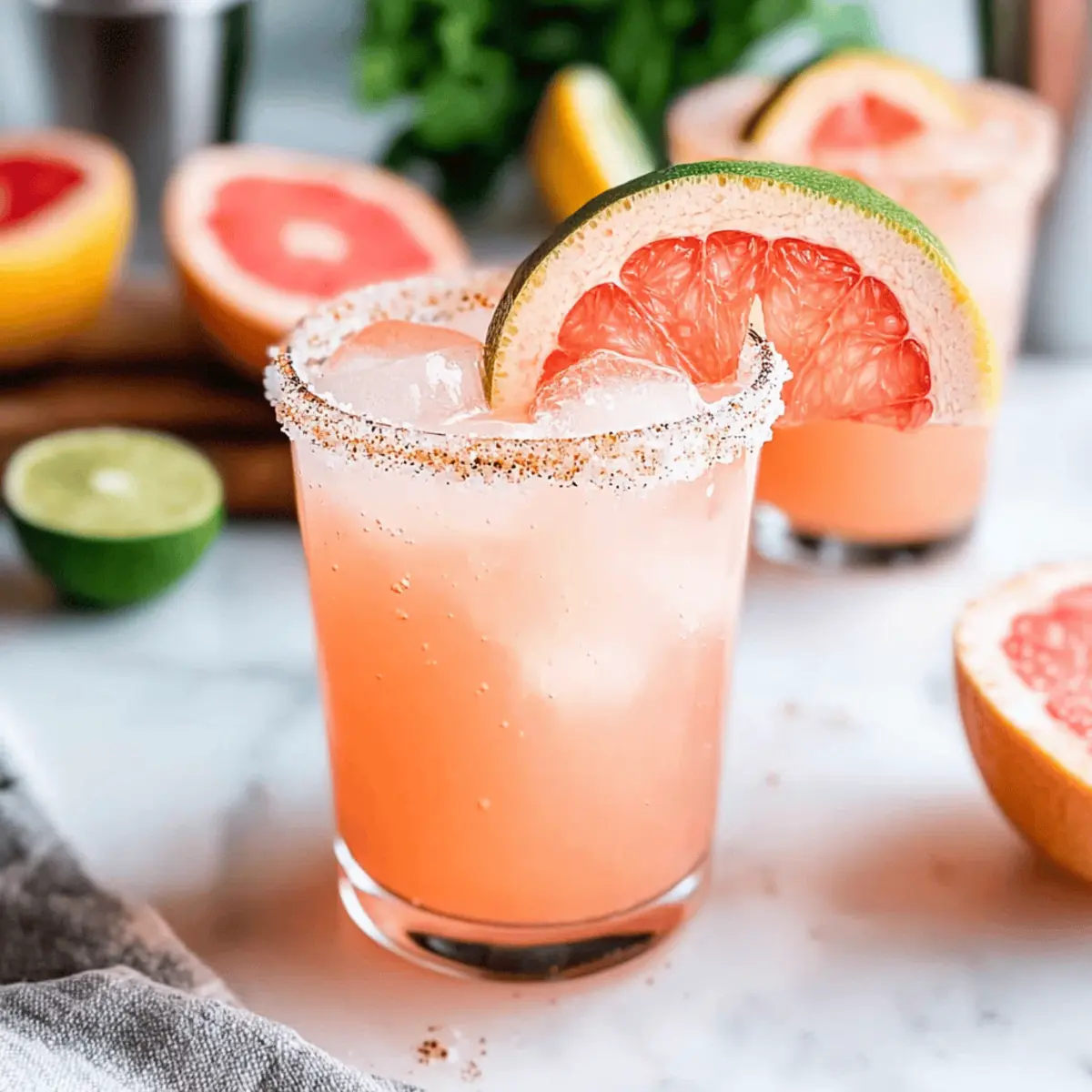 Jump to Recipe Print RecipeAs I settled into my patio chair on a sun-soaked afternoon, the idea of a refreshing cocktail caught my attention. Enter the Grapefruit Paloma: a delightful summer cocktail that brings together the tangy essence of grapefruit and the zesty bite of lime in perfect harmony. This easy recipe elevates your routine drink with the effervescence of seltzer and the smooth qualities of tequila. Not only is it incredibly quick to whip up—making it an ideal choice for impromptu gatherings—but it also adds a touch of sophistication to any occasion. The vibrant colors in your glass promise a sip of summer’s bliss, whether you’re lounging by the pool or sharing laughs with friends. Ready to learn how to create this invigorating Grapefruit Paloma and impress your guests? Let’s dive in! Why is the Grapefruit Paloma a Must-Try? Refreshing, this cocktail embodies summer itself—a perfect way to cool off on hot days. Zesty flavors of grapefruit and lime come together with tequila for a delightful experience. Easy to make, just combine, stir, and pour! Serve it up at parties and watch your guests enjoy this vibrant drink. Endless possibilities await with variations—a hint of mint or even flavored syrups. Chic presentation makes it a beautiful choice for any gathering, offering a significant upgrade from mundane beverages! Grapefruit Paloma Ingredients For the Cocktail White Tequila – The foundation of your Grapefruit Paloma; choose a quality brand for the best results. Grapefruit Juice – Fresh-squeezed preferred; it brings tartness and a burst of flavor to your drink. Lime Juice – Adds a zesty kick to balance the sweetness; use fresh, if possible, for maximum impact. Simple Syrup – Adjust to your sweetness preference; it complements the tartness beautifully. Seltzer Water – Gives the cocktail its refreshing fizz; can be swapped with grapefruit soda for added flavor. For the Rim Tajín Chile Lime Seasoning – Sprinkle for an extra flavor boost; a fantastic way to enhance your Grapefruit Paloma. Step‑by‑Step Instructions for Grapefruit Paloma Step 1: Mix the Base In a large pitcher, pour in freshly squeezed grapefruit juice, lime juice, and white tequila. Add the simple syrup, adjusting to taste for sweetness. Using a long spoon, stir well for about 30 seconds until all ingredients are thoroughly combined and the mix appears vibrant and uniform. Set the pitcher aside to let the flavors meld while you prepare the glasses. Step 2: Chill the Mixture Add ice to the pitcher filled with your Grapefruit Paloma mixture. Fill it with ice to the brim, which will chill and dilute the cocktail slightly, making it refreshing. Allow it to sit for about 5 minutes, ensuring it’s nice and cool before serving to give your guests the ultimate refreshing experience. Step 3: Prepare the Glasses While the cocktail mixture chills, take your serving glasses and rub the rim of each one with a lime wedge. Dip the wet rim into a plate of Tajín Chile Lime seasoning or kosher salt, covering the edge evenly. This adds an enticing flavor that enhances the overall drinking experience of your Grapefruit Paloma. Step 4: Combine with Seltzer After chilling, pour about 1/4 cup of seltzer water into each prepared glass. Then, gently ladle the grapefruit tequila mixture on top, filling the glasses to the desired level. The seltzer will add refreshing bubbles, causing a lovely fizz—making your Grapefruit Paloma not only tasty but visually appealing. Step 5: Serve and Savor Finally, give each glass a gentle stir to combine the layers of flavor without losing the fizz. Garnish with an extra lime wedge or a slice of grapefruit on the rim for an attractive touch. Serve immediately and enjoy the invigorating taste of your homemade Grapefruit Paloma, perfect for impressing friends on a sunny day! What to Serve with Refreshing Grapefruit Paloma Cocktail Pair your delightful cocktail with delicious bites that add to the summer vibe, enhancing your experience on a warm day. Chips and Salsa: Crisp tortilla chips paired with zesty tomato salsa awaken the taste buds, providing a fresh and crunchy snack. Ceviche Tacos: Light and citrusy, fish ceviche tacos mirror the sharpness of the Grapefruit Paloma, creating a refreshing duo. Guacamole: Creamy and rich, guacamole balances the cocktail’s tartness. Pair it with tortilla chips for a deliciously addictive treat. Fruit Skewers: A colorful assortment of seasonal fruits complements the cocktail’s flavors, offering a refreshing burst of sweetness and a beautiful presentation. Grilled Shrimp Skewers: Lightly seasoned skewers add a savory element, echoing the cocktail’s vibrant spirit—perfect for a backyard gathering. Sparkling Water: For a non-alcoholic option, bubbly water with a slice of lime enhances the refreshment factor while keeping the summer theme alive. Lime Sorbet: For dessert, this icy treat can cleanse the palate, elevating your meal while staying within the citrusy theme. Coconut Lime Rice: A side of subtly sweet, creamy coconut rice complements the crispness of your drink, creating a delicious culinary pairing. Grapefruit Paloma Customizations Feel free to explore these delightful variations to make your Grapefruit Paloma uniquely yours! Lemon Twist: Substitute lime juice with lemon juice for a bright, citrusy flavor that gives your cocktail an exciting new zing. Minty Fresh: Add a few fresh mint leaves when mixing the cocktail for a refreshing herbal note that pairs beautifully with grapefruit. Flavored Simple Syrup: Use flavored simple syrups, like lavender or rosemary, to bring an unexpected depth of flavor to this delightful drink. A hint of herbaceous sweetness is a wonderful surprise! Spicy Kick: For some heat, include a splash of jalapeño-infused tequila or muddle jalapeño slices in the mixture before shaking. This twist can elevate your Paloma to a whole new level. Fruity Medley: Combine grapefruit juice with other citrus ju