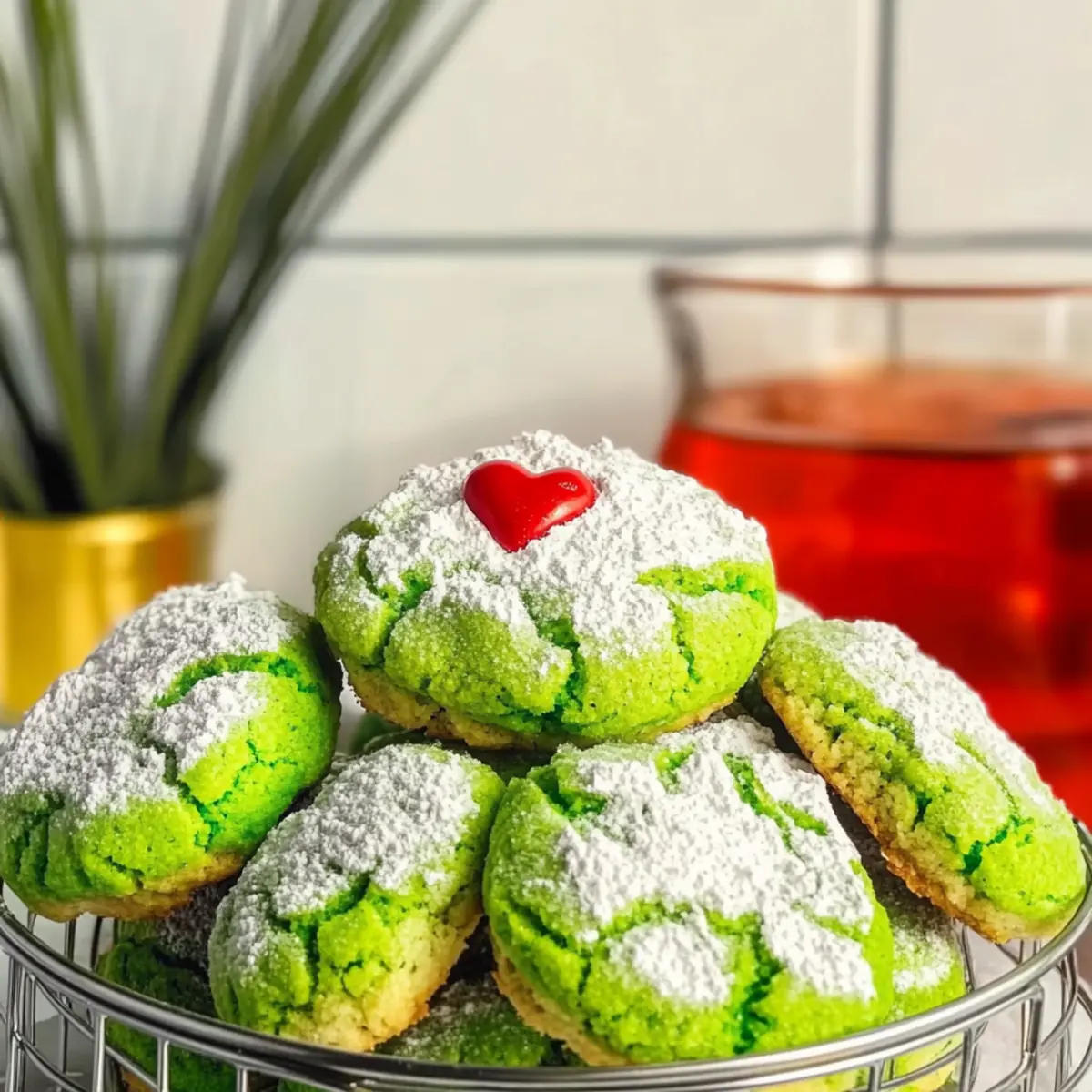 These Grinch Crinkle Cookies are a festive treat with a vibrant color and delightful lime flavor.