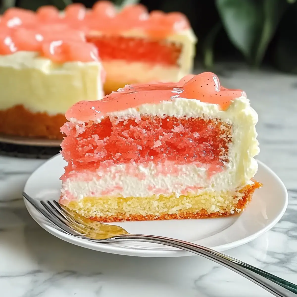 Jump to Recipe Print RecipeThere’s something magical about biting into a dessert that transports you straight to sun-soaked beaches, and this Hawaiian Guava Cake does just that! With its vibrant tropical flavors and airy layers, this recipe is not just a treat but an experience, perfect for family gatherings or those cozy weeknight dinners when you crave a hint of paradise. What makes this cake even more irresistible is its quick prep time and the option to go gluten-free, catering to all dietary needs without losing its delightful essence. Are you ready to whip up this tropical delight and impress everyone with your kitchen magic? Why is Hawaiian Guava Cake a Must-try? Tropical Escape: This cake is a true taste of paradise with its sweet guava and rich coconut flavors. Effortless Preparation: With simple ingredients and quick steps, it’s perfect for both seasoned chefs and kitchen novices alike. Crowd Pleaser: Ideal for any occasion, this cake is sure to be a hit at gatherings or as a delightful family dessert. Versatile Variations: Feel free to swap in your favorite fruits or choose gluten-free options to cater to everyone’s taste buds. Gorgeous Presentation: The glossy guava glaze and whipped cream topping create an eye-catching dessert that’s as delicious as it is beautiful. If you love tropical treats, don’t forget to check out our Peanut Butter Cheesecake or the unique Jiggly Japanese Cheesecake for more delectable options! Hawaiian Guava Cake Ingredients • Create a sensational dessert with this tropical delight! For the Cake • Strawberry Cake Mix – A convenient base for your cake; opt for a gluten-free mix if needed. • Guava Nectar or Guava Juice – Infuses moisture and the essence of the tropics; you can substitute with other fruit juices, but sweeten to taste. • Eggs – Essential for structure and moisture; for an egg-free option, use ¼ cup unsweetened applesauce or a flax egg. • Coconut Oil – Adds rich tropical flavor; feel free to swap this with any neutral oil. For the Cream Cheese Layer • Cream Cheese – Brings luscious creaminess; for a dairy-free version, use dairy-free cream cheese. • Granulated Sugar – Sweetens the cream cheese mixture; reduce for a lighter touch. • Vanilla Extract – Enhances overall flavor; can be omitted for a simpler cake. • Cool Whip – Adds lightness to the layer; replace with whipped coconut cream if you prefer a dairy-free option. For the Guava Gel • Cornstarch – Thickens the guava gel; this ingredient is essential for the right texture. • Water – Used to create the cornstarch slurry; no substitutions necessary. • Sweetened Coconut Flakes – Optional but enhances texture and provides beautiful garnish! With this delightful collection of ingredients, you’re one step closer to creating a memorable Hawaiian Guava Cake that will surely brighten anyone’s day! Step‑by‑Step Instructions for Hawaiian Guava Cake Step 1: Preheat and Prepare Preheat your oven to 350°F (175°C) and grab a 13×9 baking dish. Lightly coat it with vegetable spray to ensure your Hawaiian Guava Cake releases easily after baking. Keep an eye on the clock as you prepare the batter, allowing ample time for the oven to heat up to the perfect temperature. Step 2: Mix the Batter In a large mixing bowl, combine the strawberry cake mix, guava juice, eggs, and melted coconut oil. Using an electric mixer, beat the mixture on medium speed for about 2 minutes until it’s well blended and smooth. The batter should be thick and slightly glossy, showing that you’ve mixed everything adequately together. Step 3: Bake the Cake Pour the cake batter into your prepared baking dish, spreading it out evenly with a spatula. Place it in the preheated oven and bake for 24-26 minutes. To check for doneness, insert a toothpick into the center; it should come out clean or with a few moist crumbs, indicating that the cake is perfectly baked. Step 4: Cool the Cake Once baked, carefully remove the cake from the oven and set it on a wire rack to cool completely. This step is crucial as it prevents the cream cheese layer from melting when applied. Give it about 30-40 minutes to cool down to room temperature before moving on to the next step. Step 5: Prepare the Cream Cheese Layer In a medium bowl, beat the cream cheese until it becomes fluffy and smooth. Gradually mix in the granulated sugar and vanilla extract, ensuring everything is well combined. Fold in the Cool Whip gently until the mixture is light and airy, then cover and refrigerate it while the cake continues to cool. Step 6: Spread the Cream Cheese Mixture Once the cake is completely cool, take the cream cheese mixture from the refrigerator. Using a spatula, spread the cream cheese layer evenly over the cake. This delightful layer adds richness to the Hawaiian Guava Cake. After spreading, return the cake to the fridge to chill for at least 30 minutes, allowing the flavors to meld. Step 7: Make the Guava Gel In a small saucepan, combine guava juice with sugar and bring to a gentle boil over medium heat. In a separate bowl, whisk together cornstarch and water to create a slurry. Slowly pour the slurry into the boiling guava mixture, whisking continuously until it thickens into a gel-like consistency, about 2-3 minutes. Remove from heat and let cool. Step 8: Glaze the Cake Once the guava gel has cooled to room temperature, pour it over the chilled cream cheese layer on your Hawaiian Guava Cake. Using a spatula, spread it evenly for a beautiful glaze that adds sweetness and shine. Make sure the glaze covers the entire top for an inviting presentation, then return the cake to the refrigerator. Step 9: Garnish and Serve Before serving, sprinkle sweetened coconut flakes over the top for an extra touch of flavor and texture. Slice the cake into squares and plate it up. Enjoy the tropical delight of the Hawaiian Guava Cake, perfect for sharing at gatherings or enjoying as a sweet treat on any day! Ho