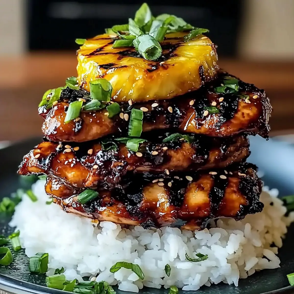 Dive into a delightful Hawaiian Huli Huli Chicken Stack and let the flavors whisk you away!