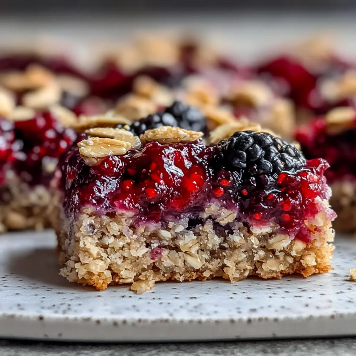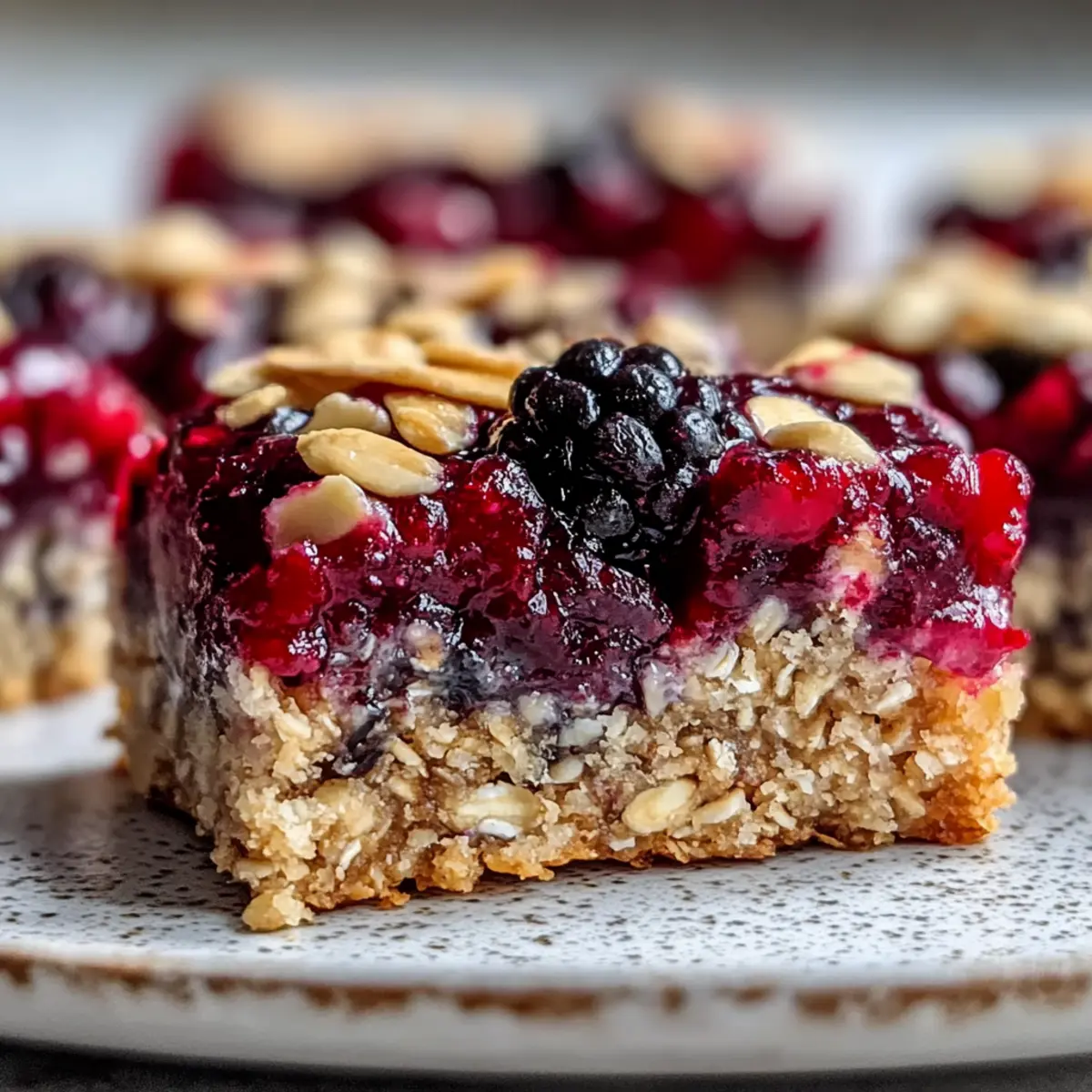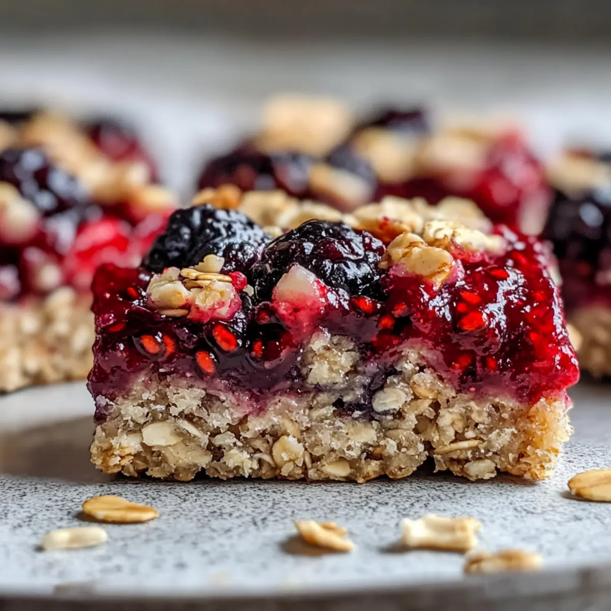 Jump to Recipe Print RecipeThe delightful aroma of baked oats mingles with the sweet tang of berries, whisking me away to sun-kissed mornings filled with possibility. These Healthy Breakfast Bars are the perfect solution for those rushed mornings when you crave something nutritious yet delicious. Packed with fiber, protein, and healthy fats, they offer a satisfying balance that will keep you full and energized throughout your day. What I love most about this easy-to-make recipe is its versatility; you can easily customize it to fit your dietary needs—whether that’s nut-free, vegan, or simply throwing in your favorite fruits. Plus, they’re great for on-the-go snacking or a simple breakfast you can prep in advance. Curious to discover how simple it is to whip up a batch of these wholesome bars? Let’s dive into the recipe! Why Choose Healthy Breakfast Bars? Convenience at Its Best: Whip these up in under 30 minutes for a quick breakfast solution. Nutritious and Wholesome: Packed with fiber, protein, and healthy fats, these bars will fuel your morning. Customizable Delight: Tailor your bars with various nuts, seeds, or fruits, making them perfect for any palate—whether you prefer Healthy Sesame Chicken or need a nut-free option. Crowd-Pleasing Snack: Perfect for the whole family, they make a great snack for kids and adults alike, keeping everyone satisfied! Meal Prep Friendly: Easily store these in an airtight container for a week or grab for a quick snack, just like my Healthy Oven Baked recipe. Healthy Breakfast Bars Ingredients For the Base • Rolled Oats – These provide a hearty base, rich in fiber; opt for gluten-free oats if needed. • Chopped Almonds – They add crunch and healthy fats; walnuts or pecans can make a great substitute. • Sunflower Seeds – Packed with protein and texture; use sunflower seed butter for a nut-free option. • Honey – A natural sweetener that helps bind the ingredients; substitute with agave nectar for vegan bars. • Coconut Oil (melted) – Contributes moisture and richness; any neutral oil can work as a replacement. • Vanilla Extract – Enhances the overall flavor; go for pure vanilla for the best taste. • Salt – Balances and enhances sweetness, making flavors pop. For the Berry Topping • Mixed Berries – Provides natural sweetness and flavor; fresh or frozen works interchangeably. • Chia Seeds – Acts as a thickener for the topping and adds a healthy dose of omega-3s. • Maple Syrup – Sweetens the berry mixture; optional if using sweet berries. These Healthy Breakfast Bars are a delightful way to start your day and can be customized to fit your preference! Step‑by‑Step Instructions for Healthy Breakfast Bars Step 1: Preheat the Oven Begin by preheating your oven to 350°F (175°C). While it heats up, line an 8×8 inch baking pan with parchment paper, letting the edges overhang slightly for easy removal later. This ensures your Healthy Breakfast Bars will come out smoothly after baking, and the parchment prevents sticking. Step 2: Mix the Base Ingredients In a large mixing bowl, combine 2 cups of rolled oats, 1 cup of chopped almonds, and 1/2 cup of sunflower seeds. Drizzle in 1/2 cup of honey, 1/4 cup of melted coconut oil, and 1 teaspoon of vanilla extract. Sprinkle in a pinch of salt, and mix everything together until the dry ingredients are well coated and fully combined, achieving a sticky mixture. Step 3: Press the Mixture into the Pan Transfer the oat mixture into the prepared baking pan. Using a spatula or your hands, press the mixture firmly into an even layer, ensuring it reaches all corners and is tightly packed. This step is crucial for achieving solid Healthy Breakfast Bars that don’t crumble. Step 4: Bake the Base Place the baking pan in the preheated oven and bake for 15-20 minutes. Keep an eye on the bars—they are done when they turn golden brown and smell deliciously toasty. Remove them from the oven and let them cool in the pan for about 10 minutes. Step 5: Prepare the Berry Topping While the base is cooling, prepare the berry topping. In a saucepan, combine 1 1/2 cups of mixed berries, 2 tablespoons of chia seeds, and optionally, 1 tablespoon of maple syrup. Heat the mixture over medium heat for about 5-7 minutes, stirring occasionally until it thickens to a jam-like consistency. Step 6: Spread the Topping Once the base has cooled slightly, carefully spread the berry mixture evenly over the top, covering it completely. The warm topping will meld beautifully with the oat base as it continues to cool, enhancing the flavors of your Healthy Breakfast Bars. Step 7: Cool Completely Before Cutting Allow the assembled Healthy Breakfast Bars to cool completely in the pan at room temperature, about 30 minutes. This cooling period is essential to reduce crumbling when you cut them into squares. Once cool, lift the bars out using the parchment paper overhang and slice them into squares. Step 8: Store or Serve Store your Healthy Breakfast Bars in an airtight container at room temperature for up to 3 days, or refrigerate for a week for longer freshness. These delightful bars make a nutritious grab-and-go breakfast or snack, perfect for busy mornings! Make Ahead Options These Healthy Breakfast Bars are fantastic for meal prep, saving you time on busy mornings! You can prepare the base mixture and press it into the pan up to 24 hours in advance. Simply store it covered in the refrigerator to prevent drying out. Additionally, the berry topping can be made ahead and stored separately in an airtight container for up to 3 days. When you’re ready to enjoy your bars, bake the prepped base and allow it to cool before spreading the berry mix on top. This ensures your Healthy Breakfast Bars stay fresh and delicious, ready to fuel your day with minimal effort! What to Serve with Healthy Breakfast Bars Start your day on a delicious note by complementing these wholesome bars with delightful accompaniments that elevate