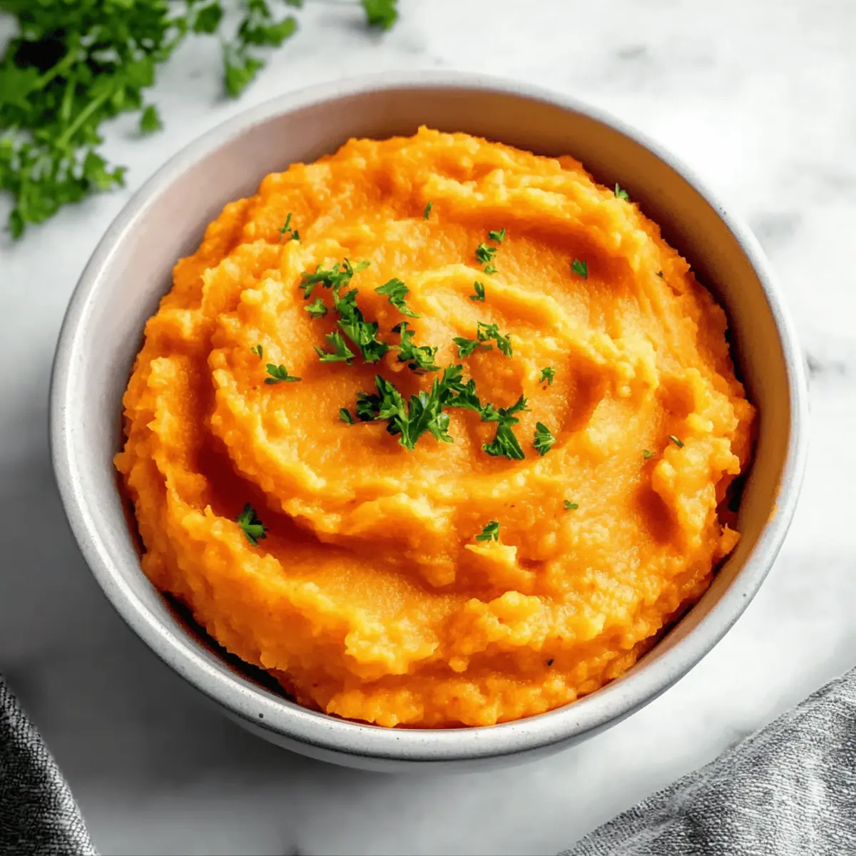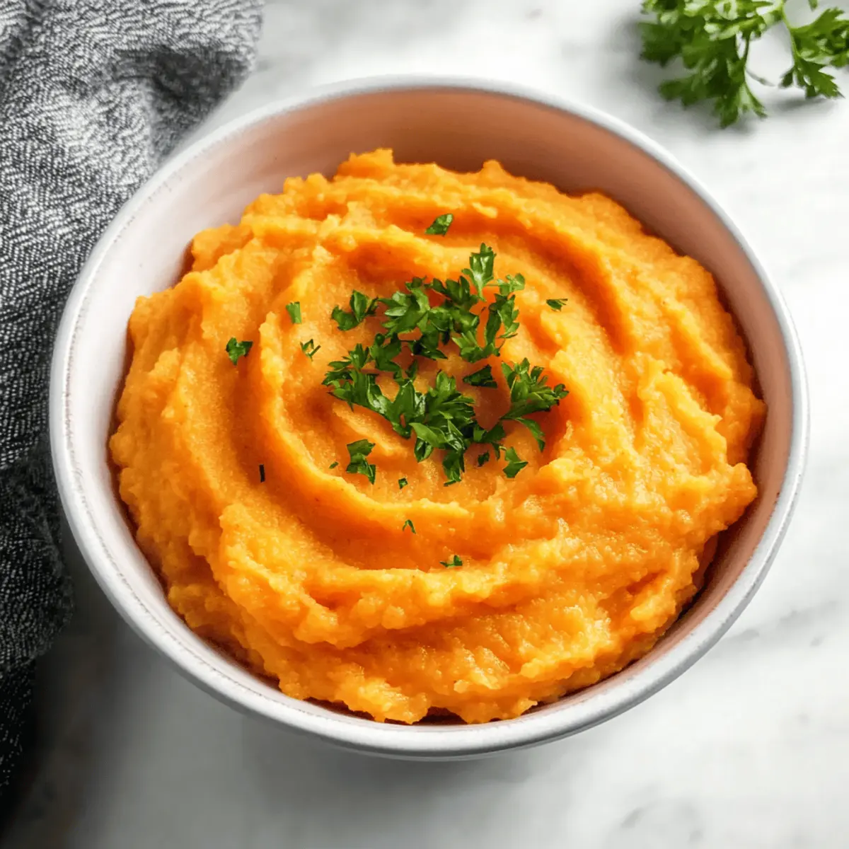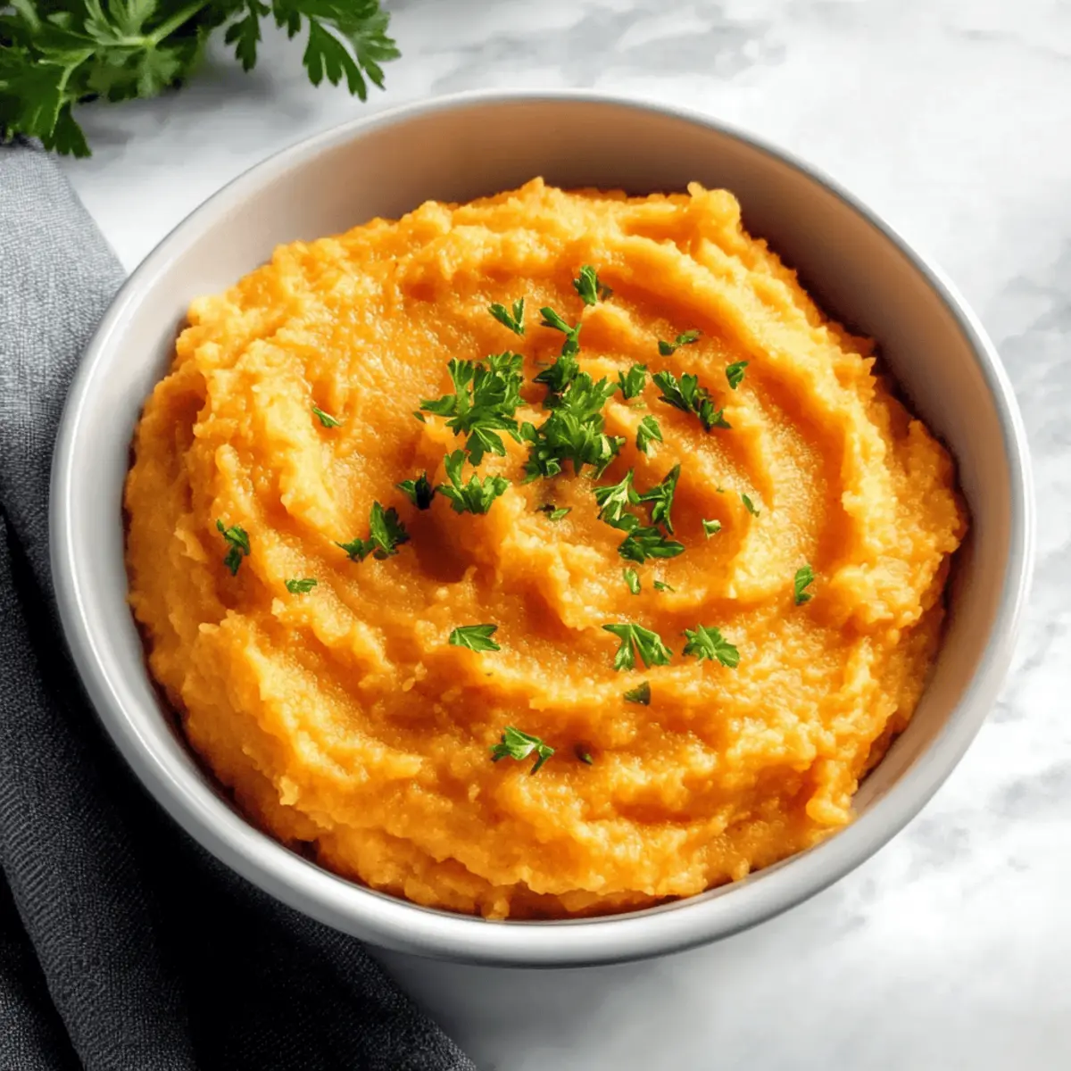 Jump to Recipe Print RecipeAs I peeled and chopped those vibrant orange carrots, a comforting aroma filled my kitchen, reminiscent of family dinners long past. This creamy Healthy Mashed Carrots recipe is my go-to side dish that adds a delightful twist to any meal, winning over both kids and adults alike. In just 30 minutes, you can whip up a colorful, vegan-friendly alternative to traditional mashed potatoes, making it perfect for those seeking a healthier yet satisfying option. Not only is it simple to create, but each scoop is also a nutritional powerhouse, rich in vitamins A and C. So, are you ready to transform ordinary carrots into an unforgettable dish that will leave everyone asking for seconds? Why Are Healthy Mashed Carrots a Must-Try? Vibrant Color: Those bright orange carrots make your plate pop, bringing a colorful twist to any meal. Nutritional Powerhouse: Packed with vitamins A and C, these mashed carrots support healthy vision and boost your immune system. Vegan-Friendly: Perfect for those with dietary restrictions, this creamy side dish is completely vegan and gluten-free! Quick & Easy: You can whip it up in just 30 minutes, making it an ideal choice for busy weeknights or family gatherings. Crowd-Pleaser: This dish impresses both kids and adults alike, transforming ordinary meals into memorable feasts! Pair it with roasted chicken or healthy oven baked tacos for a delightful family dinner. Healthy Mashed Carrots Ingredients • To create the vibrant and creamy Healthy Mashed Carrots, here’s what you’ll need: For the Carrots Carrots – The star ingredient providing flavor and texture; baby carrots can speed up cooking. Butter (Optional) – Adds a rich creaminess just before serving; use vegan butter for a fully plant-based option. For the Sauté Olive Oil – Adds healthy fats and richness during sautéing; vegetable oil is a good substitute for a different taste. Yellow Onion – Offers sweetness and depth to the mash; any onion variety works, but yellow is preferred for its mildness. For the Seasoning Ground Coriander – Introduces warm, citrus notes to brighten the dish; fresh coriander can alter texture but adds freshness. Ground Cumin – Provides a cozy earthiness; omit if you prefer milder flavors or substitute with smoked paprika for variety. Maple Syrup – A natural sweetener to balance the savory elements; honey can be an alternative but is not vegan. Apple Cider Vinegar – Brightens flavors with a touch of acidity; white vinegar is a handy substitute. Salt – Essential for enhancing all flavors; adjust according to your taste preferences. For the Garnish Chopped Parsley (Optional) – Adds a touch of freshness; feel free to experiment with other herbs for varied flavor profiles. Try this delightful and healthy dish and watch it turn your family dinners into vibrant feasts that everyone will love! Step‑by‑Step Instructions for Healthy Mashed Carrots Step 1: Boil the Carrots Begin by peeling and slicing 2 pounds of carrots into even pieces for uniform cooking. Place the sliced carrots in a large pot, cover them with water, and add a pinch of salt. Bring the water to a boil over medium-high heat, then reduce to a gentle boil for about 15-20 minutes, or until the carrots are fork-tender and bright orange. Step 2: Sauté the Onion While the carrots are boiling, heat 2 tablespoons of olive oil in a large skillet over medium heat. Add 1 sliced yellow onion, stirring occasionally for about 5-7 minutes until the onions are soft and golden brown. This step adds a wonderful depth of flavor that complements the creamy Healthy Mashed Carrots. Step 3: Toast the Spices Once the onions are ready, reduce the heat slightly and add 1 teaspoon of ground coriander and ½ teaspoon of ground cumin to the skillet. Stir the spices into the onions, cooking for approximately 30 seconds until you can start to smell their warm, fragrant aroma. This step enhances the flavor profile of your mashed carrots beautifully. Step 4: Blend Together After the carrots are cooked, drain them thoroughly and transfer them to a food processor. Add the sautéed onion mixture, 1 tablespoon of maple syrup for a touch of sweetness, 1 teaspoon of apple cider vinegar for brightness, and a pinch of salt. Secure the lid and blend until the mixture is smooth and creamy, resulting in perfect Healthy Mashed Carrots. Step 5: Final Processing For the final touch, continue to blend the mixture until it reaches your desired creaminess, which usually takes about 1-2 minutes. Taste the Healthy Mashed Carrots, adjusting the salt if necessary for personal preference. Serve the dish warm, garnished with freshly chopped parsley,, to add a pop of color and flavor. What to Serve with Healthy Mashed Carrots Creating a well-rounded meal is a joy, especially when it includes this vibrant, creamy side dish. Roasted Chicken: The savory flavors of roasted chicken pair beautifully with the sweet notes of the mashed carrots, creating a comforting combination. Grilled Pork Chops: Their robust flavor enhances the creamy sweetness of the carrots, making for a delightful contrast on your plate. Steak: A juicy steak with its rich umami complements the smooth and vibrant mash perfectly, making every bite a creamy, mouthwatering experience! Quinoa Salad: For a fresh twist, serve alongside a zesty quinoa salad, adding a crunchy texture that balances the creamy mash. Steamed Broccoli: The bright green color and slight bitterness of steamed broccoli offer a beautiful visual and taste contrast to the sweet carrots. Crispy Tofu: This vegan option brings a satisfying crunch and protein punch, serving as a wholesome accompaniment to the mashed carrots. Herbed Focaccia: A slice of freshly baked focaccia brushed with olive oil introduces a lovely texture that’s perfect for savoring every creamy bite. Refreshing Lemonade: Pair it with a glass of refreshing lemonade, as the citrusy notes will brighten the flavors of your meal. Chocolate