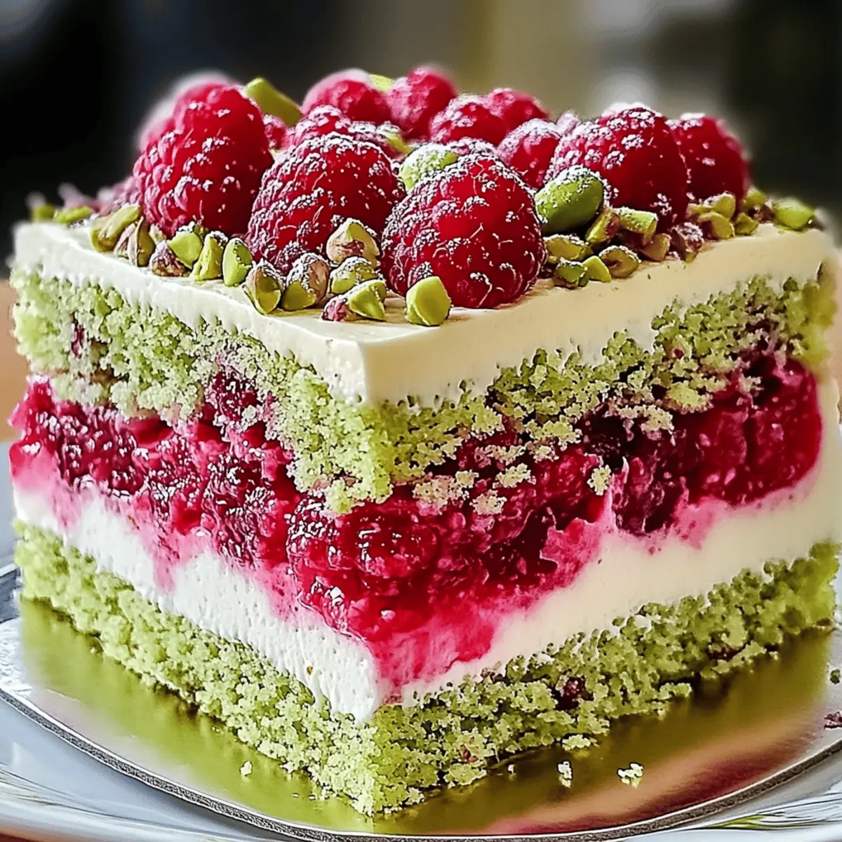 Heavenly Pistachio Raspberry Dream Cake is a delightful fusion of rich pistachios and fresh raspberries, perfect for any celebration.