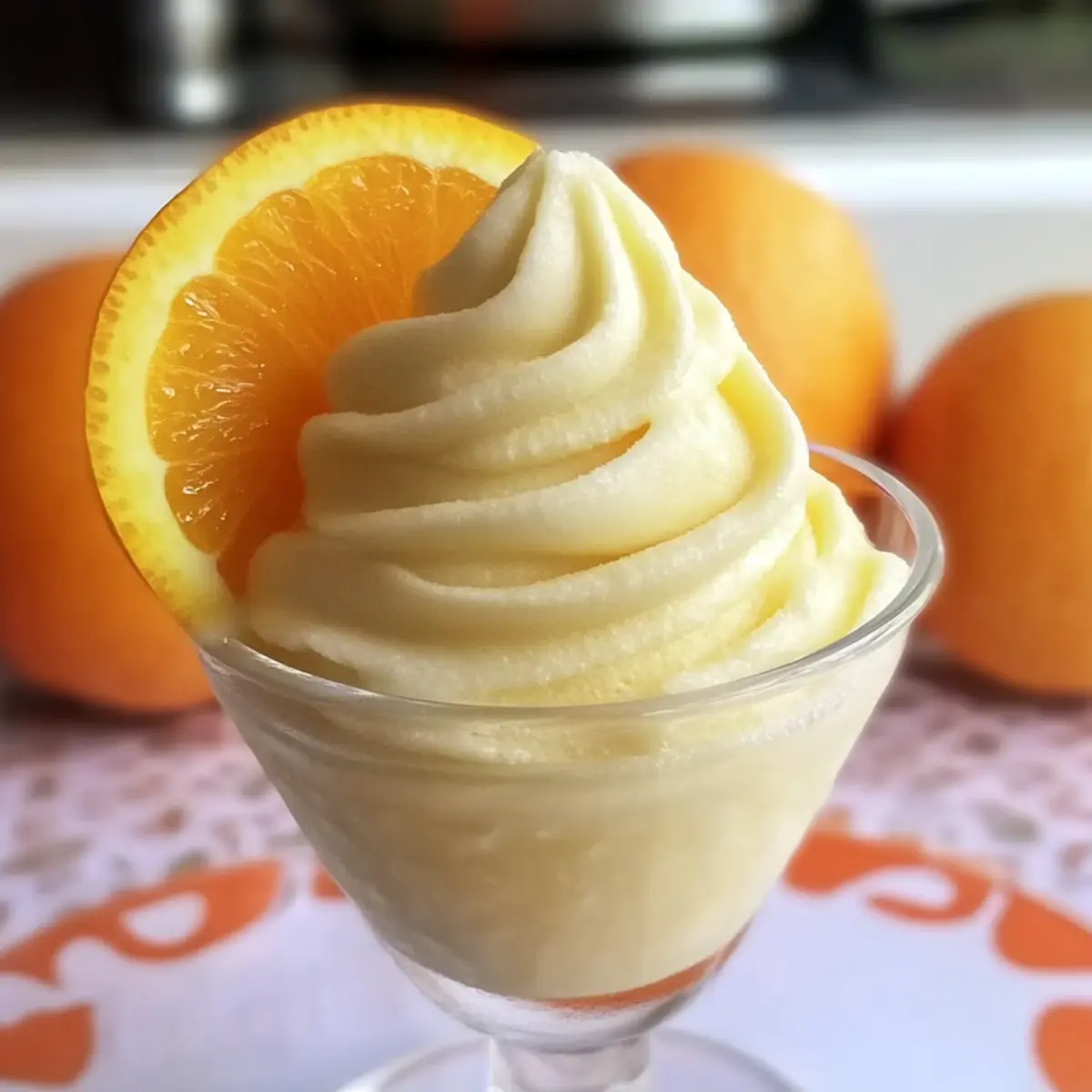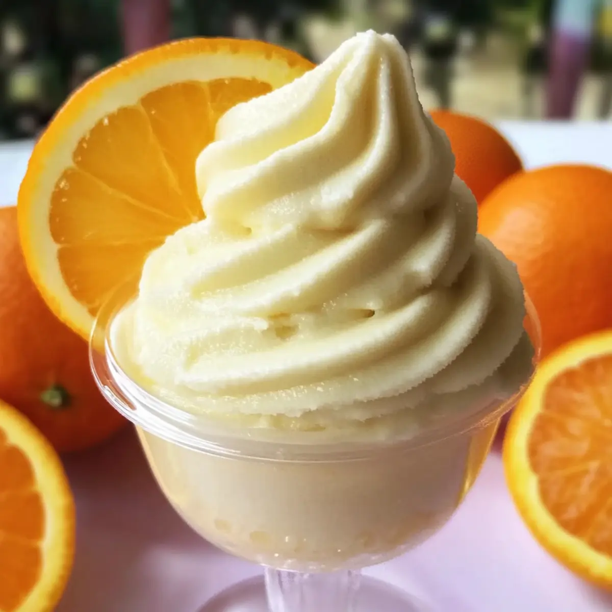 Jump to Recipe Print RecipeOn a sweltering summer afternoon, few things are as magical as a refreshing treat that cools you down and brings back childhood memories. This easy-to-make Homemade Orange Dole Whip delivers the nostalgic, creamy delight reminiscent of Disney parks, but right in your kitchen! With just three ingredients and crushed ice, you can whip up this delightful soft-serve in no time. It’s an ideal quick dessert for family gatherings, ensuring smiles all around. Plus, it’s a guilt-free indulgence that makes use of simple ingredients, making it a great alternative to store-bought ice cream. Ready to dive into this citrusy bliss? Let’s blend our way to a cool, sunny day! Why Is This Dole Whip So Special? Simplicity shines through in this easy, no-bake recipe that requires just three simple ingredients. Nostalgic flavors transport you back to sunny days at Disney, making it a hit for both kids and adults. Versatile enough for summer parties or a quiet family treat, you can customize with fresh fruit, like blending in pineapple or mango. Time-saving and quick to whip up, this Homemade Orange Dole Whip is ready in minutes, even on the hottest days. Plus, it’s a healthier alternative to heavily processed desserts, allowing you to indulge without guilt. Serve with tropical fruit slices or enjoy it solo – either way, this treat is bound to brighten your day! For more refreshing recipes, don’t miss our Mandarin Orange Salad or the delightful Orange Glazed Salmon. Homemade Orange Dole Whip Ingredients • You won’t believe how simple this is! For the Base Frozen Orange Juice Concentrate – This is the main flavor, offering a bright, citrusy sweetness for your Homemade Orange Dole Whip. Frozen Cool Whip – Provides a creamy texture that mimics soft-serve ice cream. Honey (or Sugar) – Sweetens the mix, balancing the tartness of the orange. For Texture Crushed Ice – Essential for achieving that perfect frozen and thick soft-serve consistency; adjust to achieve your desired thickness. Step‑by‑Step Instructions for Homemade Orange Dole Whip Step 1: Blend the Base Begin by adding the frozen orange juice concentrate to your blender. Blend on medium speed for about 30 seconds, or until the juice is whipped and smooth. This will create a creamy citrus base for your Homemade Orange Dole Whip, bringing out the bright flavors that will refresh you on a hot day. Step 2: Add Ingredients Next, carefully add the crushed ice, honey, and frozen Cool Whip to the blender. Blend for an additional 1-2 minutes on high until the mixture is well-combined and fluffy. You should see a thick, vibrant orange consistency forming. If necessary, stop to scrape down the sides to incorporate all ingredients evenly. Step 3: Check Consistency After blending, check the consistency of your Homemade Orange Dole Whip. If it’s too thin, add an extra 1/4 cup of crushed ice and blend again for about 30 seconds. The mixture should resemble a soft-serve ice cream, thick and airy, perfect for a refreshing treat on a warm day. Step 4: Adjust Sweetness Now it’s time to taste your creation! Scoop a small amount of the Dole Whip out with a spoon and sample it. If you’d like it sweeter, blend in more honey or sugar to suit your taste, mixing for an additional 10-15 seconds until incorporated fully. Step 5: Serve with Style For a beautiful presentation, transfer the orange Dole Whip mixture into a piping bag fitted with a large star tip. Pipe the creamy treat into serving cups or bowls, allowing a few swirls for an eye-catching effect. Alternatively, a simple scoop works just as well for a cozy, nostalgic feel. Storage Tips for Homemade Orange Dole Whip Fridge: Due to its creamy texture, the Homemade Orange Dole Whip is best enjoyed fresh. If necessary, store in the fridge for up to 3 days in an airtight container, but expect slight texture changes. Freezer: For longer storage, freeze any leftovers in an airtight container for up to 1 week. For optimal consistency, allow to thaw slightly before scooping and serving again. Reheating: This treat is meant to be enjoyed cold, so simply let the frozen Dole Whip sit at room temperature for about 10-15 minutes if it’s too hard after freezing. Make Ahead Options These Homemade Orange Dole Whips are fantastic for meal prepping, making it easier to enjoy this refreshing treat whenever the craving strikes! You can prepare the base mixture of frozen orange juice concentrate, Cool Whip, and honey up to 24 hours in advance and store it in an airtight container in the freezer. Just remember to blend in crushed ice right before serving to achieve that perfect soft-serve texture; this step is crucial for maintaining quality. If you wanted to prep a larger batch, you could also store the whipped mixture for up to 3 days in the freezer, but it’s best to consume it fresh for optimal taste and texture. Simply scoop and pipe into serving cups for an effortless and delightful summer dessert! Expert Tips for Homemade Orange Dole Whip Smooth Blending: Ensure that you blend until completely smooth for the best soft-serve consistency in your Homemade Orange Dole Whip. Ice Adjustment: If your mixture is too thin, adding more crushed ice can help achieve the thick, creamy texture for an ideal treat. Taste Test: Always taste your Dole Whip before serving to adjust sweetness with more honey or sugar according to your preference. Piping Perfection: Use a piping bag for a professional-looking presentation; it makes serving playful and adds a delightful touch for family gatherings. Keep It Fresh: Store any leftovers in an airtight container in the freezer, but try to enjoy within a week for the best flavor and texture. Homemade Orange Dole Whip Variations Feel free to play with this delightful recipe and discover your favorite twist on the classic! Dole Whip Float: Pour the Orange Dole Whip over a splash of pineapple juice or lemon-lime soda for a fizzy treat that’s sure to impres