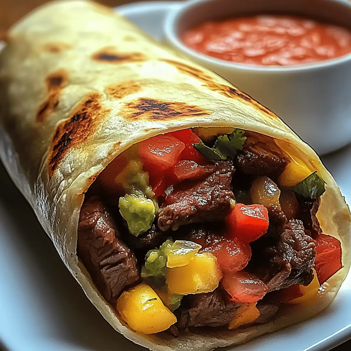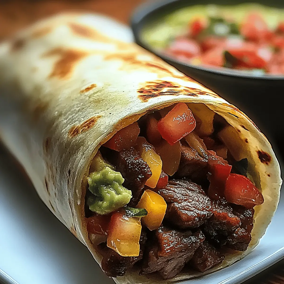 Jump to Recipe Print RecipeAs the sizzle of marinated steak hits the hot grill, the aromas of garlic and cumin whisk me away to a sunny backyard fiesta. This is the moment when I know it’s time to whip up my Ultimate Homemade Steak Burritos, a quick meal that never fails to amaze my friends and family. These delicious burritos are easy to customize; you can switch up the proteins or load them with your favorite toppings, making them perfect for any gathering. Whether you’re seeking a comforting weeknight dinner or planning a fun get-together, these steak burritos promise to be a crowd-pleaser that satisfies every craving. Ready to dive into this flavorful journey? Let’s get rolling! Why Choose Homemade Steak Burritos? Quick and Easy: Whip up these homemade steak burritos in under 30 minutes, making them ideal for busy weeknights or unexpected guests. Endless Customization: With the option to substitute proteins like chicken or shrimp, or add toppings such as jalapeños or cheese, every burrito can be uniquely tailored to your taste. Bursting with Flavor: The marinated steak paired with sautéed veggies brings a taste explosion that rivals your favorite Mexican restaurant. Perfect for Sharing: These burritos are a fantastic crowd-pleaser, great for family gatherings, or as a fun takeaway option for casual get-togethers—check out my favorites Korean Bbq Steak for another winning dish! Satisfying and Filling: Each burrito is packed with protein and fiber, making them a wholesome meal that keeps everyone satisfied. Versatile Leftovers: Leftover burritos can be easily heated and enjoyed for lunch the next day—just reheat wrapped in foil to maintain that perfect tortilla softness! Homemade Steak Burritos Ingredients For the Marinade: Steak – Use high-quality cuts for the best flavor and tender bites. Olive Oil – Essential for marinating; substitute with vegetable oil if needed. Lime Juice – Fresh lime juice adds brightness and helps tenderize the steak. Garlic Powder – Provides depth; fresh minced garlic can be used for extra aroma. Cumin – This spice enhances the flavor; consider chili powder for a different kick. Salt and Pepper – Pair these basics to balance the flavors to your preference. For the Vegetables: Onions – Sautéed for sweetness; shallots can be used if desired. Bell Peppers – Any color adds crunch and vibrancy; substitute with your favorite veggies. For Assembling: Tortillas – Flour tortillas are best for softness; choose corn for a gluten-free option. Guacamole – A creamy topping to elevate the burrito taste; homemade is delightful but store-bought works too. Salsa – Use your favorite variety for that zesty kick—mild, medium, or hot can all fit! Feel free to prepare your flavorful journey with these homemade steak burritos that burst with freshness and can be customized to your heart’s desire! Step‑by‑Step Instructions for Homemade Steak Burritos Step 1: Marinate the Steak In a mixing bowl, combine olive oil, fresh lime juice, garlic powder, cumin, salt, and pepper to create a flavorful marinade for your steak. Coat the steak evenly in this mixture and let it marinate for at least 1 hour at room temperature, or refrigerate for up to 8 hours for more intense flavor. You’ll know it’s ready when the meat has absorbed the rich aromas. Step 2: Grill the Steak Preheat your grill to medium-high heat, around 400°F (200°C). Once hot, place the marinated steak on the grill and cook for 5-7 minutes per side, until it achieves a nice char and reaches medium-rare doneness (135°F/57°C). After grilling, remove the steak and let it rest for 5 minutes before thinly slicing against the grain for tender bites in your homemade steak burritos. Step 3: Sauté the Vegetables In a large skillet, heat a splash of olive oil over medium heat. Once the oil is shimmering, add sliced onions and bell peppers to the skillet. Sauté these vegetables for about 5-8 minutes, stirring occasionally, until they become soft and caramelized with a hint of golden color. Their sweet aroma will enhance the flavors of your steak burritos beautifully. Step 4: Warm the Tortillas To prepare the tortillas, warm them in a dry skillet over medium heat for about 30 seconds on each side, or until they are pliable and soft. Alternatively, you can place them in a damp paper towel and microwave for about 15 seconds. This step is crucial for preventing tear when assembling your delicious homemade steak burritos. Step 5: Assemble the Burritos Begin assembling your homemade steak burritos by laying a warm tortilla flat on a clean surface. Spoon a generous portion of sliced steak, sautéed onions, and bell peppers onto the center, along with a dollop of guacamole and your preferred salsa. Carefully roll the tortilla tightly over the fillings, tucking in the sides as you go to secure all the deliciousness inside. Step 6: Serve and Enjoy Slice each burrito in half diagonally for an inviting presentation, revealing the vibrant flavors within. Serve the burritos hot from the skillet, accompanied by extra guacamole or salsa on the side. Gather your loved ones and enjoy this hearty meal together, savoring every bite of your homemade steak burritos! Storage Tips for Homemade Steak Burritos Fridge: Store leftover homemade steak burritos in airtight containers for up to 3 days to keep them fresh and flavorful. Freezer: For longer storage, wrap burritos individually in foil and place them in a freezer-safe bag. They can be frozen for up to 2 months. Reheating: To reheat, remove burritos from the foil and wrap in a damp paper towel. Microwave for 1-2 minutes or reheat in the oven at 350°F (175°C) for about 15-20 minutes to restore their softness. Assembly Tip: When storing, avoid adding fresh toppings like guacamole and salsa until serving to maintain their taste and texture in your homemade steak burritos. Make Ahead Options For busy home cooks, these Ultimate Homemade Steak Burritos are perfect 