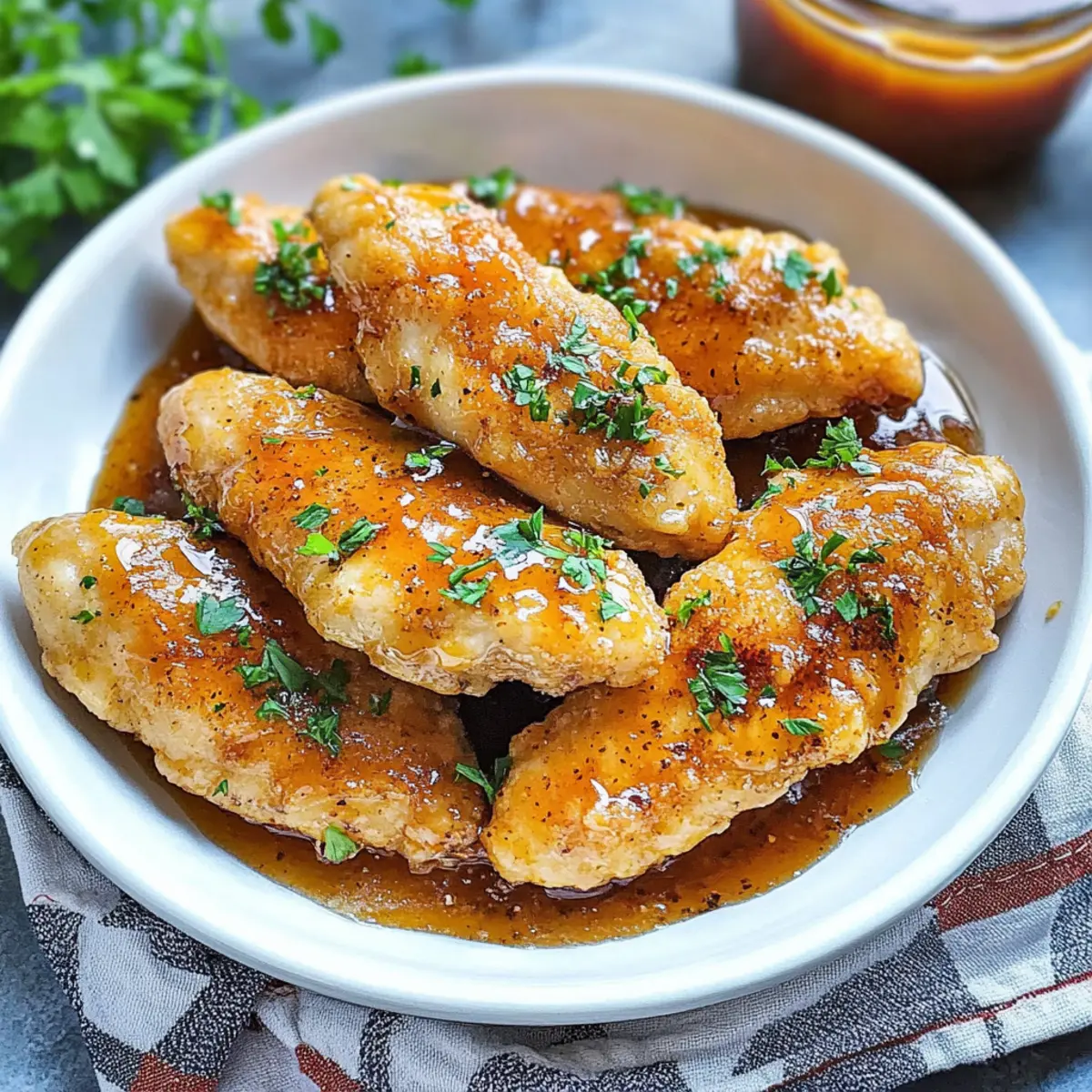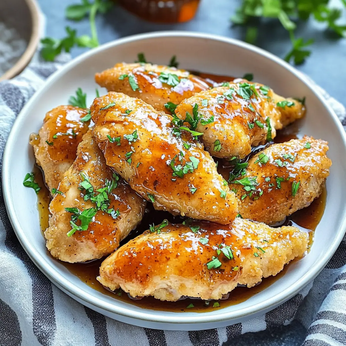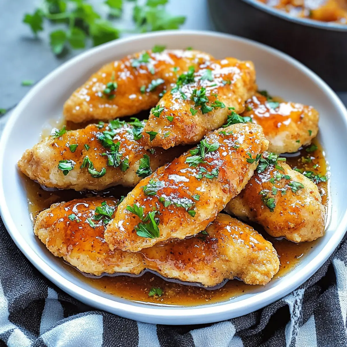 Jump to Recipe Print RecipeAs I rummaged through my pantry one evening, the realization hit me: I had everything I needed to whip up a classic comfort food—Honey Garlic Chicken Tenders. These crispy baked morsels are not only a delectable twist on a family favorite but have the power to elevate your weeknight dinners from mundane to exceptional. What’s even better? They come together in no time, making them an effortless option for any home-chef eager to satisfy those cravings without the fast-food run. So, why not skip the drive-thru and treat yourself to these sweet and savory gems instead? Are you ready to turn your kitchen into a hub of mouthwatering aromas? Let’s dive into this delectable recipe together! Why Choose Honey Garlic Chicken Tenders? Simplicity Made Delicious: Preparing these chicken tenders is a breeze, allowing you to create a mouthwatering meal in just about 30 minutes. Crispy Texture: Baked to golden perfection, each bite delivers the satisfying crunch paired with moist, tender chicken inside. Flavor Explosion: The homemade honey garlic sauce infuses each tender with a delightful balance of sweet and savory flavors that your family will crave! Versatile Meal Option: Serve with steamed rice, a fresh salad, or even in a wrap—there’s no wrong way to enjoy these tenders! For more delicious chicken dishes, check out my Garlic Butter Chicken or Cheesy Garlic Chicken. Crowd-Pleasing Appeal: Perfect for family dinners, gatherings, or even meal prep, these tenders are guaranteed to be a hit with both kids and adults alike! Honey Garlic Chicken Tenders Ingredients For the Chicken Tenders Chicken Tenders – Fresh tenders ensure a juicy texture and are super easy to cook. Milk – Helps tenderize the chicken and keeps the breadcrumbs locked in; buttermilk can be used for extra flavor. Bread Crumbs – Creates a crispy coating; opt for panko breadcrumbs if you crave an even crunchier bite. Salt – Essential for enhancing flavor; feel free to adjust to your taste. Black Pepper – Adds a hint of heat; swap with cayenne for a spicier kick. Olive Oil – Used for greasing and adding flavor; melted butter is a rich alternative. For the Honey Garlic Sauce Garlic – Fresh garlic is a key flavor component; using freshly minced garlic will give the best results. Chilli Flakes – A pop of warmth for the sauce; omit if you prefer milder flavors. White Wine Vinegar – Balances the sweetness with acidity; apple cider vinegar makes a great substitute. Soy Sauce – Infuses depth and umami; low-sodium soy sauce is a healthier choice. Honey – Provides the essential sweetness that pairs perfectly with garlic; consider maple syrup as a vegan alternative. Water – Adjusts the sauce’s thickness; chicken broth can add extra flavor. Cornflour – Thickens the sauce nicely; arrowroot powder serves as a gluten-free option. Embrace your cooking versatility with these Honey Garlic Chicken Tenders! The blend of flavors and simple ingredients makes this dish a staple for any mealtime you’re looking to elevate. Step‑by‑Step Instructions for Honey Garlic Chicken Tenders Step 1: Preheat the Oven Begin by preheating your oven to 375°F (190°C). While the oven is heating, prepare a large baking tray by greasing it generously with olive oil. This step will ensure that your Honey Garlic Chicken Tenders bake evenly and achieve that perfect golden-brown crispiness you’re aiming for. Step 2: Soak the Chicken In a shallow bowl, pour in enough milk to fully submerge your fresh chicken tenders. Allow the tenders to soak in the milk for about 10 minutes to tenderize the meat and help the breadcrumbs stick beautifully. This step not only enhances flavor but also ensures a juicy result. Step 3: Prepare the Breadcrumb Coating On a separate plate, mix together your bread crumbs, salt, and black pepper until well combined. Once your chicken tenders have soaked, take each piece and dredge it in the breadcrumb mixture, pressing firmly to ensure the crumbs adhere well. This will create that delightful crispy coating we all love. Step 4: Bake the Chicken Tenders Place the coated chicken tenders in a single layer on your greased baking tray. Bake in the preheated oven for 20-25 minutes. You’ll know they’re ready when the chicken is fully cooked, reaching an internal temperature of 165°F (74°C), and the coating is a beautiful golden color. Step 5: Prepare the Honey Garlic Sauce While the chicken is baking, heat a tablespoon of olive oil in a saucepan over medium heat. Add minced garlic and chili flakes, cooking for just one minute until fragrant. Keep an eye on the garlic to prevent it from burning, as you want it aromatic and golden. Step 6: Add the Remaining Sauce Ingredients To the saucepan, add white wine vinegar, soy sauce, honey, and water. Stir well, and bring the mixture to a gentle simmer. Allow it to cook for about 3-4 minutes, letting the flavors meld together. The sauce will begin to thicken slightly, creating a rich and glossy coating for your tenders. Step 7: Thicken the Sauce In a small bowl, mix cornflour with a little reserved water until smooth. Gradually add this mixture to the simmering sauce while stirring continuously. Continue cooking for an additional 1-2 minutes, or until your sauce has reached the desired thickness, perfect for drizzling over your chicken tenders. Step 8: Coat the Chicken Tenders Once the chicken is fully cooked and crispy, remove it from the oven. Pour the honey garlic sauce over the hot tenders, ensuring each piece is well-coated in the luscious sauce. Serve the Honey Garlic Chicken Tenders immediately and relish the delightful combination of flavors with your favorite sides. Honey Garlic Chicken Tenders Variations Feel free to let your creativity shine by customizing these delightful chicken tenders! Vegan Option: Replace honey with agave nectar or maple syrup for a completely vegan-friendly dish. This swap allows you to enjoy the same great flavor wh