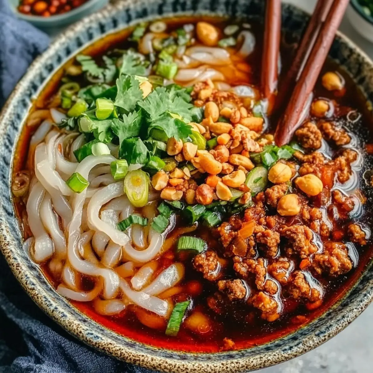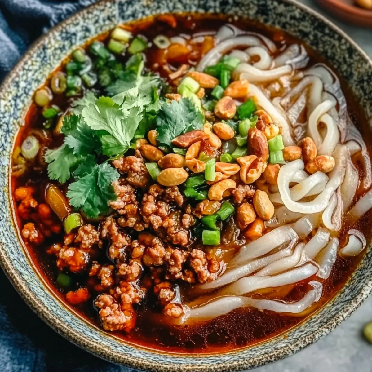Jump to Recipe Print RecipeAs I stood in my kitchen the other evening, the rich aroma of spices filled the air, instantly transporting me to the bustling streets of Sichuan. I couldn’t wait to whip up a comforting bowl of Suan La Fen, the beloved hot and sour noodle soup that’s earned a special place in my heart. This authentic dish features delightful, chewy potato noodles immersed in a fragrant, spicy broth, making it an incredibly rewarding cooking experience. Best of all, it’s adaptable for any dietary preference—whether you’re a meat-lover or seeking a hearty vegan meal. Quick and easy to prepare, this soup can help sweep away your fast-food fatigue with its satisfying warmth and vibrant flavors. So, are you ready to dive into a taste of authentic Sichuan right from your own kitchen? What Makes This Soup So Special? Authenticity: Suan La Fen delivers a true taste of Sichuan, capturing the essence of traditional street food right in your home. Versatile Options: Whether you’re craving ground pork or a vegetarian delight, this recipe adapts beautifully to your dietary needs. Texture Galore: With silky sweet potato noodles and crunchy peanuts, the contrast makes each bite a delightful experience. Quick & Easy: This recipe ensures a satisfying meal without spending hours in the kitchen, perfect for busy weeknights or lazy weekends. Flavor Explosion: The rich, spicy broth will awaken your taste buds and keep you coming back for more – it’s sure to become a favorite! If you also enjoy heartwarming dishes, check out my Chicken Noodle Soup or Miso Soup Comforting for more culinary inspiration. Hot and Sour Noodle Soup Ingredients For the Broth Chicken Broth – The heart of the soup; for a vegetarian version, use vegetable broth. Shaoxing Wine – Adds depth; substitute dry sherry or omit for a non-alcoholic option. Dark Soy Sauce – Enhances color and flavor; try coconut aminos for a gluten-free alternative. Chinkiang Vinegar – Provides the signature sourness; rice vinegar works well too. Homemade Chili Oil – Essential for authenticity and spice; use store-bought if short on time. For the Noodles Fresh Sweet Potato Noodles – Unique texture for the soup; use dried sweet potato or regular noodles if necessary. For the Toppings Ground Pork – Offers a rich umami flavor; substitute with tofu for a vegetarian option. Roasted Peanuts – Adds a delightful crunch; omit for a nut-free dish. Sui Mi Ya Cai – Optional pickled mustard greens; substitute with kimchi if needed. Green Onions – For a fresh kick; chives or shallots can stand in if you prefer. Chopped Cilantro – Brightens the dish; parsley can be a great alternative. Pickled Mustard Tube – Adds tanginess; any Chinese pickles can substitute or simply omit. Note: Enjoy this authentic Hot and Sour Noodle Soup that is perfect for a cozy meal, whether you’re sticking to vegetarian or diving into rich meat flavors! Step‑by‑Step Instructions for Hot and Sour Noodle Soup Step 1: Prepare the Meat Topping (Optional) In a skillet, heat 1 tablespoon of peanut oil over medium-high heat. Add the ground pork, sautéing for about 4–5 minutes until it turns golden brown. Pour in 2 tablespoons of Shaoxing wine and 1 tablespoon of dark soy sauce, stirring for another minute until the mixture is aromatic and well-combined. Remove from heat and set aside. Step 2: Make the Broth In a large bowl, mix together 4 cups of chicken broth, 2 tablespoons of Chinkiang vinegar, and 1 tablespoon of homemade chili oil, adjusting the amounts to taste. Boil the remaining chicken broth in a pot over medium heat, then keep it simmering gently. This flavorful broth will form the base of your hot and sour noodle soup. Step 3: Prepare the Noodles Fill a pot with water and bring it to a rolling boil. Add your fresh sweet potato noodles and cook them for about 3-5 minutes until they are al dente. Once cooked, drain the noodles in a colander and rinse them under cold water to stop the cooking process, ensuring they retain their delightful chewy texture. Step 4: Assemble the Dish Divide the prepared noodles into serving bowls. Carefully ladle the hot broth over the noodles, then top each bowl with some of the sautéed ground pork (if using), roasted peanuts, chopped cilantro, and a sprinkle of pickled mustard greens. This assembly brings together the comforting elements of the hot and sour noodle soup. Step 5: Serve Hot Make sure to serve your hot and sour noodle soup immediately while it’s still steaming. This enhances the flavors and texture of the dish. Be cautious as you enjoy every spoonful, given the delightful heat from the chili oil. Each bite will wrap you in the warm embrace of Sichuan’s vibrant culinary tradition! Expert Tips for Hot and Sour Noodle Soup Quality Ingredients: Use the best quality chicken broth and chili oil you can find. This elevates the hot and sour flavor profile significantly. Perfect Noodles: Cook the sweet potato noodles until al dente; overcooking can lead to mushiness. Rinse them to keep the perfect texture. Adjust the Heat: Start with less chili oil and gradually increase it to your desired spice level. Remember, you can always add it later! Flavor Balance: Include a good balance of vinegar and soy sauce to enhance the hot and sour elements without overwhelming the dish. Vegetarian Twist: For a protein boost in the vegetarian version, try incorporating tofu or shiitake mushrooms in place of ground pork for added depth. What to Serve with Suan La Fen Indulging in a steaming bowl of hot and sour noodle soup sparks the perfect opportunity to create a comforting meal experience. Crispy Spring Rolls: These delightful bites offer a crunch that perfectly contrasts the smooth noodles and flavorful broth. They are a popular starter that will set the mood for your meal. Savory Vegetable Dumplings: Stuffed with fresh veggies, these dumplings enhance the meal’s texture and create a delightful pairing with the spicy 