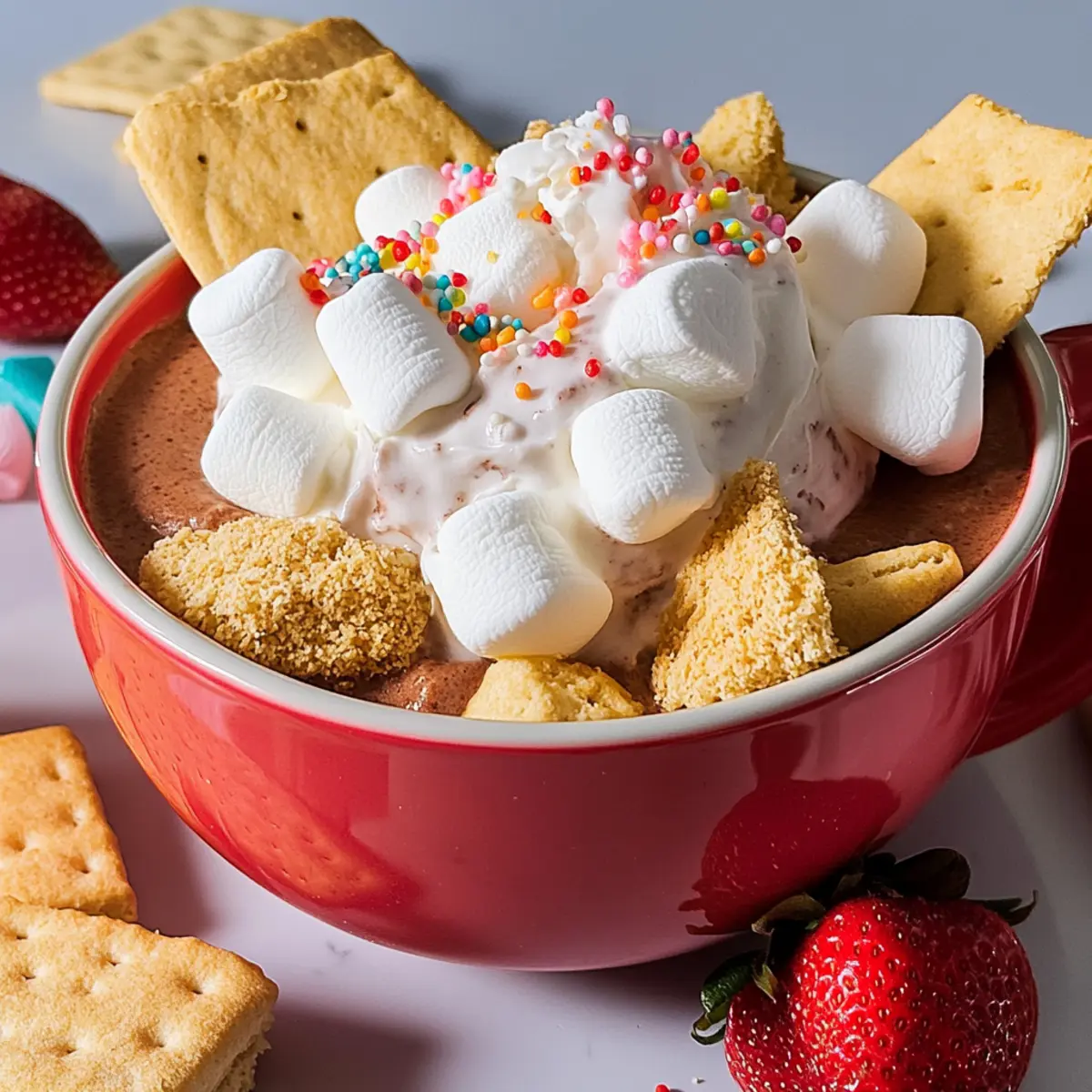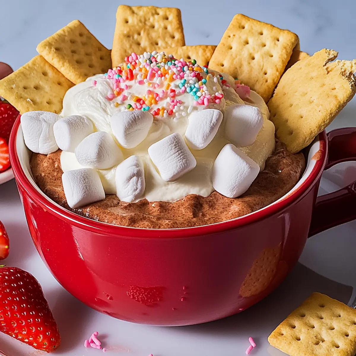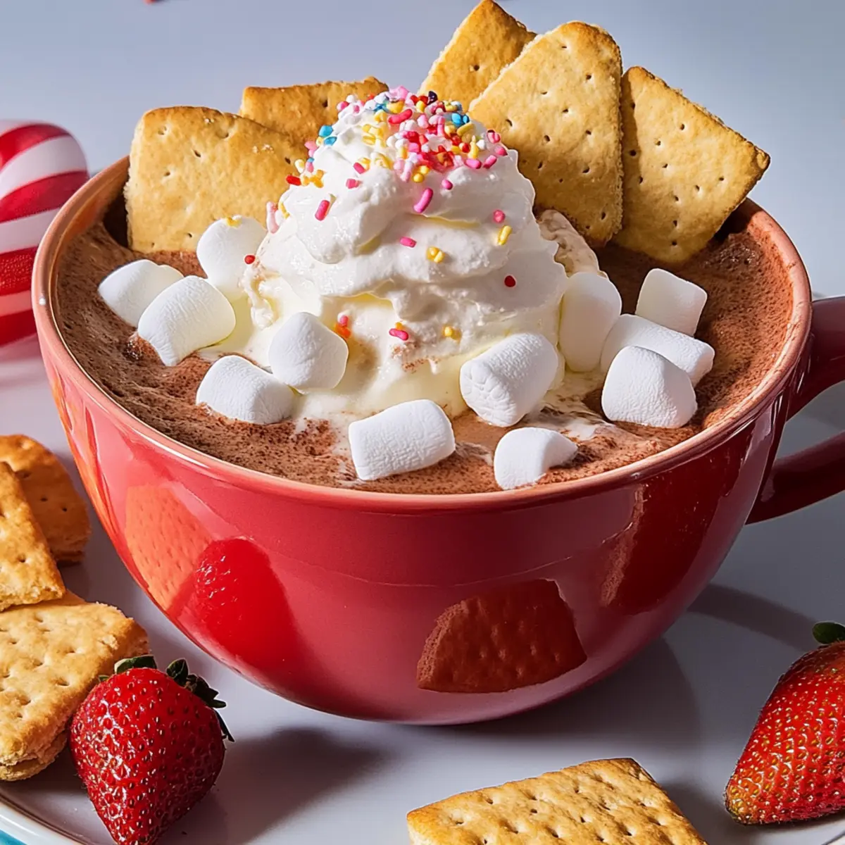 Jump to Recipe Print RecipeAs the first snowflakes begin to tumble outside, I find myself craving something warm and sweet to wrap my hands around. Enter my Indulgent Hot Cocoa Fluff Dip—a delightful twist on your favorite holiday beverage. This creamy dessert dip captures the beloved flavors of traditional hot chocolate and elevates them into an irresistible treat that’s perfect for gatherings. Not only is this Hot Cocoa Fluff incredibly easy to whip up, but it also invites your guests to indulge in a fun interactive experience with an array of dippers. From crunchy cookies to fresh fruit, there’s no wrong way to enjoy this festive dip! Ready to take a scoop into the world of deliciousness? Let’s dive in! Why is Hot Cocoa Fluff a Must-Try? Irresistible Flavor: This dip combines the cozy flavors of hot cocoa with the sweetness of marshmallow, creating a dessert that’s hard to resist. Versatile Variations: Whether you crave peppermint, coconut, or raspberry, the flavor options make it perfect for any preference. Interactive Experience: Serve it with a platter of dippers for a fun, engaging way to enjoy dessert at holiday parties! Effortless Preparation: With just a few simple ingredients and minimal steps, you can whip up this delightful dip in no time—perfect for busy hosts! Crowd-Pleasing Delight: Whether at a family gathering or a festive soirée, this Hot Cocoa Fluff is guaranteed to be a hit among guests. For delightful variations, check out my Baked Hot Honey for another festive option! Hot Cocoa Fluff Ingredients • Get ready to create magic with this delightful dip! For the Dip Cream Cheese – Ensures a creamy base, so let it warm up to room temperature for smooth mixing. Marshmallow Fluff – Adds a delightful sweetness and light texture, making it a key part of the Hot Cocoa Fluff. Hot Cocoa Mix – Infuses essential chocolate flavor—use about 4 packets for the perfect sweetness. Heavy Cream – Creates velvety smoothness; replace with coconut cream for a delicious dairy-free option. Unsweetened Cocoa Powder – Deepens the chocolatey goodness; don’t skip this ingredient for optimal taste. For Toppings Whipped Cream – Adds a fluffy finishing touch for that decadent feel. Mini Marshmallows – Perfect for sprinkling on top, providing a classic hot cocoa vibe. Sprinkles – Brighten up your dip and make it feel festive and fun! For Dippers Oreos – A crunchy, chocolatey complement that pairs perfectly with the dip. Graham Crackers – Classic and delightful for a sweet contrast. Shortbread Cookies – Their buttery flavor pairs beautifully with the richness of the dip. Peppermint Sandwich Cookies – Add a holiday twist that your guests will love. Strawberries – Fresh and fruity, offering a refreshing balance to the sweet dip. With these ingredients on hand, you’ll be ready to create a memorable Hot Cocoa Fluff that will warm everyone’s hearts this holiday season! Step‑by‑Step Instructions for Hot Cocoa Fluff Step 1: Cream the Base In a large mixing bowl, use a hand mixer on medium speed to blend the room-temperature cream cheese and marshmallow fluff together until the mixture is smooth and creamy, about 2-3 minutes. Scrape down the sides with a spatula to ensure everything is fully combined, creating a luscious base for your Hot Cocoa Fluff that sets the stage for the deliciousness to come. Step 2: Add Chocolate Goodness Gradually mix in the hot cocoa mix and unsweetened cocoa powder, continuing to mix on low speed until fully incorporated, which should take another 1-2 minutes. The combination will deepen the chocolate flavor of your Hot Cocoa Fluff, bringing that classic warm drink experience into a delightful dip. The mixture should feel thick yet smooth, perfect for folding in the next ingredient. Step 3: Fold in the Cream Gently fold in the heavy cream using a spatula, taking care not to overmix and deflate the light texture, until the mixture becomes fluffy and well-blended, about 1-2 minutes. Look for soft peaks to form as you fold, indicating that your Hot Cocoa Fluff is achieving its airy, dreamy consistency. The transformation will be visually delightful, showcasing the blend of rich chocolate colors. Step 4: Transfer and Decorate Spoon the fluffy dip into a beautiful serving bowl, smoothing the top for a polished final touch. Now, let your creativity shine by topping it with whipped cream, mini marshmallows, and colorful sprinkles, transforming the dip into a visually appealing centerpiece for your holiday spread. This finishing touch will add extra texture and fun, making your Hot Cocoa Fluff even more irresistible. Step 5: Chill Before Serving For the ultimate flavor experience, cover the bowl with plastic wrap and refrigerate the Hot Cocoa Fluff for at least 30 minutes before serving. This chilling time allows the flavors to meld beautifully, enhancing the richness of the dip. When ready, take it out of the fridge and let your guests dive into a delightful, festive treat with their chosen dippers! Hot Cocoa Fluff Variations & Substitutions Feel free to get creative as you customize this delightful dip to suit your taste buds! Peppermint: Add 1/8 tsp. peppermint extract and garnish with crushed candy canes for a refreshing holiday twist. It brings an invigorating flavor that perfectly complements the sweet cocoa. Coconut: Incorporate 1/8 tsp. coconut extract for a tropical vibe and top with toasted coconut for an added crunch. A drizzle of caramel sauce helps to enhance the sweetness beautifully. Raspberry: Stir in 2 tsp. raspberry liqueur for a luscious fruitiness and decorate with fresh raspberries and shaved chocolate. This variation brings a celebratory flair to your festive table. Vegan: Substitute cream cheese with a dairy-free alternative and use coconut cream instead of heavy cream to keep it plant-based. You won’t miss the traditional flavors—it’s still decadently delightful! Spicy Kick: Add a pinch of cayenne pepper or 