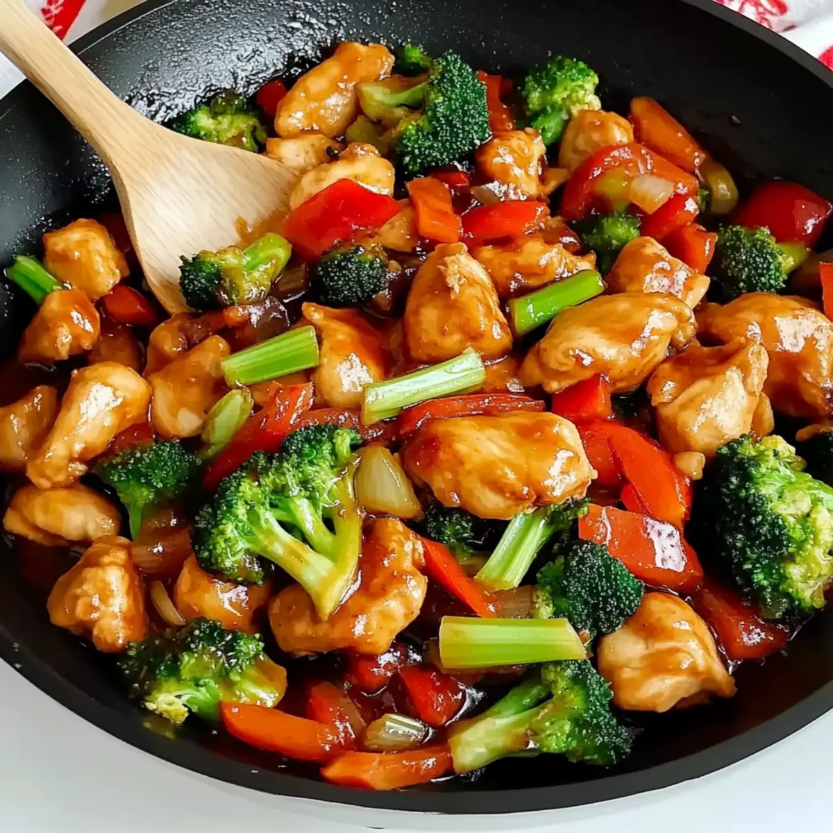 Jump to Recipe Print Recipe“Can a busy weeknight dinner truly rival the vibrant dishes you’d find at your favorite Asian restaurant?” That thought raced through my mind the day I decided to tackle Spicy Hunan Chicken with Fresh Vegetables. This dish is a revelation in both flavor and convenience! In just under 40 minutes, you can whip up a tantalizing meal that’s not only quick to prepare but also visually stunning with its colorful medley of fresh veggies. The spiciness of the Hunan sauce adds a delightful kick, while the tender chicken provides a comforting protein boost. Whether you’re trying to banish takeout from your routine or impress your friends with your culinary skills, this recipe is the perfect solution. Ready to bring a taste of Hunan into your kitchen? Let’s dive in! Why Choose Spicy Hunan Chicken? Bold flavors: You’ll love how this recipe marries tender chicken with a robust blend of spices that packs a punch, satisfying your craving for heat! Quick and easy: With prep and cook time totaling under 40 minutes, this dish is ideal for busy weeknights when time is of the essence. Versatile vegetables: Customize it based on what you have on hand—substitute seasonal favorites like bok choy or snap peas for a unique twist. Healthy choice: Packed with protein and fiber, this meal balances healthiness with indulgent flavors, making it a guilt-free option compared to takeout. Crowd-pleaser: Impress family and friends with this restaurant-quality dish that feels extravagant but is incredibly simple to create at home. Don’t forget to check out my recipe for Cheesy Garlic Chicken for another easy weeknight option! Hunan Chicken Ingredients • Enjoy cooking with this spicy Hunan chicken recipe that delivers delicious flavors! For the Chicken Boneless Skinless Chicken Breasts – Main protein source; chicken thighs can be used for a richer flavor. Low-Sodium Soy Sauce – Provides umami flavor; tamari is a great gluten-free alternative. Cold Water – Used to dilute the soy sauce for marinade consistency; no substitution needed. Cornstarch – Helps velvet the chicken for tenderness; arrowroot powder works as a substitute. Vegetable Oil – Ideal for cooking and stir-frying; consider using sesame oil for extra flavor. For the Sauce Oyster Sauce – Adds depth and sweetness to the sauce; hoisin sauce makes a good vegetarian option. Rice Vinegar – Balances flavors with acidity; apple cider vinegar can be used instead. Shaoxing Wine – Enhances Hunan flavor; dry sherry or white wine makes a great substitute. Honey – Adds sweetness to the sauce; maple syrup is a fantastic vegan choice. Grated Ginger or Ginger Paste – Offers spice and warmth; fresh ginger is recommended for better flavor. Garlic (minced) – Provides aromatic flavor; use fresh garlic for the best results. Chili Paste or Sambal Oelek – Adds heat to the dish; adjust according to your spice tolerance. For the Vegetables Broccoli Florets – Adds a crunchy texture and nutrition; snow peas or snap peas can be substituted. Yellow Onion (chopped) – Contributes sweetness and texture; green onions offer a milder flavor. Celery (sliced) – Adds crunch and freshness; you may swap it with bell peppers for sweetness. Red Bell Pepper (diced) – Brings color and sweetness; any bell pepper variety works well. Carrot (chopped) – Increases sweetness and adds color; zucchini can be used for a lower-carb option. Step‑by‑Step Instructions for Hunan Chicken Step 1: Marinate the Chicken Start by cutting the boneless skinless chicken breasts into bite-sized pieces and place them in a bowl. Mix together low-sodium soy sauce and cold water, pouring it over the chicken to marinate for about 10 minutes. After that, sprinkle cornstarch and drizzle vegetable oil over the chicken, tossing to coat evenly. Let the chicken rest for an additional 20 minutes to absorb the flavors. Step 2: Prepare the Hunan Sauce In a separate bowl, whisk together the remaining low-sodium soy sauce, oyster sauce, rice vinegar, Shaoxing wine, honey, grated ginger, minced garlic, and chili paste. Ensure that the mixture is well combined to create a balanced and flavorful Hunan sauce. This sauce will elevate the dish and make your Spicy Hunan Chicken truly irresistible. Step 3: Cook the Chicken Heat a large skillet or wok over medium-high heat and add a tablespoon of vegetable oil. Once the oil is shimmering, add the marinated chicken, cooking it in batches to avoid overcrowding. Sauté for about 6-8 minutes, stirring occasionally until the chicken is nicely browned and cooked through, with no pink remaining. Remove the cooked chicken from the skillet and set it aside. Step 4: Stir-Fry the Vegetables Using the same skillet, add broccoli florets and stir-fry for 1-2 minutes until they turn vibrant green and slightly tender. Next, toss in the chopped yellow onion, sliced celery, diced red bell pepper, and chopped carrot. Stir-fry these vegetables for an additional 2-3 minutes, allowing them to soften while retaining their crunchy texture and bright colors. Step 5: Combine Chicken and Sauce Pour the prepared Hunan sauce into the skillet with the stir-fried vegetables. Allow the sauce to come to a gentle simmer, thickening slightly for about 2-3 minutes. Add the cooked chicken back into the skillet, tossing everything together to ensure the chicken and vegetables are generously coated in that luscious, spicy Hunan sauce. Step 6: Serve and Enjoy Once everything is well combined and heated through, remove the skillet from the heat. Transfer your stunning Spicy Hunan Chicken to a serving dish, and consider garnishing it with chopped green onions if desired. Serve it immediately with steamed jasmine rice or noodles, allowing the scrumptious sauce to soak into every bite! What to Serve with Spicy Hunan Chicken Elevate your dinner experience with perfect side dishes that complement the bold flavors of your Hunan chicken! Steamed Jasmine Rice: Provides a