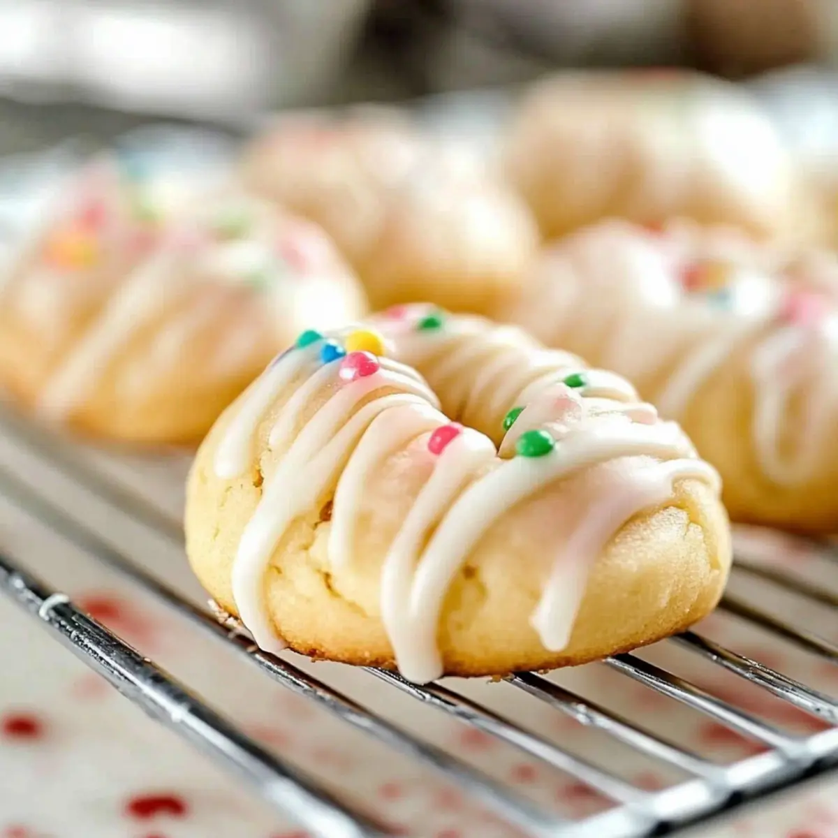 Jump to Recipe Print RecipeAs I wandered through the bustling streets of a quaint Italian town during Easter, the air was tinged with the sweet aroma of freshly baked cookies. It was there that I discovered the delightful charm of Italian Easter Cookies, or Uncinetti. These traditional treats are a comforting blend of chewy texture and subtle sweetness, making them a perfect companion for your morning coffee or afternoon tea. With just the right hint of lemon glaze, these cookies not only celebrate the spirit of Easter but also offer a healthier twist, as they can be made with olive oil instead of butter. The best part? They come together quickly, allowing you to fill your home with irresistible scents without spending all day in the kitchen. Curious about how to create your own batch of these enchanting cookies? Let’s dive in! Why are Italian Easter Cookies a Must-Try? Tradition at its finest: Italian Easter Cookies, or Uncinetti, embody the rich flavors of a beloved holiday, making them a timeless treat. Not overly sweet, these cookies offer a delightful balance that pairs perfectly with your favorite beverage. Quick and easy to make, they come together in no time, ensuring you spend less time in the kitchen and more time enjoying family moments. Versatile options are available—substituting olive oil for butter provides a healthier alternative without sacrificing flavor. Whether enjoyed at breakfast or during festive gatherings, these cookies are sure to impress your guests! Looking for more delightful recipes? Check out Gingerbread Oatmeal Cookies for a cozy twist or try Italian Pasta Fagioli for a comforting soup! Italian Easter Cookies Ingredients • Note: Gather these simple ingredients to create your delicious Italian Easter Cookies at home! For the Cookies All-Purpose Flour – Provides structure and base for the cookies; you can use gluten-free flour if needed. Granulated Sugar – Adds a touch of sweetness to balance the flavors; consider coconut sugar for a different texture. Baking Powder – Helps leaven the dough, giving it a light and airy texture. Salt – Enhances the overall flavor; use unsalted butter if desired, adding 1/4 teaspoon of salt. Lemon Zest – Infuses the cookies with a refreshing citrus flavor, brightening each bite. Egg – Binds the ingredients together and adds richness to the cookies. Butter (melted and cooled) – Adds moisture and depth of flavor; you can replace it with light olive oil for a healthier option. Milk – Hydrates the dough for the right consistency, ensuring the cookies hold their shape when baked. For the Glaze Powdered Sugar – Sweetens the glaze and provides a smooth texture to drizzle over your cookies. Lemon Juice – Adds a zesty flavor to the glaze, complementing the cookies beautifully. Additional Milk – Adjusts the thickness of the glaze to achieve your desired consistency. Step‑by‑Step Instructions for Italian Easter Cookies Step 1: Preheat Oven Begin by preheating your oven to 300°F (150°C). While the oven is heating, prepare a baking sheet by lining it with parchment paper. This will ensure that your Italian Easter Cookies, or Uncinetti, bake evenly and don’t stick to the surface, allowing for easy removal once they’re golden and ready. Step 2: Combine Dry Ingredients In a large mixing bowl, whisk together the all-purpose flour, granulated sugar, baking powder, salt, and the fragrant lemon zest. This step is crucial as it helps to evenly distribute the leavening and flavor components, creating a well-balanced base for the cookies. Set this aside to focus on the wet ingredients next. Step 3: Mix Wet Ingredients Create a well in the center of your dry mixture and crack the egg into it. Pour in the cooled melted butter (or olive oil, if you’re opting for a healthier twist) along with the milk. Use a fork or spatula to gently combine everything until a shaggy dough starts to form, ensuring all the ingredients are well incorporated without overmixing. Step 4: Knead Dough After the shaggy dough comes together, transfer it to a lightly floured surface. Knead the dough gently for about 1-2 minutes until it becomes smooth and slightly elastic, which indicates that the gluten has developed enough for your Italian Easter Cookies to hold their shape during baking. Avoid working it too much to keep the cookies tender. Step 5: Shape Cookies Divide the dough into manageable pieces and roll each one into thin ropes about 5-6 inches long. Tie each rope into a knot or form them into circles, creating the signature look of Uncinetti. Place these shapes on your prepared baking sheet, leaving space between them as they will expand slightly while baking. Step 6: Bake Slide your baking sheet into the preheated oven and bake the cookies for approximately 15-18 minutes, or until they are lightly golden on the bottom and edges. Keep a close eye on them during the final minutes of baking to avoid over-browning, ensuring your Italian Easter Cookies are just right for that perfect texture. Step 7: Cool & Glaze Once baked, remove the sheet from the oven and allow the cookies to cool on the pan for a few minutes before transferring them to a wire rack. While they cool, prepare the lemon glaze by mixing powdered sugar with lemon juice and a splash of additional milk until you reach your desired consistency. Drizzle it over the cooled cookies for a delightful finish. Expert Tips for Italian Easter Cookies Check for Doneness: Keep an eye on cookies during baking; they can go from perfectly golden to over-baked quickly. Aim for a light golden hue. Avoid Sticky Dough: If your dough feels sticky, refrigerate it for about 30 minutes before shaping. This will make it easier to handle and shape your Italian Easter Cookies perfectly. Use Fresh Ingredients: For the best flavor, always opt for fresh lemon juice and zest, enhancing the zesty notes in your cookies. Enhance Flavor: Add a touch of almond extract to your dough for a subtle nutty flav