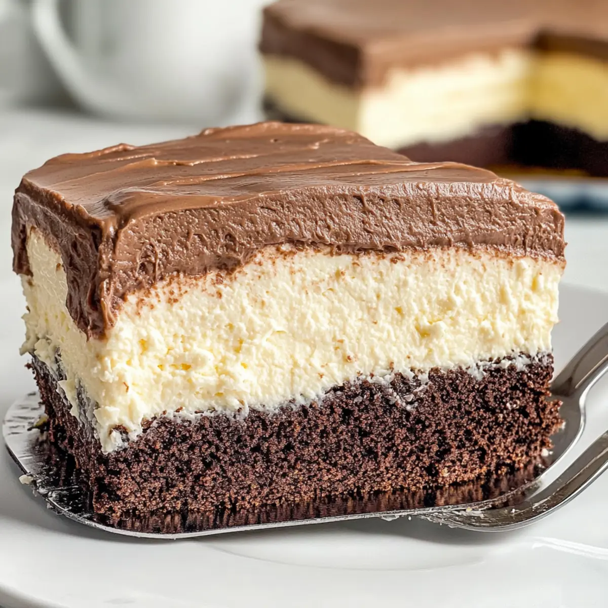 Jump to Recipe Print RecipeOn a recent afternoon, as I was flipping through my cherished recipe box, I stumbled upon a forgotten gem: the Italian Love Cake. It brought back memories of family gatherings where laughter mingled with the sweet aroma of baked goods. This delightful layered dessert combines velvety ricotta cheese with a rich chocolate cake, bringing a touch of Italy right to your kitchen. The best part? It’s incredibly easy to prepare, making it a perfect crowd-pleaser that shines at any occasion, from birthday celebrations to romantic dinners. Plus, it’s just the kind of comfort food everyone craves after a long day. So, are you ready to create a sensational treat that’s bound to impress? Let’s get started! Why is Italian Love Cake irresistible? Decadent Flavors: This cake beautifully marries rich chocolate and creamy ricotta, creating a dessert that’s both indulgent and comforting. Easy Assembly: With simple steps, you’ll have a stunning layered cake that looks and tastes like a gourmet masterpiece. Customizable Options: Try different cake mixes or puddings for unique twists—imagine a strawberry pudding frosting for a fruity flair! Perfect for Any Occasion: Whether for holidays, parties, or an intimate dinner, this cake is sure to wow your guests and spark joy. Memory-Making Dessert: Each slice is a nostalgia-inducing treat, reminding us of family gatherings filled with love and laughter. Embrace this delightful Italian tradition and impress your loved ones! Italian Love Cake Ingredients For the Ricotta Layer Ricotta Cheese — Adds creaminess and an Italian vibe; use whole milk ricotta for the richest flavor. Granulated Sugar — Provides sweetness to the dessert; can substitute with a sugar alternative if desired. Vanilla Extract — Enhances flavor depth in the ricotta layer; use pure vanilla extract for best results. Eggs — Essential for binding and structure; use room temperature eggs for better emulsification. For the Chocolate Cake Layer Devil’s Food Cake Mix — Base for the chocolate layer; offers quick and convenient preparation. Oil (Canola or Vegetable) — Ensures moistness in the cake; coconut oil can add a different flavor profile. Water — Hydrates the cake mix; ensures a tender result when mixed properly. For the Creamy Frosting Chocolate Pudding Mix — Forms the creamy frosting layer; instant chocolate pudding mix is recommended for ease. Milk (Whole) — Used to prepare the pudding frosting for creaminess; light milk can be used, but results will vary in richness. Whipped Topping (Cool Whip) — Stabilizes frosting and adds a light texture; stabilized homemade whipped cream can also be used. Step‑by‑Step Instructions for Italian Love Cake Step 1: Preheat the Oven Begin by preheating your oven to 350°F (175°C). While the oven warms up, take a 9×13-inch baking dish and grease it generously with cooking spray or butter. This will ensure that your Italian Love Cake comes out easily after baking, creating a beautiful presentation. Step 2: Prepare the Ricotta Layer In a large mixing bowl, combine 2 cups of ricotta cheese, 1 cup of granulated sugar, and 1 teaspoon of vanilla extract. Blend the ingredients smoothly with a hand mixer or whisk, ensuring there are no lumps. Gradually add in 3 room-temperature eggs, mixing until the mixture is creamy and well combined, with a light and airy texture. Step 3: Mix the Cake Batter In a separate bowl, prepare the cake layer by combining the contents of a Devil’s Food Cake mix, 1 cup of water, 1/2 cup of canola oil, and 3 large eggs. Blend these ingredients with an electric mixer on medium speed for about 2 minutes, or until the batter is smooth and free of lumps. This rich chocolate batter will be the base of your Italian Love Cake. Step 4: Combine the Layers Carefully pour the chocolate cake batter into the greased baking dish, smoothing it into an even layer. Now, gently spoon the ricotta mixture over the top of the chocolate batter, allowing it to float on the surface. Avoid mixing the two layers; the ricotta will sink slightly during baking to create that signature layered effect. Step 5: Bake the Cake Place your baking dish in the preheated oven and bake for approximately 1 hour to 1 hour and 10 minutes. The cake is done when the center is slightly jiggly but not wet, and the edges are set. A toothpick inserted into the chocolate layer should come out with a few moist crumbs, signaling that the cake is perfectly baked. Step 6: Cool the Cake Once baked, remove the Italian Love Cake from the oven and set it on a wire rack to cool completely to room temperature. This cooling process is essential to allow the layers to set properly and ensure that the cake retains its structure when frosted. Step 7: Make the Frosting Meanwhile, prepare the creamy frosting by mixing a package of instant chocolate pudding mix with 2 cups of cold whole milk in a medium bowl. Whisk until the pudding thickens, about 2 minutes. Once thickened, gently fold in 2 cups of whipped topping. This will give your frosting a light and fluffy texture perfect for layering on the cake. Step 8: Frost the Cake Once the cake has cooled, evenly spread the creamy chocolate frosting over the top of the cake using a spatula, making sure to cover it completely. After frosting, refrigerate the cake for at least 4 hours or overnight; this chilling time will help the layers set and allow the flavors to meld beautifully, enhancing the overall experience of your Italian Love Cake. How to Store and Freeze Italian Love Cake Fridge: Store the Italian Love Cake in an airtight container for up to 5 days. This keeps the layers fresh and maintains the creamy texture of the frosting. Freezer: If you want to enjoy this delightful dessert later, wrap the cake tightly in plastic wrap and aluminum foil before freezing. It can last for 2-3 months. Thawing: To eat, transfer the frozen cake to the fridge overnight to thaw gently, preserving its moistness 