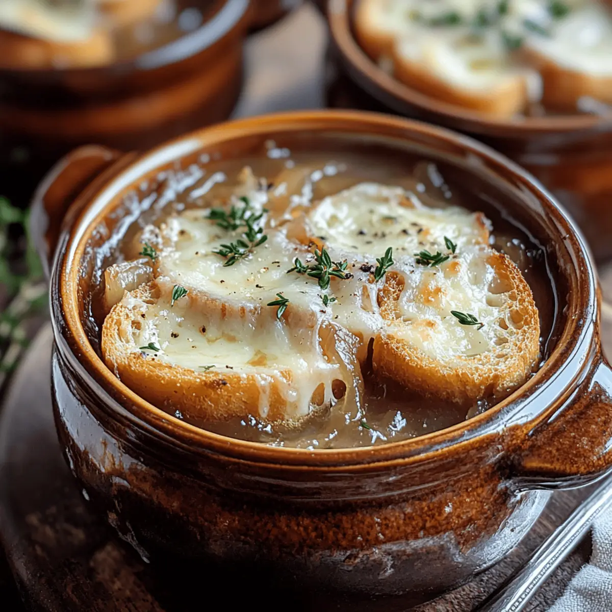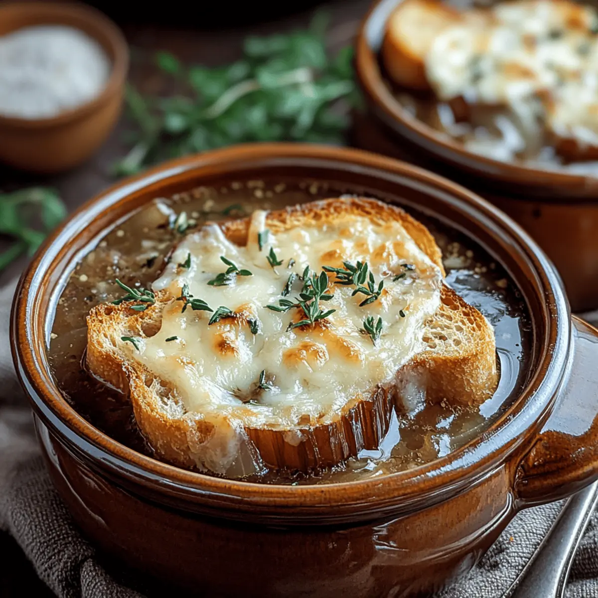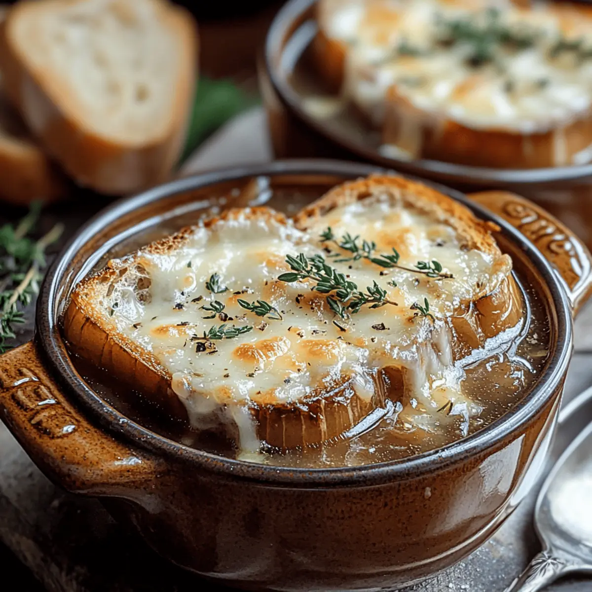 Jump to Recipe Print RecipeAs I stood by the stove, the scent of slowly caramelizing onions enveloped my kitchen, whispering promises of comfort and warmth. This Savory Italian Onion Soup with Fontina Cheese captures the essence of cozy evenings, transforming simple ingredients into a hearty celebration of flavor. With its sweet, golden onions and that irresistibly gooey cheese topping, this dish is not only a satisfying and rich comfort food but also a delightful way to impress guests. Best of all, it’s quick to prepare, allowing you to savor every moment without the fuss. Are you ready to dive into this Italian-inspired bowl of goodness that feels like a warm hug on a chilly night? Why Is This Soup a Game-Changer? Comforting Cadence: Each spoonful of this Italian Onion Soup with Fontina bursts with layers of sweetness, thanks to the caramelized onions. Cheesy Indulgence: The gooey Fontina cheese on top melts into every bite. Effortlessly Elegant: Perfect for cozy dinners, this recipe is both simple and sophisticated. Versatile Base: Try it as a main course or pair it with a fresh salad or roasted vegetables for a complete meal. You can even experiment with toppings—master your version just like a chef! If you’re in the mood for more warmth, check out the delicious Miso Soup Comforting or enjoy classic Italian Pasta Fagioli. Italian Onion Soup Ingredients Here’s everything you’ll need to create that perfect bowl of savory joy! For the Soup Base: Unsalted Butter – Adds richness and flavor; substitute with olive oil for a dairy-free option. Olive Oil – Provides a base for sautéing; can be replaced with butter or other cooking oils. Onions (yellow and red) – The soul of the soup, adding sweetness and depth; use any combination of onions available. Garlic (minced) – Enhances flavor; shallots can substitute for a milder taste. Sugar – Aids in caramelizing the onions; brown sugar can deepen flavor. Beef or Vegetable Broth – Serves as the soup base providing umami; use low-sodium broth for better control of salt. Dry White Wine (optional) – Adds acidity and depth; replace with extra broth or apple cider vinegar for a non-alcoholic version. Dried Thyme – Offers herbal notes; fresh thyme can be used as a substitute. Dried Oregano – Contributes earthiness and pungency; Italian seasoning can serve as a blend alternative. Salt and Pepper – Essential for seasoning to taste. Fresh Parsley (garnish) – Provides color and freshness; chives or green onions can also be good garnish options. For the Topping: Fontina Cheese (grated) – Melts beautifully and adds creaminess; Gruyere or mozzarella can be used as a substitute. Crusty Bread (sliced) – Provides texture and a base for the cheese topping; any hearty bread will do. Parmesan Cheese (grated) – Adds a salty kick to the topping; Romano or Pecorino can be used for a similar flavor. Fresh Thyme Leaves – Optional garnish for added color and flavor. Step‑by‑Step Instructions for Italian Onion Soup with Fontina Step 1: Heat Butter and Oil In a large pot, melt 2 tablespoons of unsalted butter and 2 tablespoons of olive oil over medium heat. Allow the butter to fully melt and begin to bubble gently, creating a rich base for your Italian Onion Soup with Fontina. This should take about 1 minute, ensuring the mixture is hot before adding the onions. Step 2: Add Onions and Sugar Stir in 4 cups of thinly sliced yellow and red onions along with 1 teaspoon of sugar to promote caramelization. Cook for 25-30 minutes, stirring occasionally, until the onions turn a deep golden brown. The key is to patiently let the onions caramelize, releasing their natural sweetness and developing a robust flavor for the soup. Step 3: Stir in Garlic Add 2 minced garlic cloves to the pot and sauté for another 1-2 minutes, stirring continuously to prevent burning. You will notice the garlic becoming fragrant and lightly golden, enhancing the savory depth of the Italian Onion Soup with Fontina. This melding of flavors creates a divine aroma that fills your kitchen. Step 4: Add Wine (Optional) Pour in 1/2 cup of dry white wine, allowing it to deglaze the pot and lift any flavorful bits stuck to the bottom. Let the mixture simmer for approximately 5 minutes, reducing the wine to enrich your soup with a touch of acidity and complexity. This step is optional but adds dimension to the overall flavor profile. Step 5: Pour in Broth and Season Incorporate 6 cups of beef or vegetable broth, along with 1 teaspoon each of dried thyme and dried oregano. Season the mixture with salt and pepper to taste. Raise the heat to bring the soup to a gentle boil, allowing all the wonderful flavors to meld together for about 5-7 minutes, creating a warm and inviting aroma. Step 6: Reduce Heat and Simmer Lower the heat to a simmer, allowing the soup to cook for an additional 15 minutes. This step helps the flavors meld beautifully, enhancing the overall taste of your Italian Onion Soup with Fontina. Stir occasionally, keeping an eye out for any bubbles as the soup thickens slightly. Step 7: Preheat Oven While the soup simmers, preheat your oven to 400°F (200°C). This will ready your oven for toasting the bread, which will later support that delicious melting Fontina cheese. The anticipation builds as your kitchen fills with the combined scents of sautéed onions and savory broth. Step 8: Toast Bread Arrange sliced crusty bread on a baking sheet and toast in the preheated oven for about 10 minutes, or until golden and crispy. This step will give the bread a sturdy texture to hold up against the soup while adding a delightful crunch to each hearty serving. Step 9: Serve Soup Ladle the hot Italian Onion Soup into oven-safe bowls, filling them generously to showcase the vibrant broth and caramelized onions. This presentation invites your guests to dive into the comforting depths of flavor awaiting them, setting the stage for the following cheesy topping. Step 10: Add Che