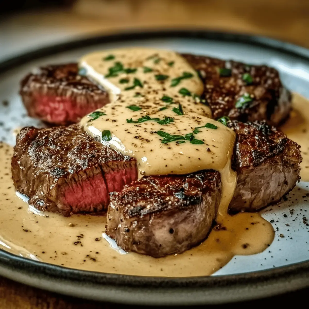 Juicy Steak with Creamy Garlic Sauce is a flavorful celebration of gourmet dining that can be prepared quickly at home.