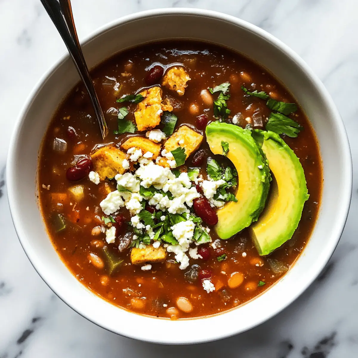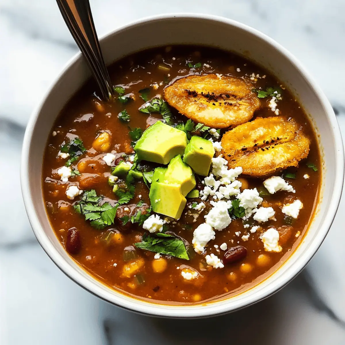 Flavorful Garnishes, Topping with fried plantains and queso fresco adds unique flair that transforms this soup into a standout meal!
