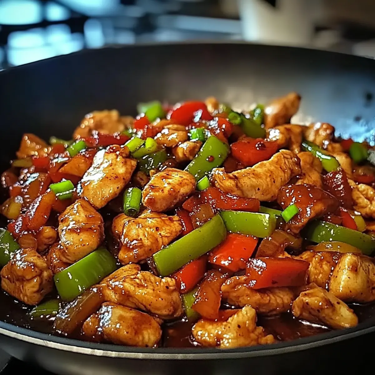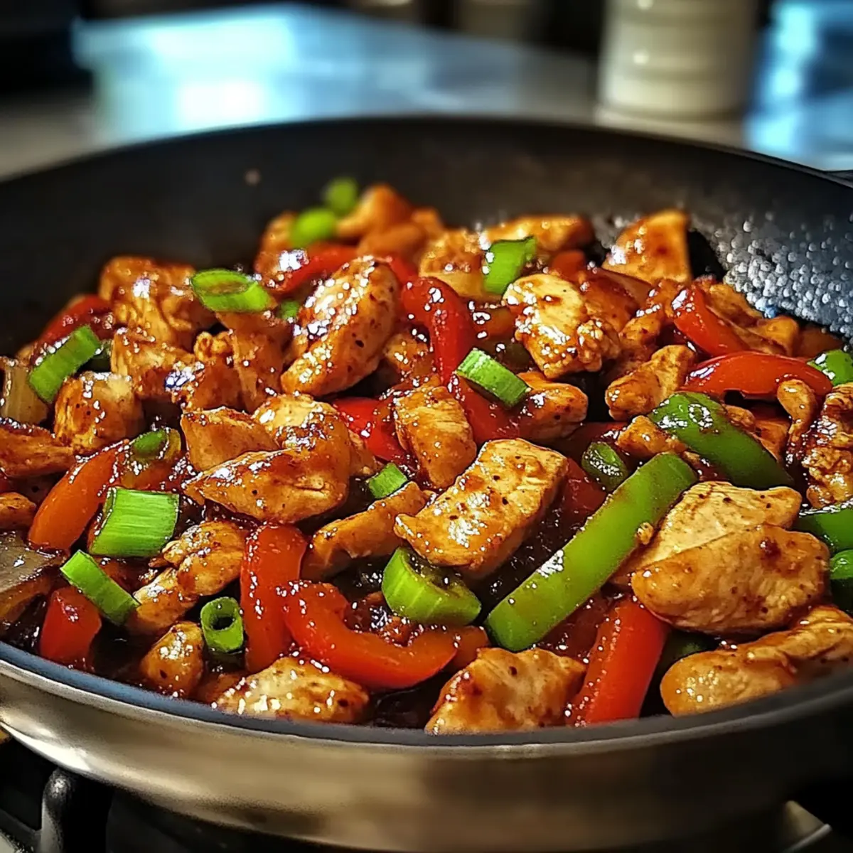 Jump to Recipe Print RecipeAs I stood in my kitchen, the vibrant colors of fresh vegetables danced before me, ready to turn a simple night into something special. This Korean Spicy Chicken Stir Fry has become my go-to recipe on those busy evenings when I crave something flavorful but don’t want to spend hours cooking. In just 30 minutes, you can whip up a quick meal that’s not only gluten-free but also a feast for the senses! Each succulent piece of chicken mingles with crisp vegetables, all draped in a spicy, savory sauce that adds just the right kick. It’s a delightful way to bring a taste of Korea into your home kitchen. Curious about how to start this flavorful adventure? Let’s dive in! Why is this stir fry a game changer? Quick and Easy: With just a 30-minute prep and cook time, this dish is perfect for busy weeknights or last-minute dinner guests. Bursting with Flavor: The combination of gochujang, garlic, and ginger creates a spicy, savory ambiance that will excite your taste buds. Colorful Nutrition: Featuring vibrant veggies like bell peppers and onions, this recipe is not only delicious but also packed with nutrients. Versatile Options: Feel free to swap in tofu or shrimp for a different protein, or serve it with fluffy rice or noodles for a complete meal. Create your own variations and keep dinners fresh, just as I do with my Spicy Shrimp Avocado Rice Bowl. Crowd-Pleasing Delight: Whether it’s a casual family meal or a fun dinner with friends, everyone will love diving into this vibrant dish! Korean Spicy Chicken Stir Fry Ingredients For the Stir Fry Vegetable Oil – Perfect for sautéing the chicken and veggies; canola or coconut oil works well too. Chicken Breast (1 pound) – This lean protein adds substance; feel free to substitute with tofu for a vegetarian vibe. Garlic (2 cloves, minced) – Essential for aromatic depth; fresh garlic offers the best flavor. Ginger (1 tablespoon, minced) – Adds a warm, spicy kick that complements the dish beautifully. Bell Pepper (1, sliced) – Contributes a delightful sweetness and crunch; broccoli or snap peas can be swapped in. Onion (1, sliced) – Provides sweetness and texture; any onion variety will do. Gochujang (3 tablespoons) – The key ingredient for that spicy and umami flavor; consider using chili paste mixed with sugar if necessary. Soy Sauce (2 tablespoons) – Offers salty depth; use tamari for a gluten-free alternative. Sesame Oil (1 tablespoon) – Enhances richness; if you’re out, another oil can substitute. Honey (1 tablespoon) – Balances the spice; maple syrup works for a vegan version. Sesame Seeds – Perfect for garnish and a delightful crunch. Green Onions – Adds freshness as a garnish; chives can serve as a quick alternative. Step‑by‑Step Instructions for Korean Spicy Chicken Stir Fry Step 1: Heat the Oil Begin by heating 2 tablespoons of vegetable oil in a large skillet over medium-high heat. Wait until the oil shimmers and is hot enough to ensure a good sear, about 2 minutes. This crucial first step creates a flavorful base for your Korean Spicy Chicken Stir Fry, making everything else crisp and delicious. Step 2: Cook the Chicken Add 1 pound of sliced chicken breast to the skillet. Sauté for 5-7 minutes, stirring occasionally, until the chicken is uniformly browned and cooked through, with no pink remaining. The sizzling sound and golden color indicate that your chicken is reaching perfection, laying the groundwork for the dish’s rich flavors. Step 3: Add Aromatics Introduce 2 minced garlic cloves and 1 tablespoon of minced ginger to the skillet. Sauté for about 1 minute until the garlic is fragrant and starting to turn golden. This stage is key for enhancing the flavor profile of your Korean Spicy Chicken Stir Fry, infusing the dish with a lovely aromatic depth. Step 4: Stir in Vegetables Next, toss in 1 sliced bell pepper and 1 sliced onion. Stir-fry for approximately 3-4 minutes until the vegetables are tender yet still crisp. The colorful vegetables will begin to soften while retaining their vibrant look, adding both nutrition and texture to your savory stir fry. Step 5: Mix the Sauce In a small bowl, combine 3 tablespoons of gochujang, 2 tablespoons of soy sauce, 1 tablespoon of sesame oil, and 1 tablespoon of honey. Stir well to create a smooth sauce. Pour this flavorful mixture over the chicken and vegetables in the skillet, ensuring every piece is coated and ready to absorb the spicy goodness. Step 6: Thicken the Sauce Allow the stir fry to cook for an additional 2-3 minutes, stirring occasionally, until the sauce thickens slightly and clings to the chicken and vegetables. You’ll notice the vibrant colors deepening and the enticing aroma wafting through your kitchen—the perfect indicators of a delectable Korean Spicy Chicken Stir Fry nearing completion. Step 7: Serve and Garnish Finally, remove the skillet from heat and garnish your stir fry with a sprinkle of sesame seeds and chopped green onions. Serve the dish hot over steamed rice or noodles to soak up the rich sauce. The finishing touches add a pop of color and crunch, ensuring your meal is both visually appealing and full of flavor. Make Ahead Options These Korean Spicy Chicken Stir Fry preparations are perfect for meal prep enthusiasts looking to save time during busy weeknights! You can slice the chicken and vegetables (bell peppers and onions) up to 24 hours in advance and store them in separate airtight containers in the refrigerator to keep them fresh. The sauce can also be mixed ahead of time and refrigerated for up to 3 days. When you’re ready to cook, simply sauté the prepped chicken and veggies as instructed, pour in the sauce, and stir-fry until everything is heated through and coated in that mouthwatering spicy sauce. This way, you’re just a few steps away from having a delicious, restaurant-quality meal at your fingertips! How to Store and Freeze Korean Spicy Chicken Stir Fry Room Temperature: Enj