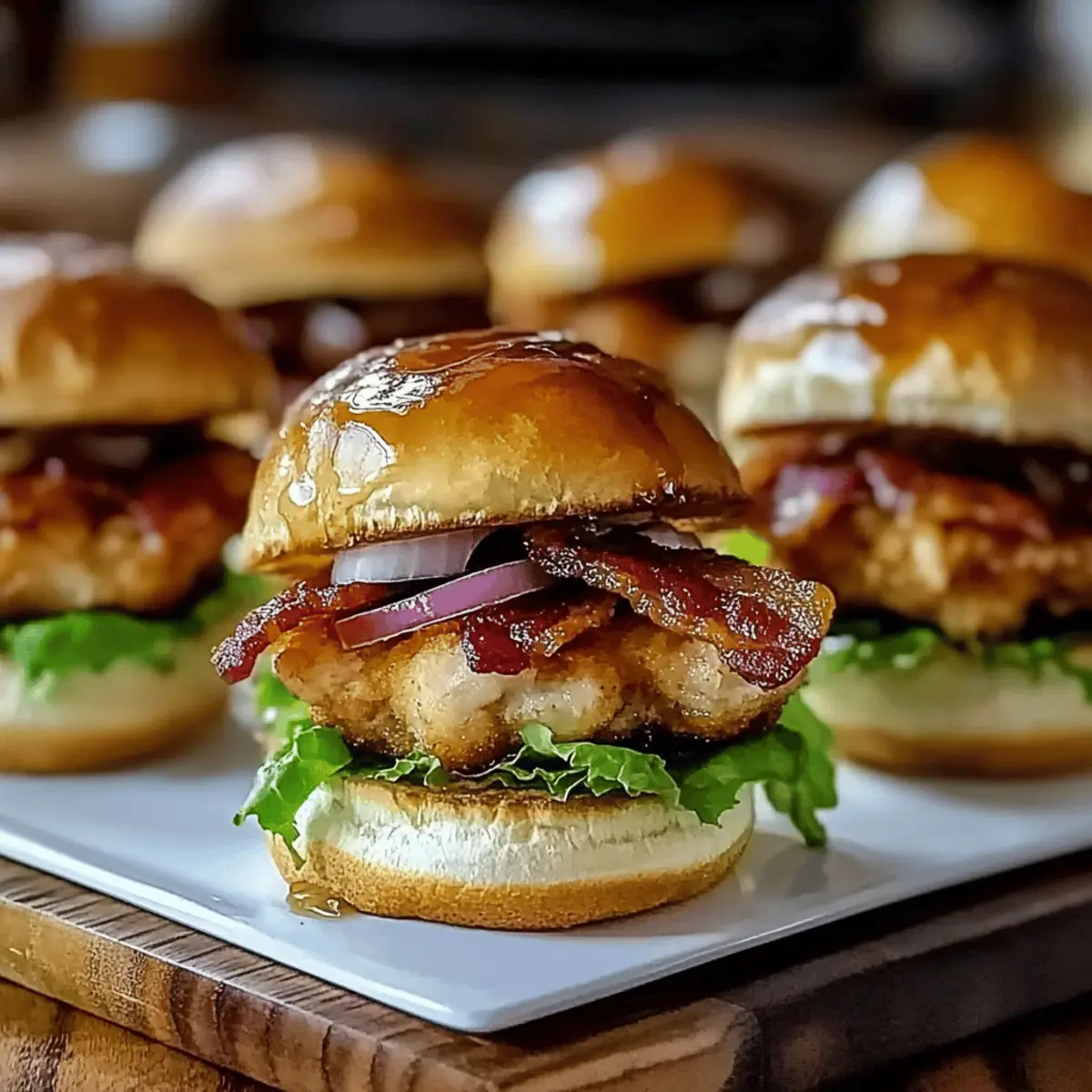 Jump to Recipe Print RecipeAs I flipped through my cookbook, I stumbled upon an eye-catching recipe that immediately transported me to a cozy family gathering where laughter and delicious aromas filled the air. The Maple Chicken & Beef Bacon Sliders caught my attention with their perfect blend of savory and sweet flavors. These little delights are not just quick to prepare but also serve as a fantastic family-friendly meal that appeals to both kids and adults alike. Imagine transforming a hectic weeknight into a delightful dining experience without the hassle of lengthy prep—these sliders accomplish just that! Whether you’re looking for a fun twist on dinner or a halal-friendly option that doesn’t compromise on taste, I can’t wait to share how you can whip these up for your next gathering. Ready to discover the magic behind these mouthwatering sliders? Let’s dive in! Why Are These Sliders So Irresistible? Quick preparation: Busy weeknights don’t stand a chance against these easy-to-make Maple Chicken & Beef Bacon Sliders! Flavor explosion: A delightful medley of savory beef bacon paired with sweet maple syrup will leave your taste buds dancing with joy. Family-approved: Little ones and adults alike will love these sliders, making them the perfect centerpiece for any gathering. Versatility: Feel free to switch up toppings or sauces—for example, adding cheese or swapping in Garlic Parmesan Chicken for different flavor profiles! Freshly made goodness: Experience the joy of homemade sliders instead of fast food—your family will thank you! Get ready to savor every bite! Maple Chicken & Beef Bacon Slider Ingredients For the Patties Ground Chicken – Provides the main protein base; you can substitute with ground turkey for a leaner option. Breadcrumbs – Acts as a binder to keep the patties together; gluten-free breadcrumbs can be a great alternative for gluten-sensitive diets. Garlic Powder – Enhances the overall flavor; feel free to use fresh garlic for a more robust taste. Black Pepper – Adds a mild heat; adjust the amount according to your family’s taste preferences. Salt – Enhances the flavors in the patties; consider using low-sodium salt for a healthier option. For the Toppings Beef Bacon – Brings a crispy, savory element while keeping this recipe halal-friendly; turkey bacon is a lighter substitute if preferred. Mayonnaise – Adds creaminess and flavor; Greek yogurt can be a healthier, lighter alternative. Lettuce Leaves – Provides a crunchy freshness; substitute with spinach for even more nutrients. Red Onion – Offers a sharp bite; consider using green onions or omitting for a milder flavor if desired. For the Buns Slider Buns – Serves as the base for these delightful sliders; consider whole wheat or gluten-free buns for a healthier choice. For the Sweet Glaze Maple Syrup – Adds the essential sweetness and caramelization; you can use agave nectar for a similar flavor profile. Now that you have everything ready, let’s move on to making these delicious Maple Chicken & Beef Bacon Sliders a reality for your next family gathering! Step‑by‑Step Instructions for Maple Chicken & Beef Bacon Sliders Step 1: Mix the Patties In a large bowl, combine the ground chicken, breadcrumbs, garlic powder, salt, and black pepper. Use your hands or a spoon to mix gently until just combined, ensuring not to overwork the meat. Form this mixture into six small patties about ¾ inch thick, which will help them cook evenly, and set aside while you prepare the beef bacon. Step 2: Cook the Beef Bacon Heat a nonstick skillet over medium heat. Once hot, carefully lay the beef bacon strips in the skillet, ensuring they don’t overlap. Cook for 6–8 minutes, flipping occasionally, until the bacon is crispy and golden. Once done, remove from the skillet and place the bacon on paper towels to drain any excess grease, keeping the flavor intact for your sliders. Step 3: Sear the Chicken Patties In the same skillet, add the chicken patties over medium heat, allowing the flavors from the beef bacon to infuse the dish. Cook each patty for 4–5 minutes on one side until golden brown. Flip the patties and brush a generous amount of maple syrup on top, cooking for an additional 4–5 minutes until fully cooked through, reaching an internal temperature of 165°F and caramelized beautifully. Step 4: Assemble the Sliders Time to put together your mouthwatering Maple Chicken & Beef Bacon Sliders! Start by spreading a layer of mayonnaise on the bottom half of each slider bun. Layer each bun with a chicken patty, topped with a slice of crispy beef bacon, fresh lettuce, and slices of red onion. Finally, cap it with the top half of the bun, creating a delightful and inviting stack. Step 5: Serve and Enjoy Once assembled, serve the sliders warm, either on a platter or individually. Pair them with some crunchy pickles and a side of salt and vinegar chips for a classic touch. Your family will love the sweet and savory flavor combination, making these Maple Chicken & Beef Bacon Sliders a hit at your next gathering! Make Ahead Options These Maple Chicken & Beef Bacon Sliders are perfect for busy home cooks looking to save time during the week! You can easily prepare the chicken patties up to 24 hours in advance by mixing the ground chicken, breadcrumbs, garlic powder, salt, and pepper, then shaping them into patties and storing them in an airtight container in the refrigerator. The beef bacon can also be cooked ahead of time and refrigerated for up to 3 days. When you’re ready to serve, simply reheat the patties in a skillet for a few minutes, brush with maple syrup, and assemble your sliders with the toppings. This method ensures your sliders are just as delicious as if you made them fresh, making weeknight dinners a delightful breeze! Expert Tips for Perfect Sliders Patty Perfection: Ensure the chicken patties are mixed gently to avoid toughness. Overmixing can lead to dry sliders, so treat t