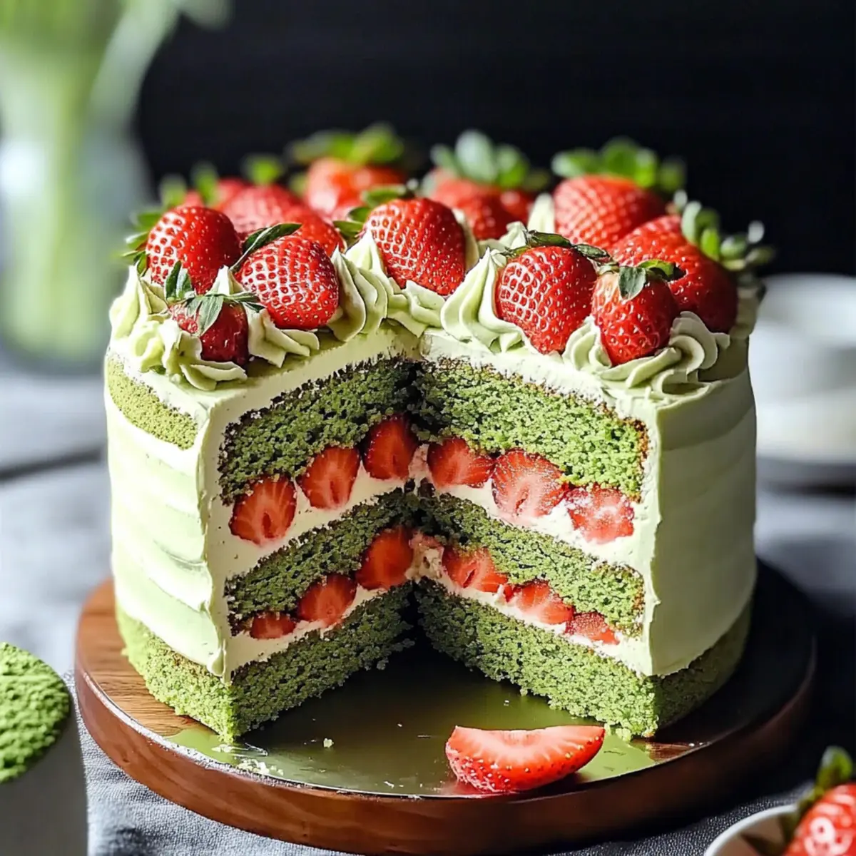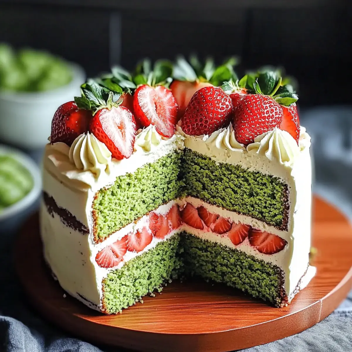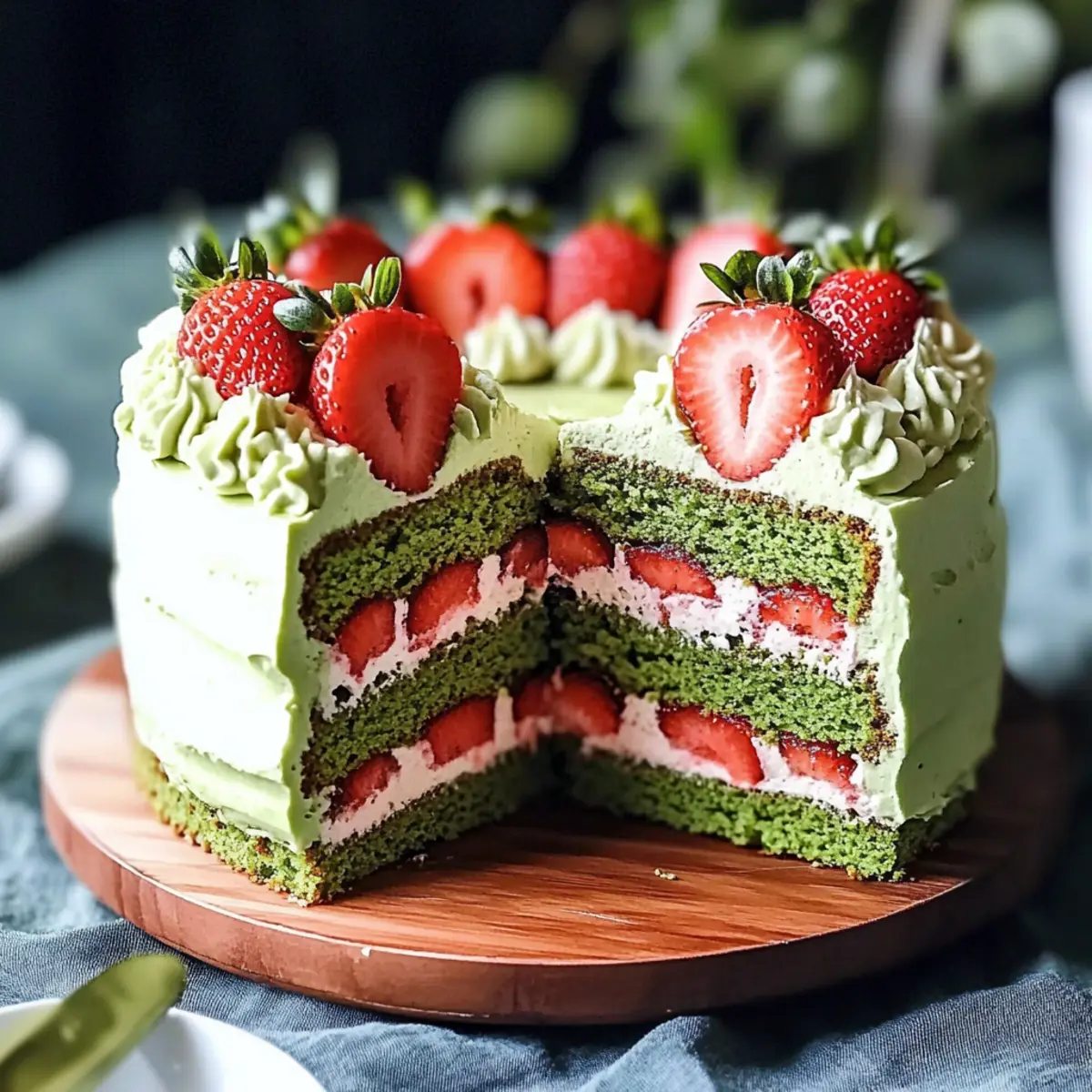 Jump to Recipe Print RecipeSpring is my favorite time of year, and nothing captures the season quite like a vibrant Matcha Strawberry Cake. The contrast of rich matcha green tea with the bright sweetness of strawberries creates a stunning aesthetic that is perfect for any gathering. What’s even better? This delightful cake not only looks like a work of art but is also surprisingly easy to whip up, making it a wonderful option for home chefs of all skill levels. Packed with antioxidants, this healthy dessert brings together the best of flavor and nutrition, allowing you to indulge guilt-free. Whether you’re hosting a brunch or celebrating a special occasion, this elegant cake will surely impress and become a new favorite. Ready to embark on a baking adventure that’s as delicious as it is beautiful? Let’s get started! Why is Matcha Strawberry Cake a Must-Try? Health Benefits: This cake is packed with antioxidants from matcha and strawberries, making it a guilt-free indulgence. Visually Stunning: The vibrant green and red layers create an eye-catching centerpiece perfect for spring gatherings. Simple Preparation: With easy-to-follow steps, this cake is approachable for home chefs of all skill levels. Versatile Delight: Enjoy it at breakfast or dessert; it pairs beautifully with a matcha latte or cup of green tea! Nutritional Balance: Low in calories compared to traditional cakes, this is a flavorful option that satisfies sweet cravings without the guilt. For other delightful strawberry-inspired recipes, consider trying Fried Strawberry Cheesecake or Strawberry Cheesecake Cinnabon. Matcha Strawberry Cake Ingredients • To create this beautiful and healthy dessert, gather early to ensure you enjoy the process! For the Cake Eggs – Provide structure and moisture; opt for large eggs for consistent results. Lemon Juice – Enhances flavor and stabilizes egg whites; vinegar can work as a suitable substitute. Granulated Sugar – Sweetens the cake; try coconut sugar for a lower glycemic option. Milk – Adds moisture; dairy or non-dairy alternatives will work well. Sunflower Oil – Contributes to a light texture; canola or melted coconut oil are great substitutes. Vanilla Extract – Adds depth of flavor; using pure vanilla extract ensures the best taste. Cake Flour – Aids in achieving a fine texture; all-purpose flour is a possible, albeit different, substitute. Matcha Powder – Provides both flavor and color; ensure to use culinary-grade matcha for baking. For the Whipped Cream Whipping Cream – Creates a light frosting; substitute with coconut cream for a dairy-free alternative. Powdered Sugar – Sweetens the whipped cream; feel free to use a sugar alternative if desired. For the Filling Fresh Strawberries – Adds moisture and sweetness; overripe strawberries are perfectly acceptable, and frozen can work if cooked down. Create a beautiful Matcha Strawberry Cake that will amaze your family and friends while nourishing your body! Step‑by‑Step Instructions for Matcha Strawberry Cake Step 1: Prep Pans and Oven Preheat your oven to 375°F (190°C) to ensure a consistent baking temperature. While it’s heating, line four 6-inch cake pans with parchment paper and grease the sides with a little oil. This will help the cakes release easily after baking, giving your Matcha Strawberry Cake perfect layers. Step 2: Make Meringue In a large mixing bowl, beat the egg whites using an electric mixer on medium speed until frothy. Add one teaspoon of lemon juice, and gradually mix in granulated sugar until stiff peaks form, which should take about 4-5 minutes. This airy meringue is crucial for the light texture of your Matcha Strawberry Cake. Step 3: Mix Cake Batter In a separate bowl, whisk together the egg yolks with milk, sunflower oil, and vanilla extract until smooth. Sift the cake flour and matcha powder together, then gently fold this dry mixture into the wet ingredients. Gradually incorporate the meringue in three batches, being careful not to overmix; this will keep your batter light and fluffy. Step 4: Bake Carefully divide the batter evenly between your prepared pans, ensuring a smooth top. Place them in the preheated oven and bake for 15-20 minutes, or until a toothpick inserted into the center comes out clean. Once done, let the cakes cool in the pans for about 15 minutes before transferring them to wire racks to cool completely. Step 5: Prepare Whipped Cream While the cakes are cooling, whip the cream in a mixing bowl until soft peaks form. Gradually add powdered sugar, matcha powder, and a splash of vanilla extract, continuing to beat until medium-stiff peaks are achieved. Be cautious not to overwhip; you want a light and airy frosting for your Matcha Strawberry Cake. Step 6: Assemble Cake Once the cakes are completely cool, begin layering them with a generous dollop of whipped cream and a layer of mashed strawberries between each round. Chill the assembled layers for about 20 minutes to set. After chilling, finish with a decorative layer of whipped cream on top, garnishing with fresh strawberries for a beautiful presentation. What to Serve with Matcha Strawberry Cake This vibrant cake is perfect for creating an exquisite meal that celebrates the joys of springtime dining. Matcha Latte: A warm, frothy complement to your dessert, enhancing the matcha flavor while offering a peaceful, cozy experience. Fresh Fruit Salad: Light and refreshing, a fruit salad with mint and citrus brightens the palate and balances the sweetness of the cake. Vanilla Ice Cream: Creamy and smooth, it provides a delightful contrast to the light, airy texture of the cake’s layers. Green Tea: The subtle earthiness of green tea pairs beautifully with the matcha, creating a harmonious flavor profile. Coconut Macaroons: Sweet and chewy, these treat-filled bites add a contrasting texture while embracing the tropical notes of coconut. Lemon Curd Tart: The tartness cuts through the sweetness of the cake, creat