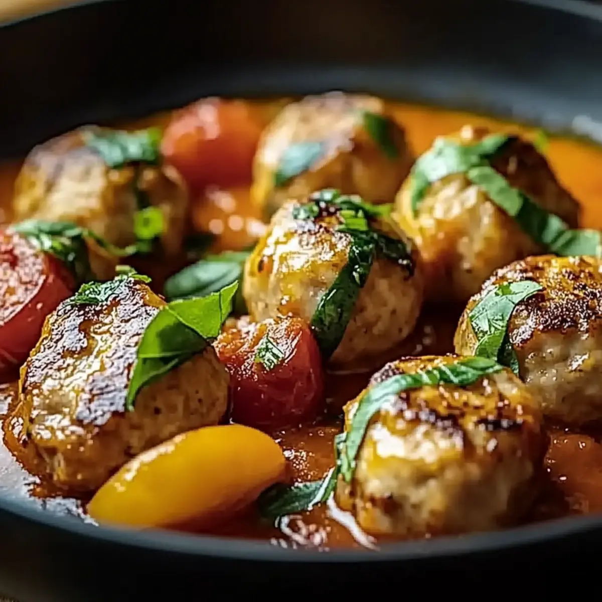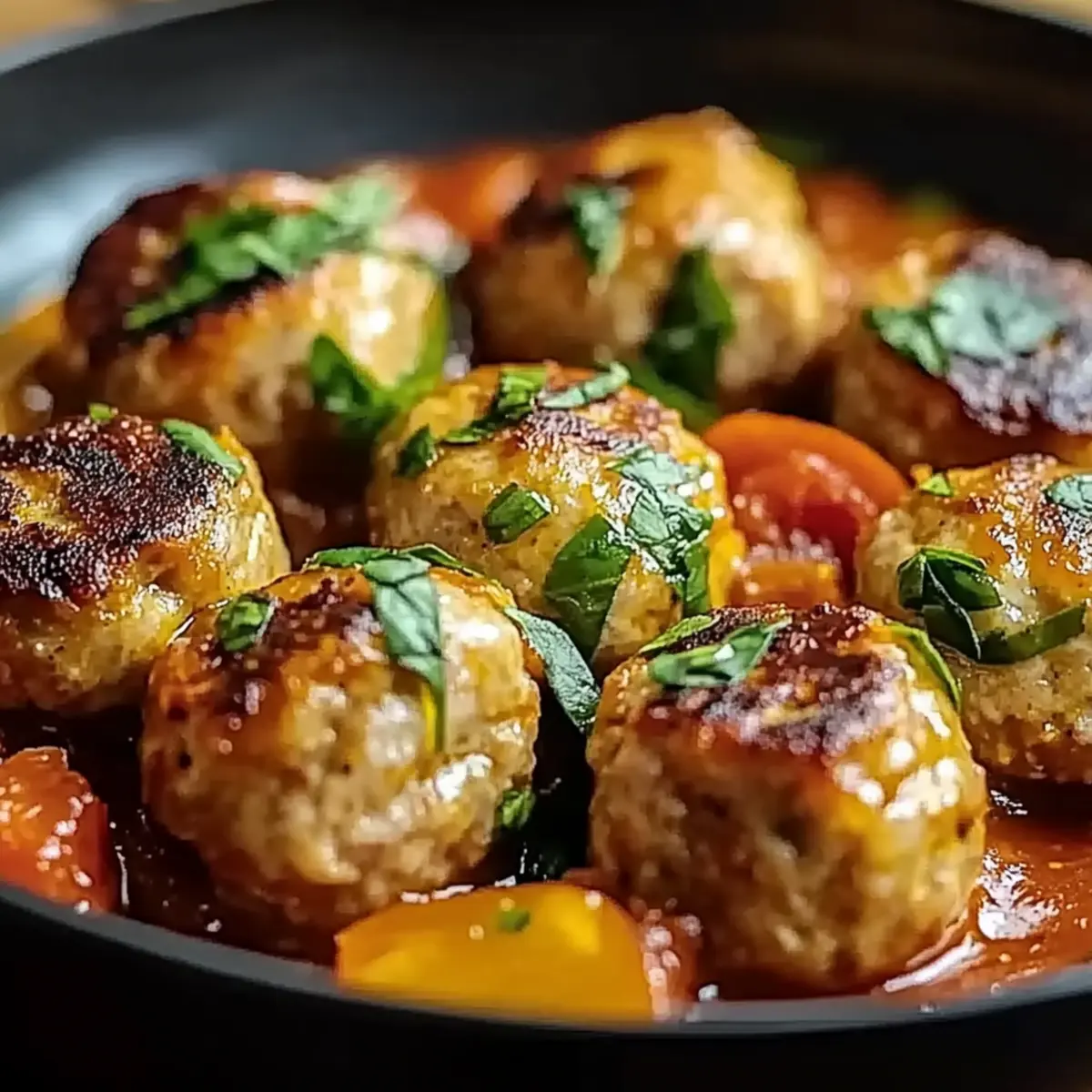 Mediterrane Hackbällchen in Tomatensoße offers juicy meatballs infused with fresh herbs and spices in a robust tomato sauce, perfect for any gathering.