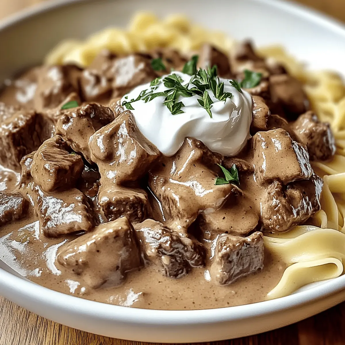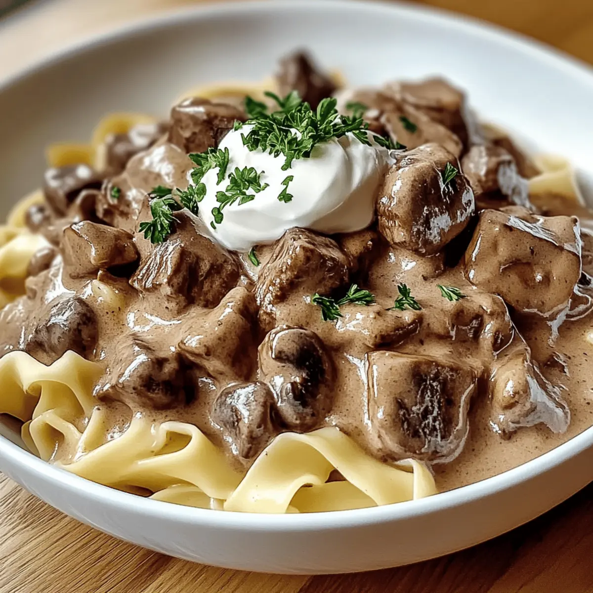 Jump to Recipe Print RecipeAs I stood in my kitchen surrounded by the inviting scent of sautéing mushrooms and onions, memories of my grandmother’s cooking came flooding back. There’s something undeniably comforting about a bowl of Old Fashioned Beef Stroganoff; it feels like a warm hug on a chilly evening. This gluten-free version is quick to prepare, making it perfect for busy weeknights yet elegant enough for special gatherings. Packed with tender beef strips enveloped in a luscious, creamy sauce, it’s a dish that invites sharing around the table. Plus, the versatility of this recipe allows you to customize it to suit your family’s tastes or dietary needs without sacrificing the beloved comfort food experience. Ready to get cooking? Let’s dive into this mouthwatering recipe! Why is Beef Stroganoff so comforting? Nostalgic flavors bring back memories of home-cooked meals shared with loved ones, making each bite a warm reminder of family gatherings. Quick and easy to prepare, this gluten-free beef stroganoff fits seamlessly into your busy weeknights while being special enough for entertaining. Customizable ingredients ensure everyone at the table can enjoy their favorite flavors, whether you’re using ground beef or experimenting with a dairy-free sour cream substitute. Plus, its creamy, luscious texture pairs beautifully with buttered egg noodles or mashed potatoes, creating a hearty meal that satisfies even the pickiest eaters. If you love comfort food, don’t forget to check out my recipe for Turkey Stroganoff Comforting for another delightful twist! Old Fashioned Beef Stroganoff Ingredients For the Beef: Beef Strips – Cut against the grain for maximum tenderness. Flour – Lightly coat the beef; use gluten-free flour for this gluten-free version. For the Sauce: Butter and Olive Oil – The combination prevents burning and adds depth of flavor. Onion – Caramelizes beautifully to create a flavorful base for your stroganoff. Garlic – Fresh minced garlic brings aromatic richness to the dish. Mushrooms – Offers an earthy flavor and texture; cremini or button mushrooms work perfectly. Beef Broth – Adds richness; for a lighter option, vegetable broth can be used. Dijon Mustard – Elevates the sauce’s flavor profile; substitute with yellow mustard if necessary. Sour Cream – Provides a creamy tang; Greek yogurt can be an excellent lighter substitute. For Garnishing: Fresh Parsley or Chives – A colorful garnish that adds a hint of freshness to the dish. With these carefully selected ingredients, you’ll be well on your way to creating a delightful bowl of Old Fashioned Beef Stroganoff that warms both heart and soul! Step‑by‑Step Instructions for Old Fashioned Beef Stroganoff Step 1: Prepare the Beef Begin by cutting the beef into thin strips against the grain, ensuring maximum tenderness. Season the strips with salt and pepper, then lightly dredge with gluten-free flour, coating each piece evenly. This will help thicken the sauce later on, so set the beef aside while you move on to the next steps. Step 2: Sauté the Vegetables In a large skillet, melt 2 tablespoons of butter and 1 tablespoon of olive oil over medium heat. Add sliced mushrooms and diced onions, cooking for about 5–7 minutes until the onions are soft and golden brown. Stir frequently to prevent burning and allow those wonderful flavors to meld together, creating a delicious base for your Old Fashioned Beef Stroganoff. Step 3: Sear the Beef Once the vegetables are ready, push them to the side of the pan and add the seasoned beef strips. Increase the heat slightly and sear the beef for about 2–3 minutes, or until it’s nicely browned. This step is crucial to seal in the juices, ensuring your beef is tender and flavorful. Step 4: Add Garlic and Liquid Stir in minced garlic and cook for another minute until fragrant. Then, pour in 1 cup of beef broth along with 1 tablespoon of Dijon mustard. Stir well to combine, scraping any browned bits from the bottom of the skillet. Allow the mixture to simmer for about 5 minutes, letting the flavors meld and slightly reduce. Step 5: Incorporate the Cream Remove the skillet from heat, then gently stir in 1 cup of sour cream until the sauce is smooth and creamy. Be cautious not to let it boil at this stage, as you want that luscious texture without curdling. Taste and adjust seasoning with salt and pepper if necessary, enhancing the richness of your Old Fashioned Beef Stroganoff. Step 6: Serve Your Dish Finally, serve your hearty beef stroganoff over buttered egg noodles, mashed potatoes, or steamed rice for a comforting meal. Garnish with freshly chopped parsley or chives, adding a pop of color and freshness to this delightful dish. Enjoy the warm, inviting flavors that make this recipe a beloved family favorite! What to Serve with Classic Gluten-Free Old Fashioned Beef Stroganoff? Indulge in a comforting meal that brings the whole family together, perfect for those cozy evenings. Buttered Egg Noodles: The soft, buttery texture beautifully complements the creamy sauce, creating a classic pairing that feels like a warm embrace. Creamy Mashed Potatoes: Rich and velvety, mashed potatoes provide a perfect canvas for the stroganoff, soaking up every delicious drop of sauce. Steamed Green Beans: Crisp and fresh, these beans add a vibrant color and a contrast to the creamy dish, enhancing both flavor and nutrients. Crusty Artisan Bread: A warm loaf is wonderful for sopping up the sauce, adding a rustic charm to your meal while satisfying any carb cravings. Roasted Brussels Sprouts: Their nutty flavor and slight crunch bring a delightful texture that balances the richness of the stroganoff, making each bite exciting. Red Wine: A glass of full-bodied red wine pairs perfectly with the beefy flavors, adding warmth and depth to the dining experience. Apple Crisp: End on a sweet note with a warm apple crisp; its delightful cinnamon notes and buttery topping create a c