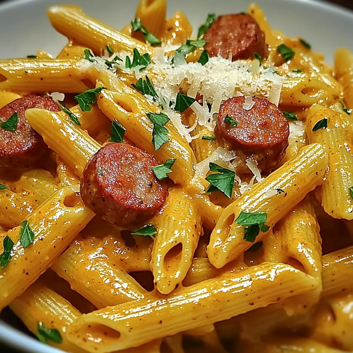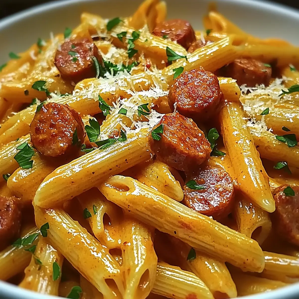 Jump to Recipe Print Recipe“Picture a bustling kitchen filled with laughter and the enticing aroma of spices dancing through the air. That’s exactly the vibe this One-Pot Creamy Spicy Cajun Sausage Pasta brings to your table. Not only does this dish serve up a luscious, creamy sauce infused with bold Cajun flavors, but it also comes together in just one pan—perfect for those hectic weeknights or cozy gatherings with friends. With its quick prep time and customizable ingredients, this pasta lets you explore your culinary creativity, whether you’re reaching for sausage, chicken, shrimp, or even going plant-based. Are you ready to elevate your dinner game with a meal that’s both scrumptious and simple?” Why is This Pasta Dish a Must-Try? Quick and Easy: This one-pot meal minimizes cleanup, making it perfect for busy weeknights. Flavor Explosion: The bold Cajun spices combined with creamy richness create an unforgettable taste sensation. Customizable Creations: Whether you choose sausage, chicken, or shrimp, this dish is flexible enough to suit every palate. Crowd-Pleasing Comfort: Ideal for gatherings, its hearty yet comforting nature wins over friends and family alike. Nutritional Boost: Easily add veggies like spinach or zucchini for a satisfying, nutrient-packed meal. Let’s not forget to pair it with garlic bread for a complete experience! One-Pot Creamy Spicy Cajun Sausage Pasta Ingredients For the Pasta Base • Penne Pasta – This is the base of the dish; feel free to swap it out for any short pasta like rigatoni or farfalle for a fun twist. • Chicken Broth – Enhances the overall flavor; you can use vegetable broth for a vegetarian-friendly alternative. For the Protein • Smoked Sausage – Adds a hearty, smoky flavor, and can be substituted with chicken, turkey, or plant-based sausage. • Cajun Seasoning – This provides that signature spicy kick; adjust the quantity based on your heat preference! For the Creamy Sauce • Heavy Cream – Offers the rich creaminess that makes this dish comforting; consider half-and-half or coconut milk for a lighter version. • Parmesan Cheese – Adds salty, umami notes; nutritional yeast can be used for a dairy-free option. For the Aromatics • Onion – Brings natural sweetness; shallots can offer a more delicate flavor if preferred. • Garlic – Infuses the dish with aroma; fresh garlic is best, but you can use garlic powder as a quick substitute in a pinch. • Bell Pepper – Adds sweetness and texture; any color will work or substitute with zucchini for extra nutrition. Dive into making this One-Pot Creamy Spicy Cajun Sausage Pasta and watch how it effortlessly becomes a family favorite! Step‑by‑Step Instructions for One-Pot Creamy Spicy Cajun Sausage Pasta Step 1: Sauté Aromatics Begin by heating 2 tablespoons of olive oil in a large pot over medium heat. Once the oil shimmers, add finely chopped onion, minced garlic, and diced bell pepper. Sauté for about 5 minutes, stirring frequently, until the onion becomes translucent and fragrant, creating a beautiful base for your One-Pot Creamy Spicy Cajun Sausage Pasta. Step 2: Add Sausage Stir in 1 pound of sliced smoked sausage and cook for 5–7 minutes, allowing the sausage to brown slightly and develop a crispy exterior. This step enhances the smoky flavor profile, so keep an eye on it, stirring occasionally to ensure even cooking and prevent sticking. Step 3: Combine Ingredients Next, add 2 tablespoons of Cajun seasoning, 12 ounces of uncooked penne pasta, 4 cups of chicken broth, and 1 cup of heavy cream to the pot. Mix everything together gently, ensuring the pasta is well-coated and submerged in the liquid. This all-in-one combination makes preparation for the One-Pot Creamy Spicy Cajun Sausage Pasta effortless and flavorful. Step 4: Simmer Increase the heat to bring the mixture to a gentle boil, then reduce it to a simmer. Cover the pot and let it cook for about 20 minutes, stirring occasionally. Keep an eye on the pasta as it cooks; you’re aiming for tender pasta with a creamy sauce that thickens beautifully as it cooks. Step 5: Finish with Cheese Once the pasta is cooked to perfection, remove the pot from heat. Stir in 1 cup of grated Parmesan cheese until it melts smoothly into the sauce. Taste for seasoning and adjust with salt and pepper as needed. This step enriches your One-Pot Creamy Spicy Cajun Sausage Pasta with a delightful creamy finish. Step 6: Serve Spoon the pasta into bowls, garnishing with fresh parsley if desired for a pop of color. Serve immediately to enjoy the rich and zesty flavors of your One-Pot Creamy Spicy Cajun Sausage Pasta. Don’t forget to pair it with garlic bread for a complete meal experience! Make Ahead Options These One-Pot Creamy Spicy Cajun Sausage Pasta are perfect for busy weeknights when you need dinner on the table quickly! You can prepare the sausage and sauté the aromatics (onion, garlic, and bell pepper) up to 24 hours in advance, storing them in an airtight container in the refrigerator. If you prefer, you can also measure out the seasonings and keep them ready to go. When you’re ready to enjoy your meal, simply combine the prepped ingredients with uncooked penne pasta, chicken broth, and heavy cream in the pot, then follow the remaining cooking steps. This way, you save time while still serving a dish that’s just as delicious and flavorful! Expert Tips for One-Pot Creamy Spicy Cajun Sausage Pasta • Pasta Perfection: Avoid overcooking the pasta to keep it al dente. Remember, it will continue to cook slightly after removing from heat. • Seasoning Control: Start with a smaller amount of Cajun seasoning for those less tolerant to heat. You can always add more for an extra kick! • Stir Sometimes: Stir occasionally during simmering to prevent pasta from sticking together and ensure an even cooking process. • Veggie Boost: Enhance the nutritional value and color by adding vibrant veggies like spinach or zu